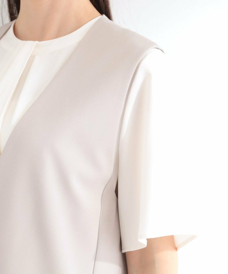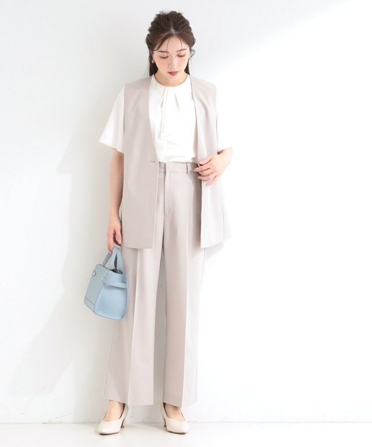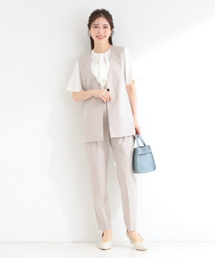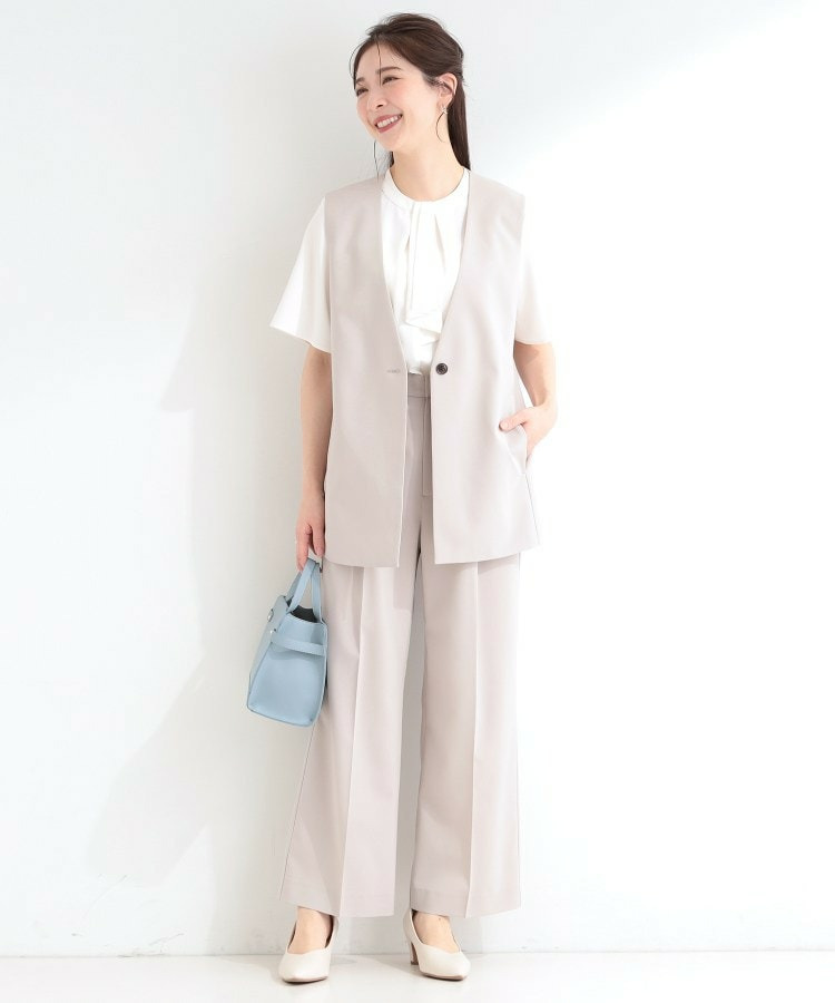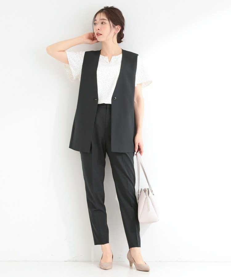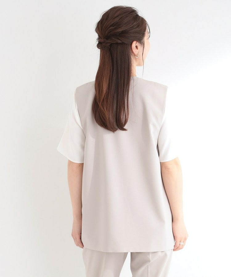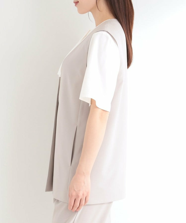 【セットアップ可/洗濯後しわになりにくい/S-LL】シンプルで合わせやすい ノーカラージレ