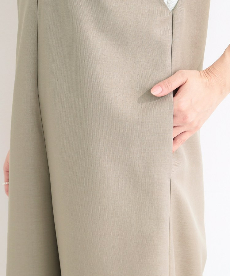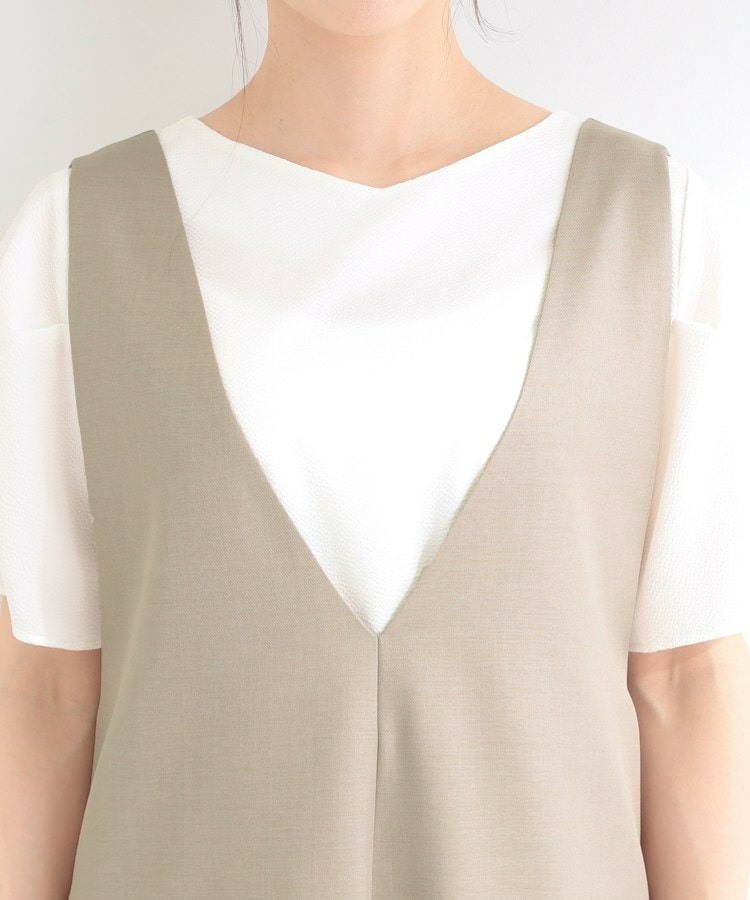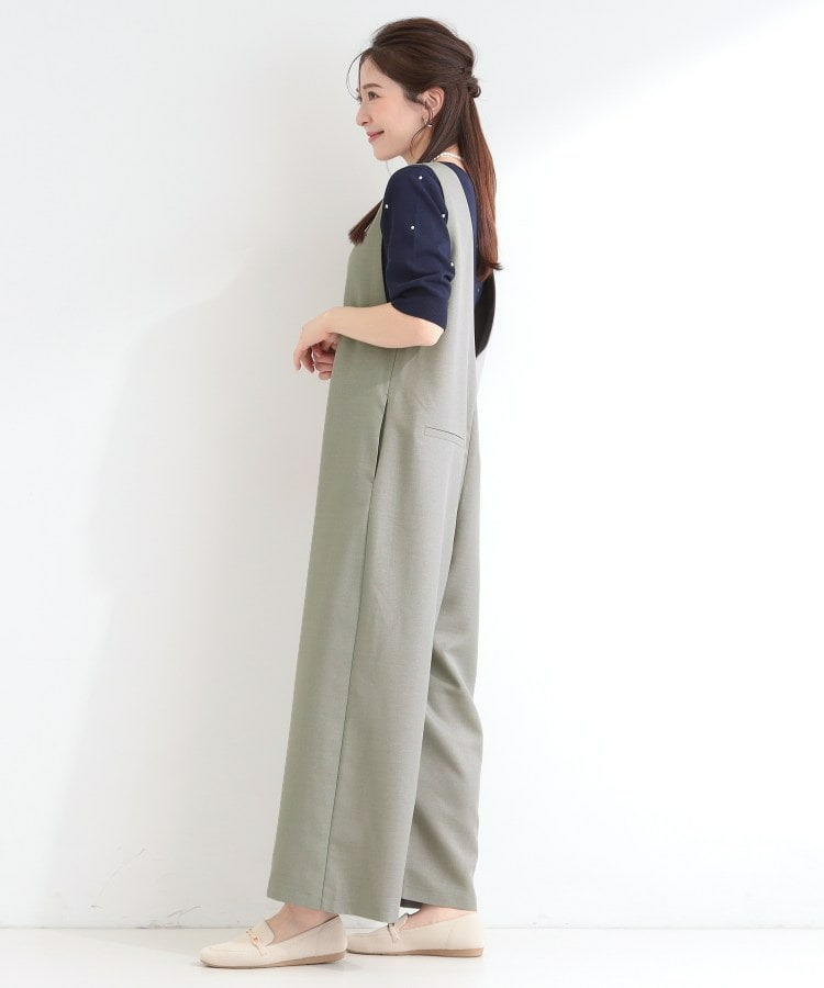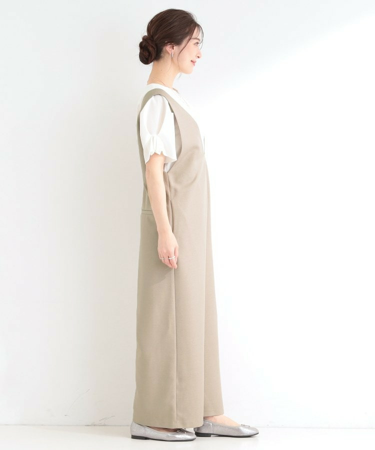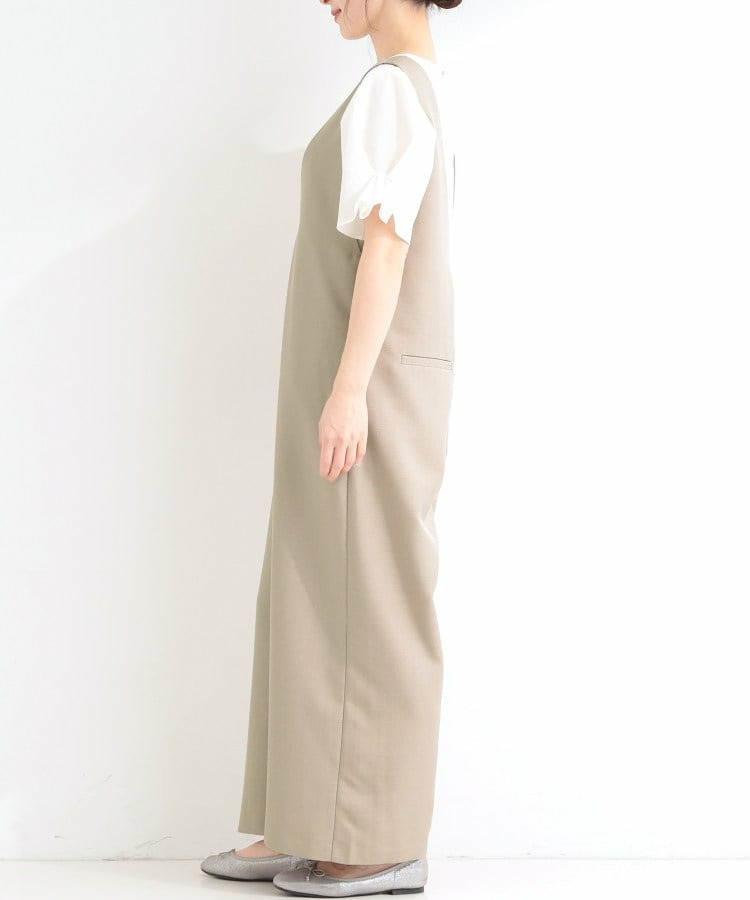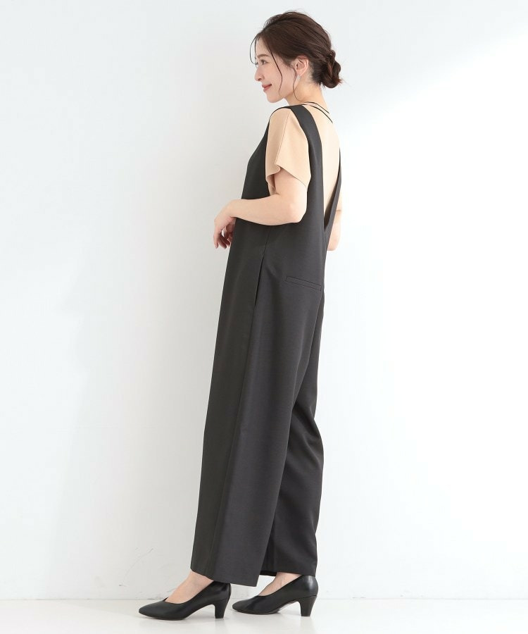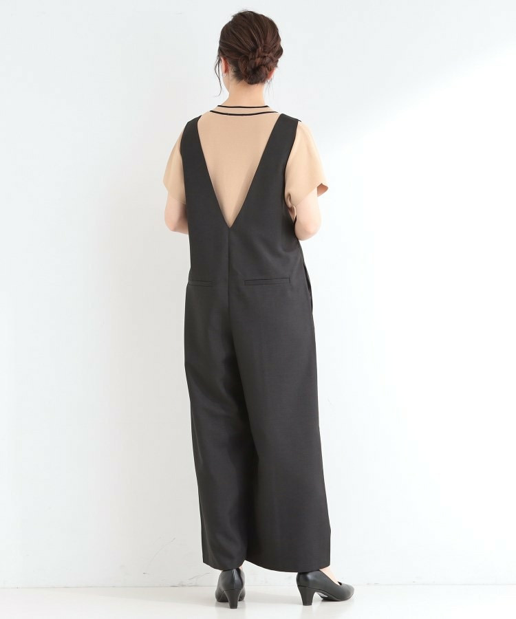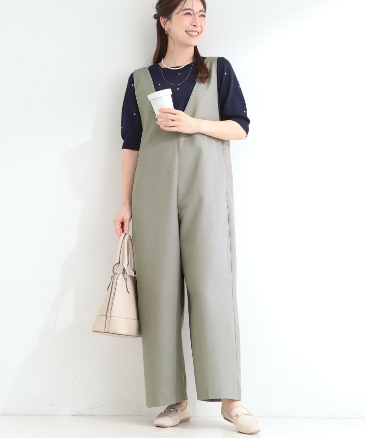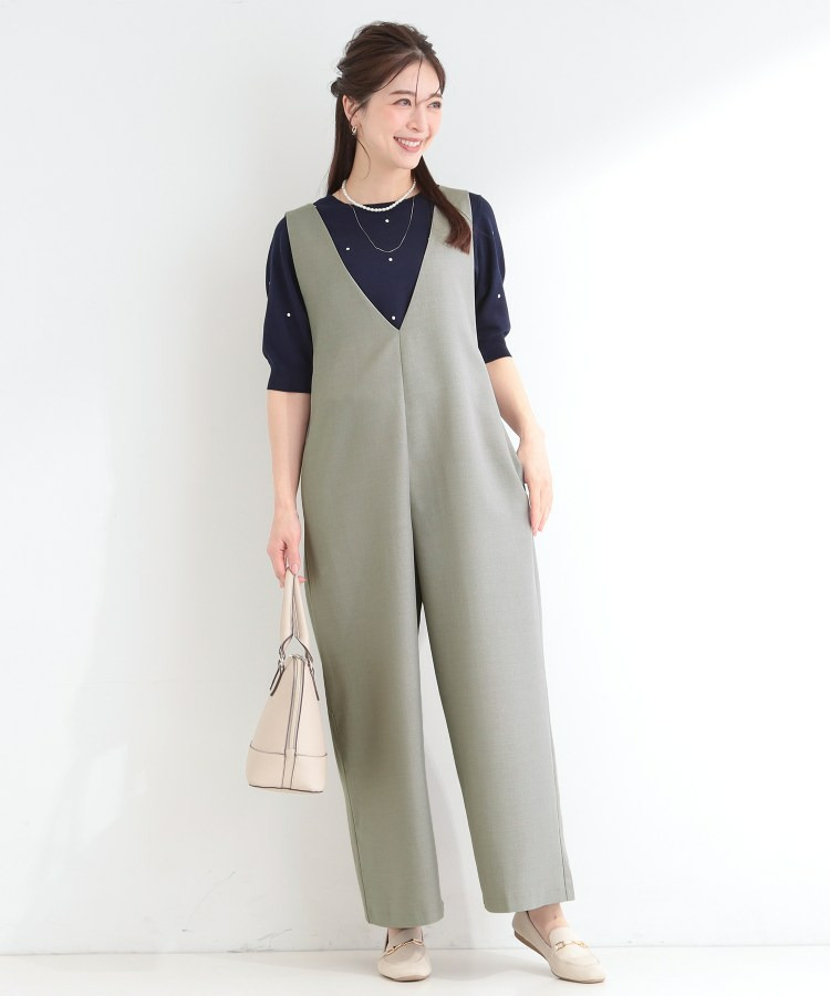 深めのVネックがすっきりした印象のシンプルなオールインワン。