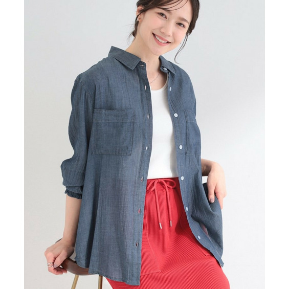 シアー感のある柔らかなデニムの素材で軽やかさが新鮮なデニムシャツ。