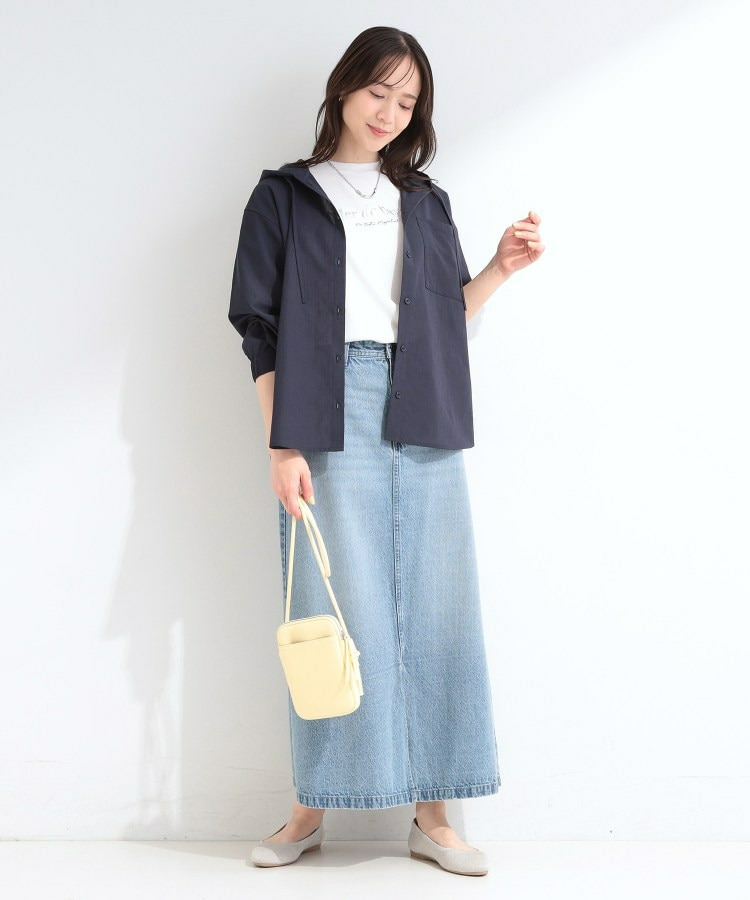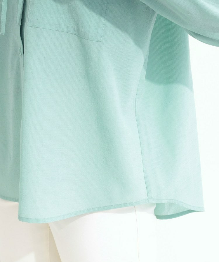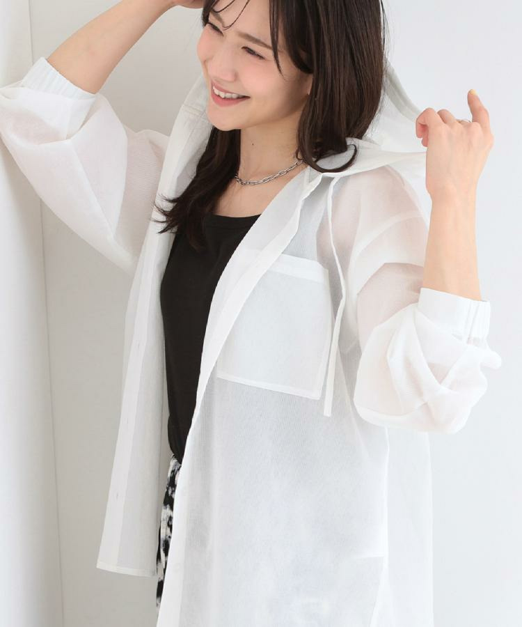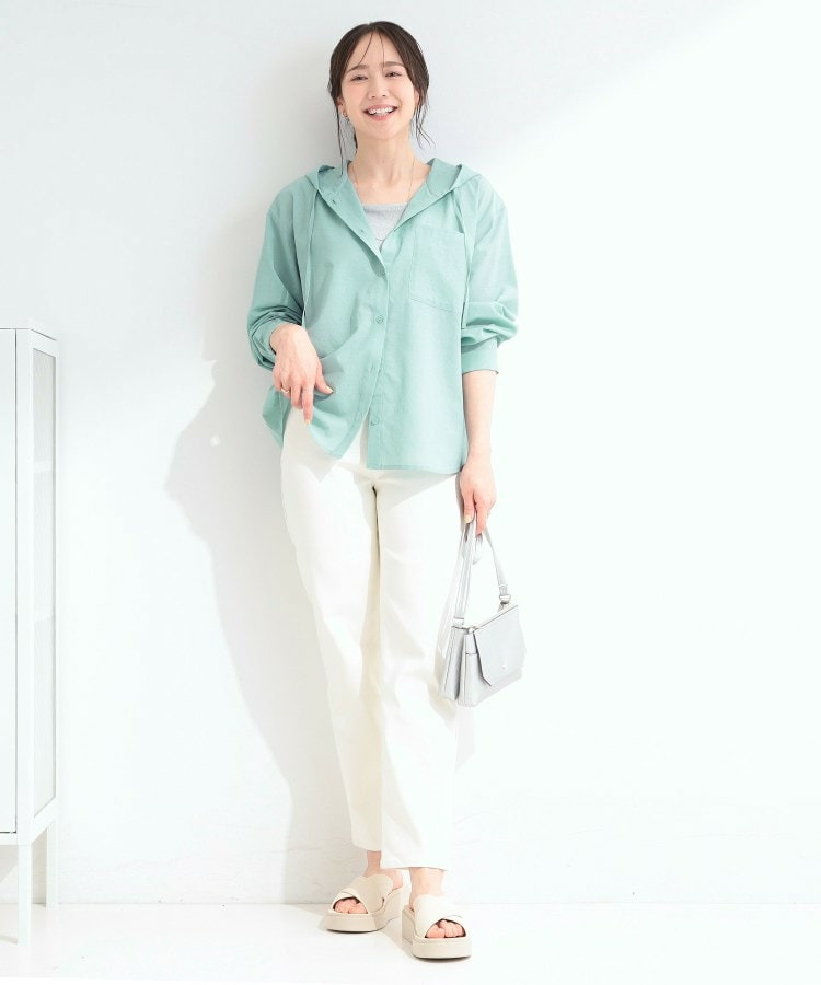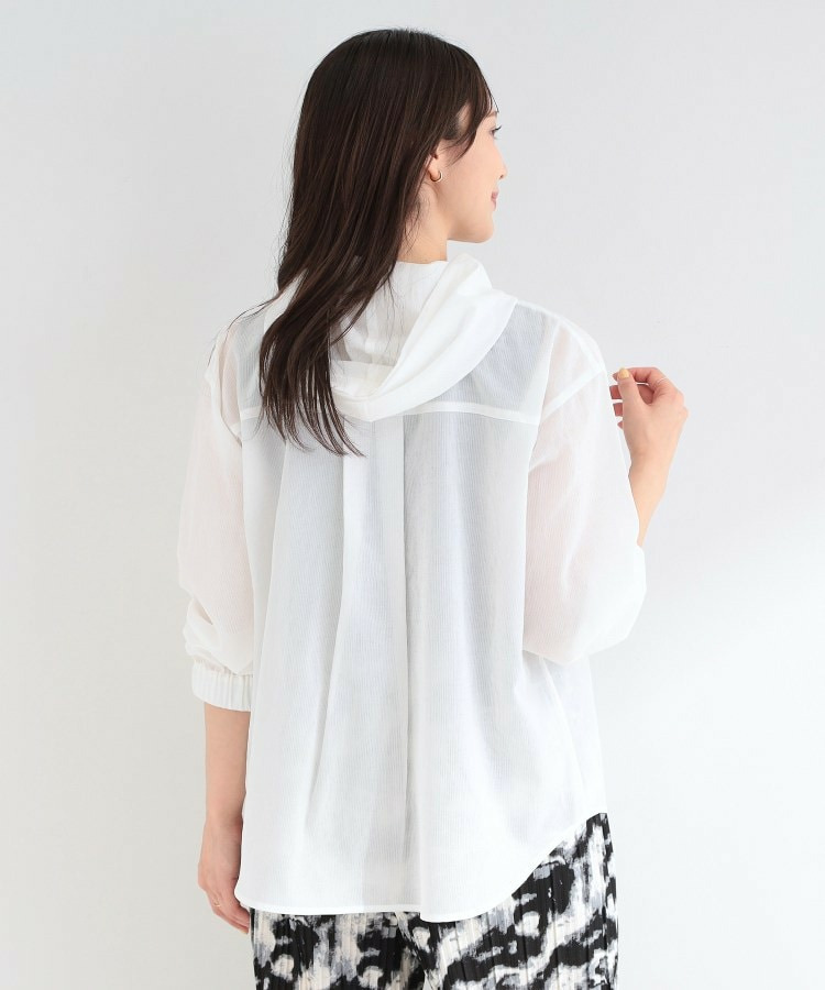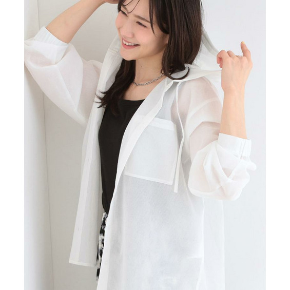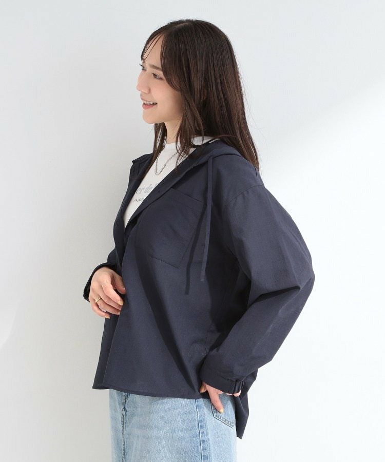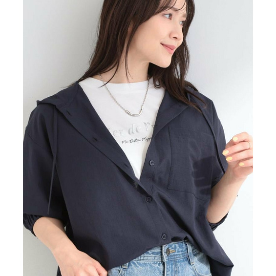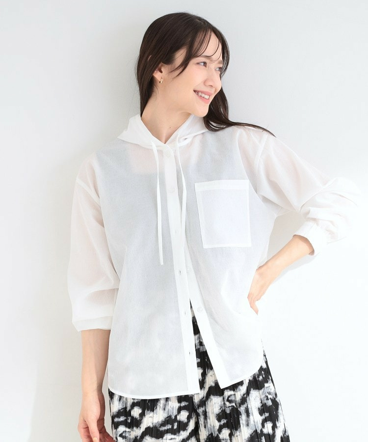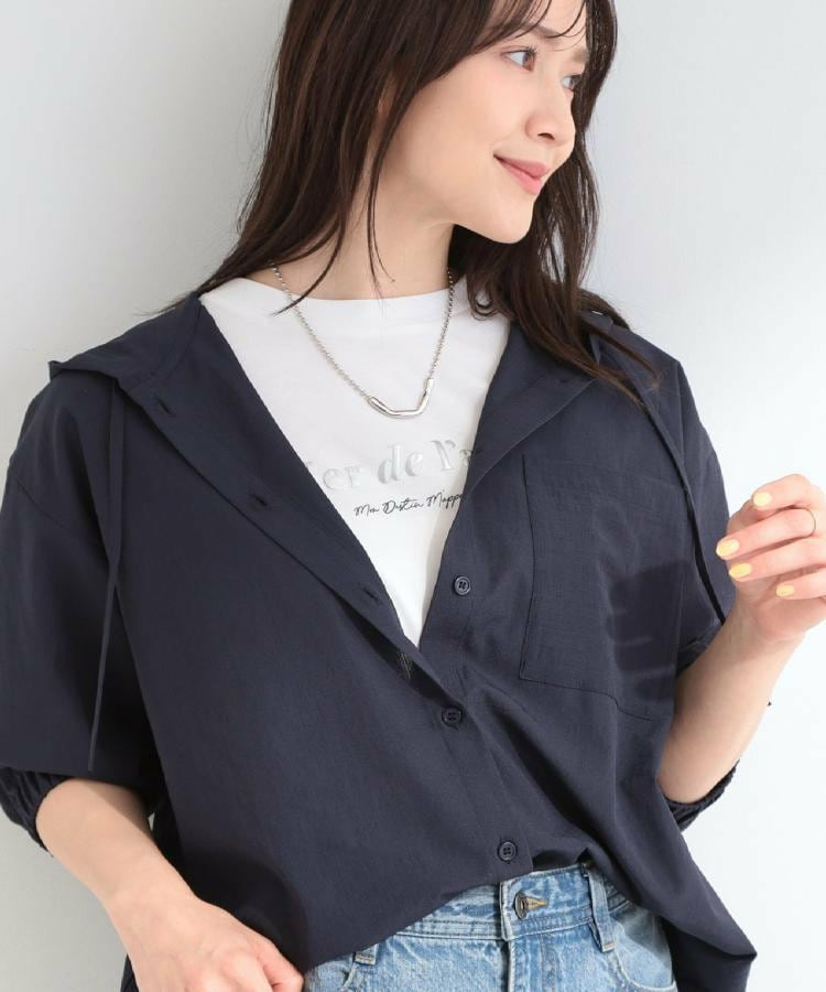 通気性に富んだ素材で、軽やかな印象のフード付きシャツ。