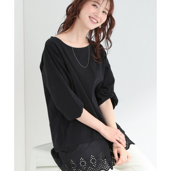 【洗濯機可/ひんやり/S-LL】裾レース切り替え ねじりお袖チュニック