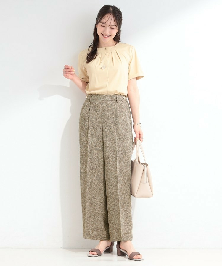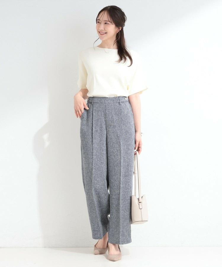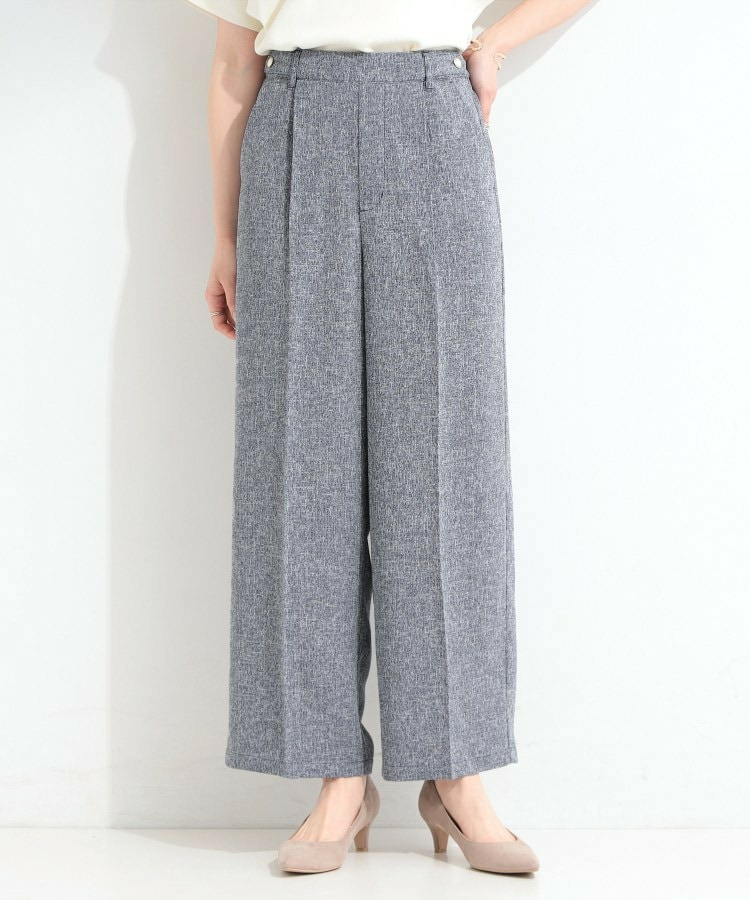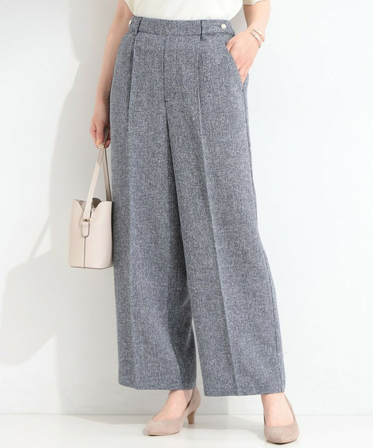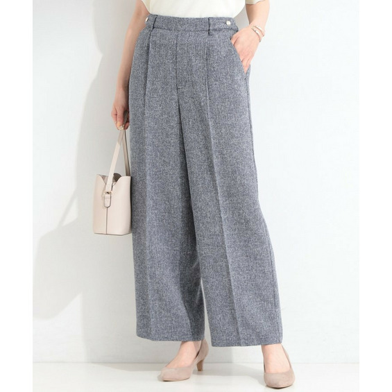 表情のあるツイード調素材がポイントのワイドパンツ。