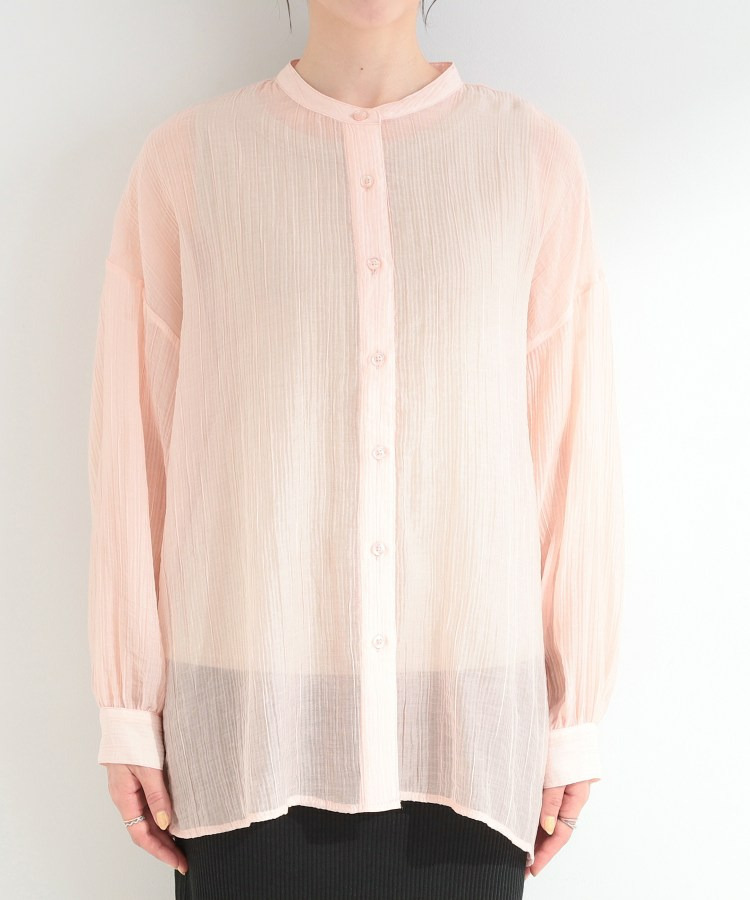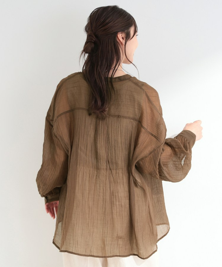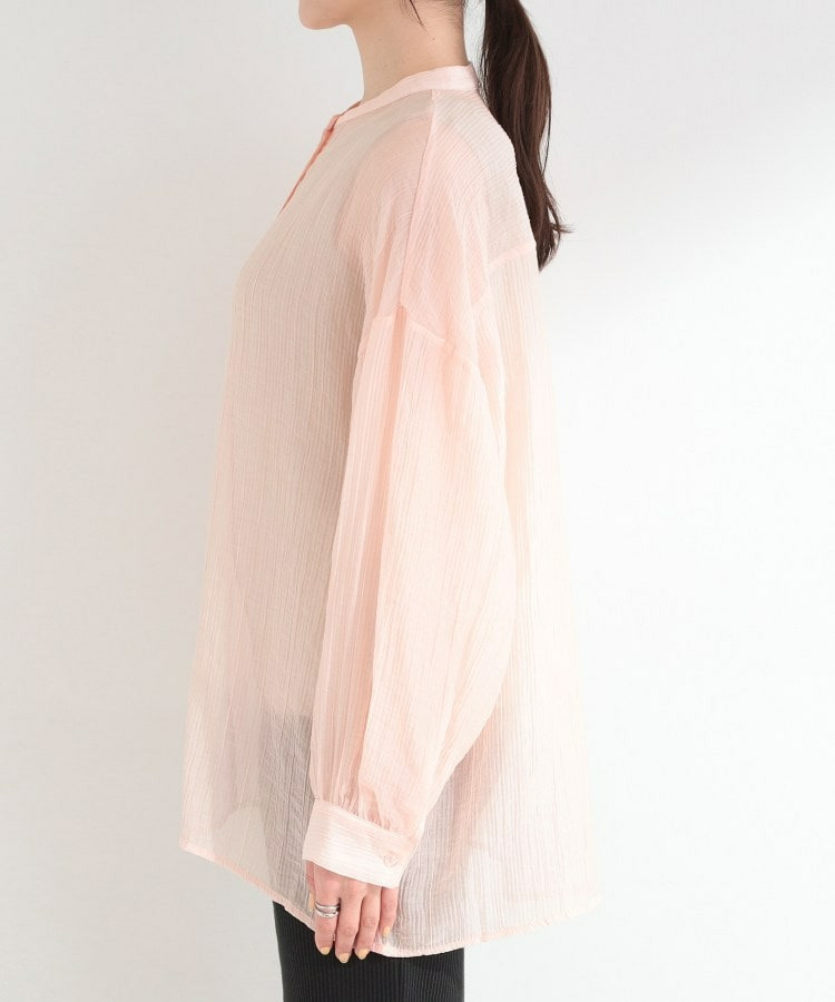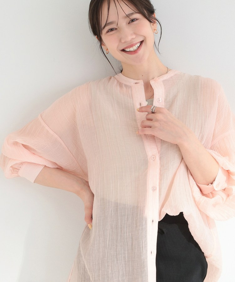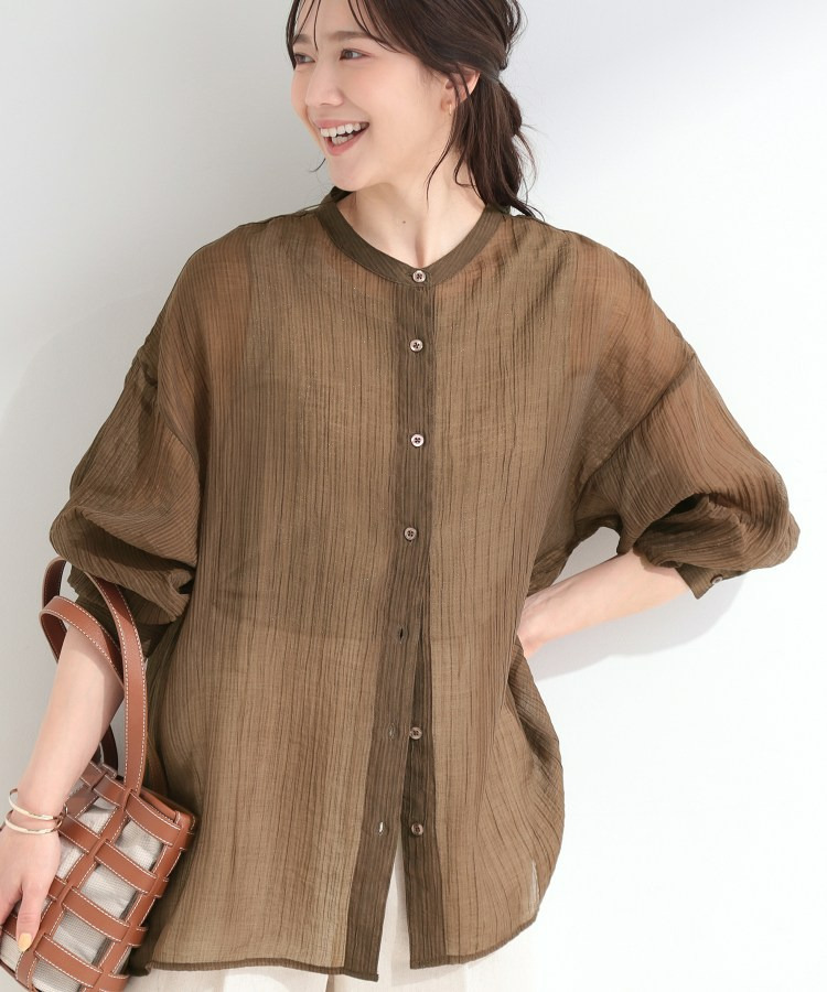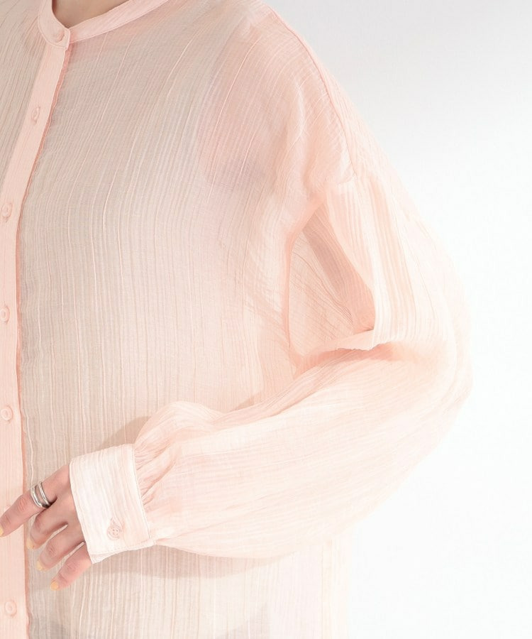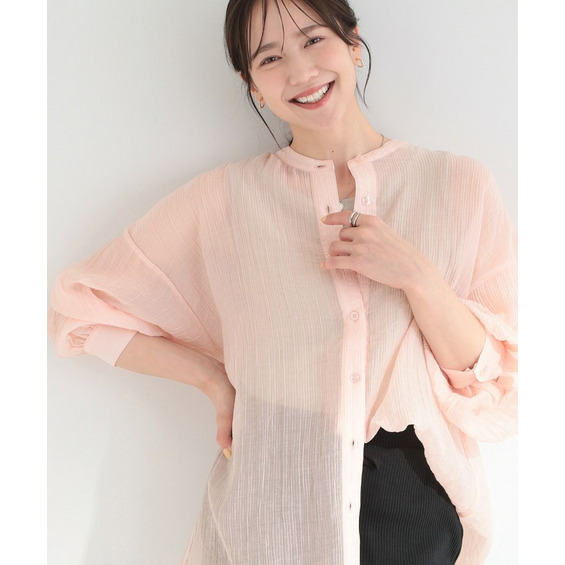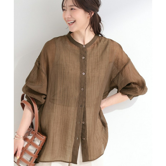 程よい透け感のある、表情豊かなシボ素材が魅力のシャツブラウス。