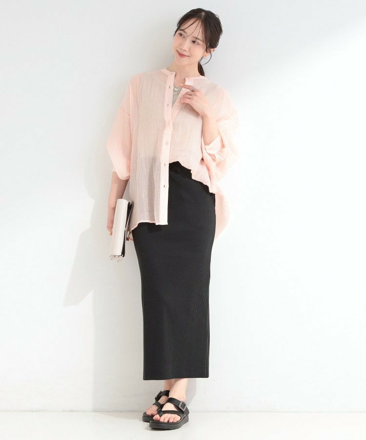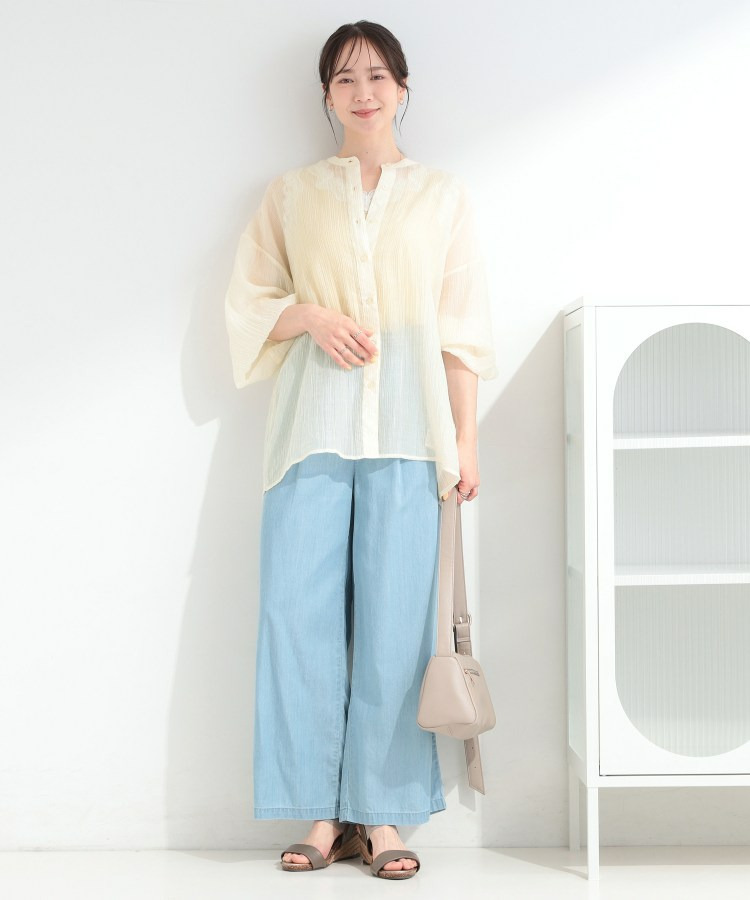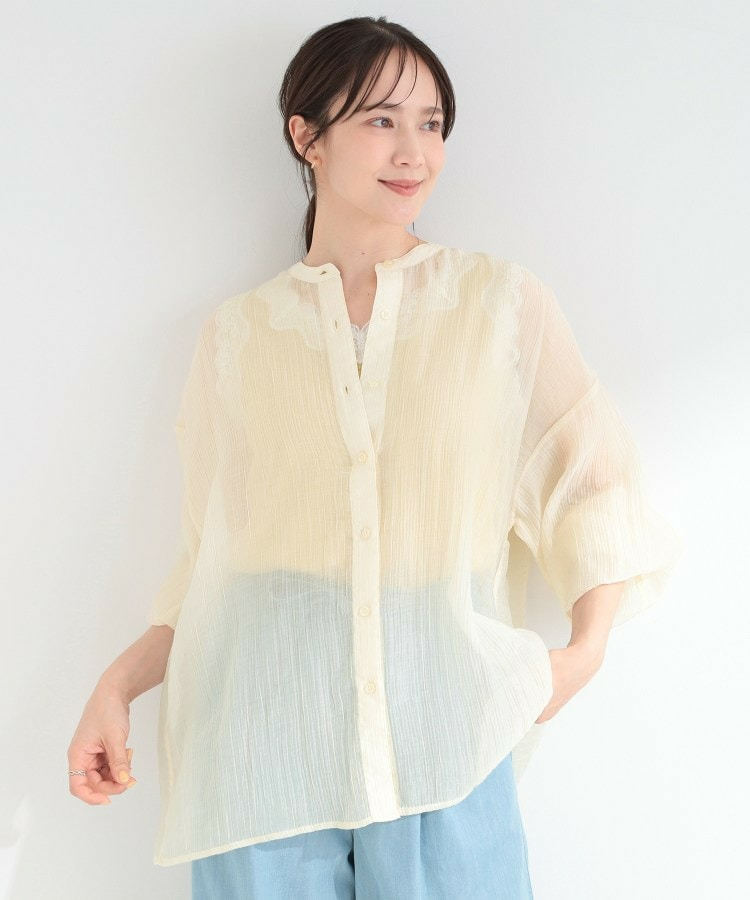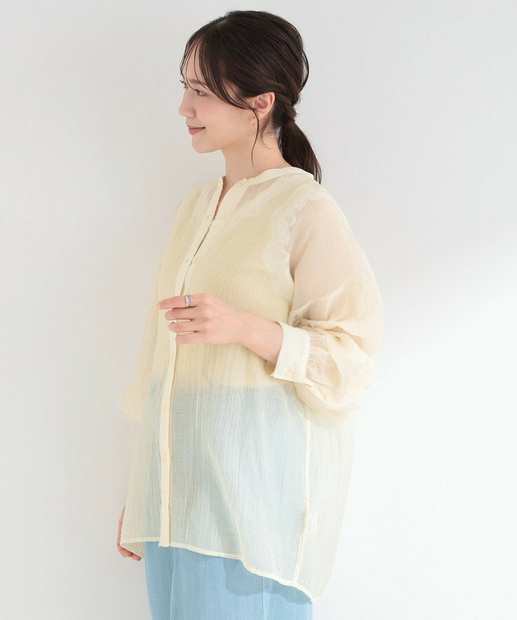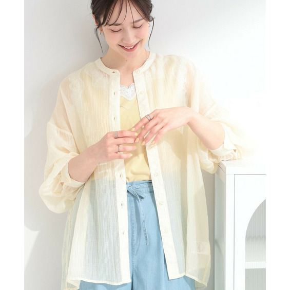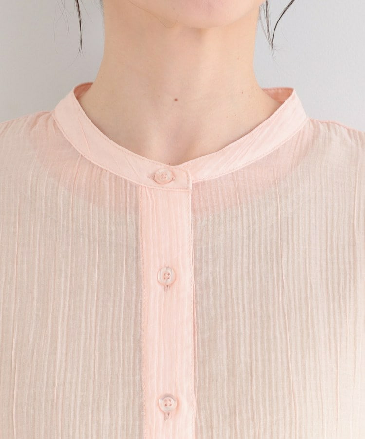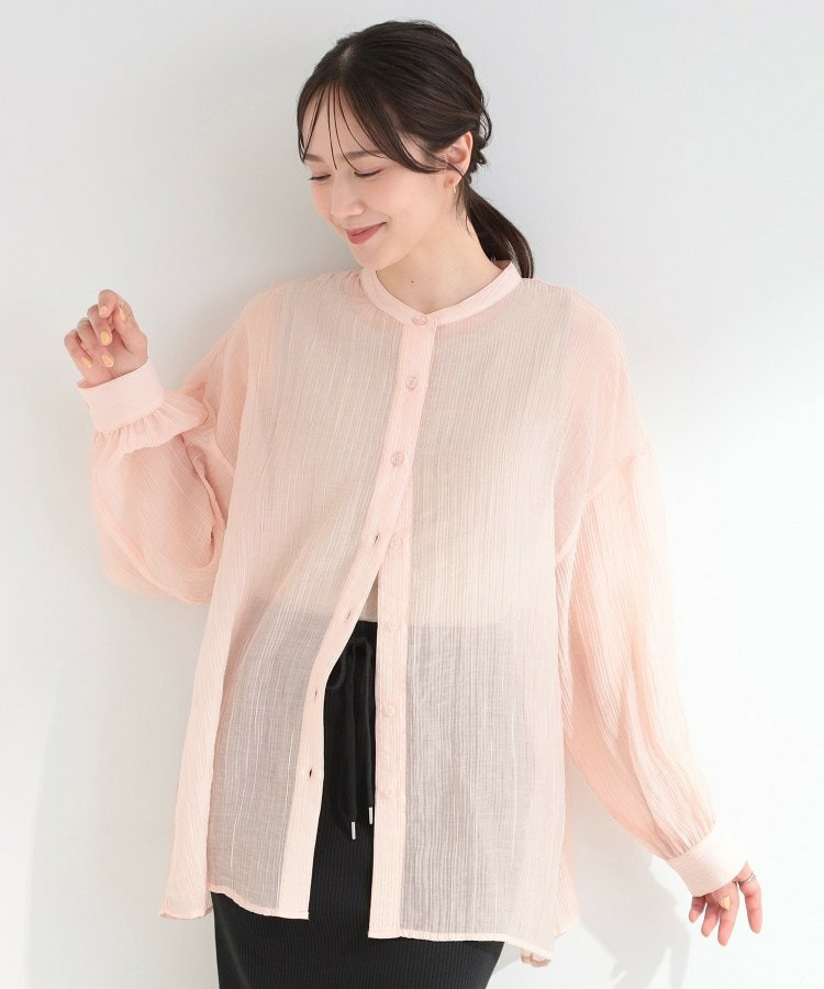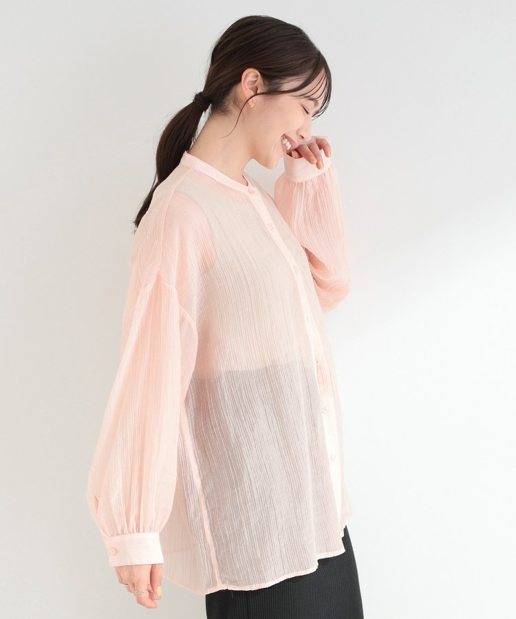 程よい透け感のある、表情豊かなシボ素材が魅力のシャツブラウス。