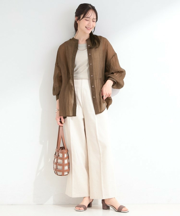バンドカラーですっきりとした首元に仕上げ、軽やかで抜け感のある印象に。
