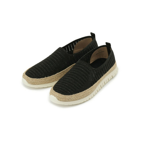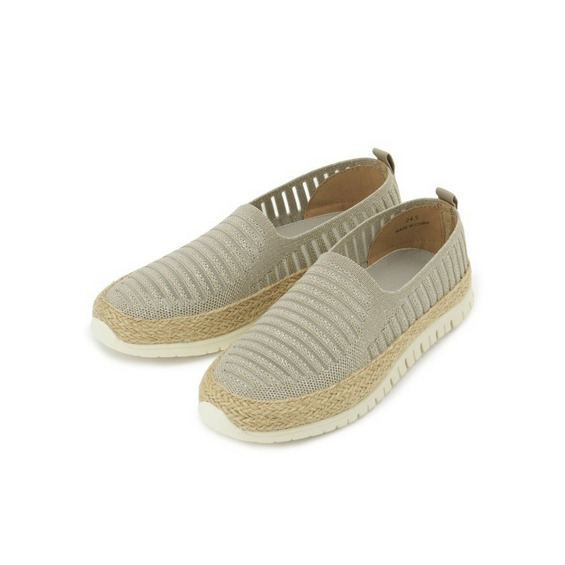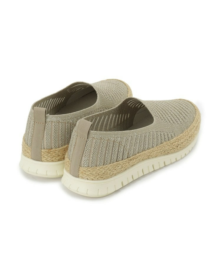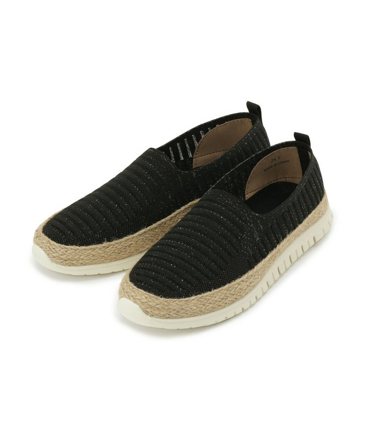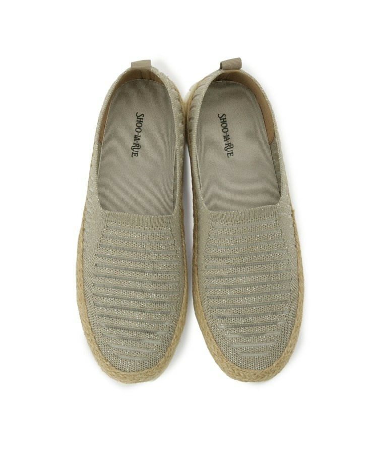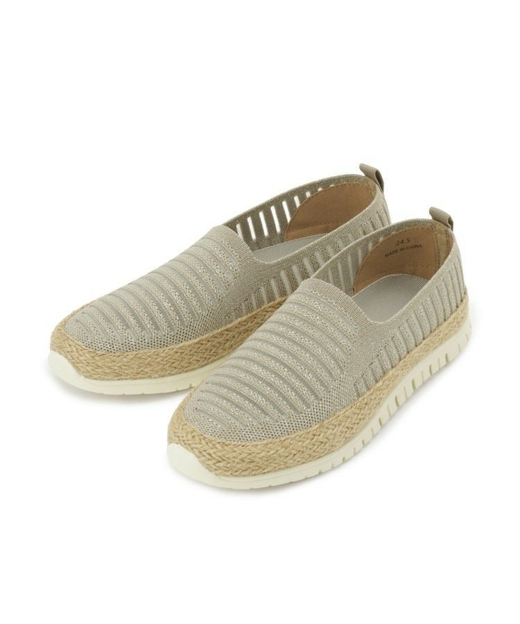 シースルーのボーダーニットとジュート巻きが涼しげで軽やかな印象のスリッポン。