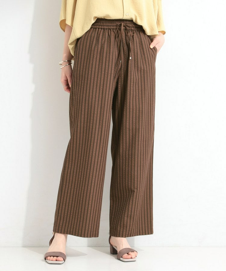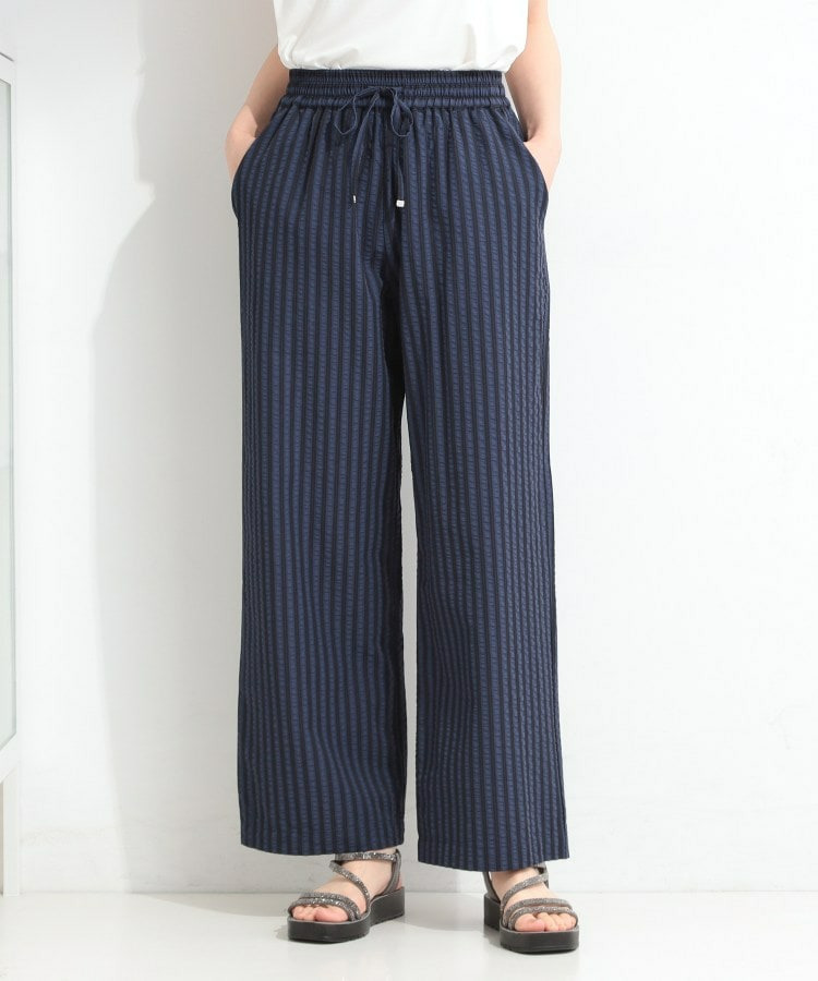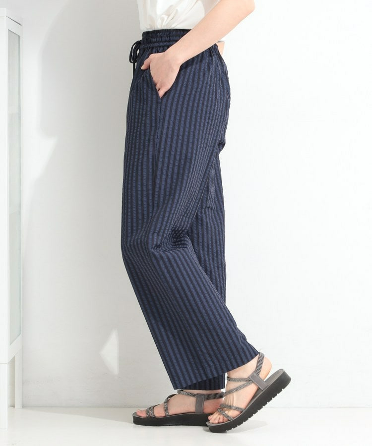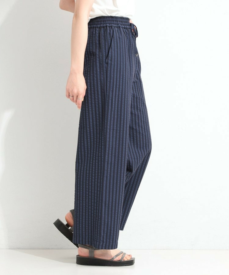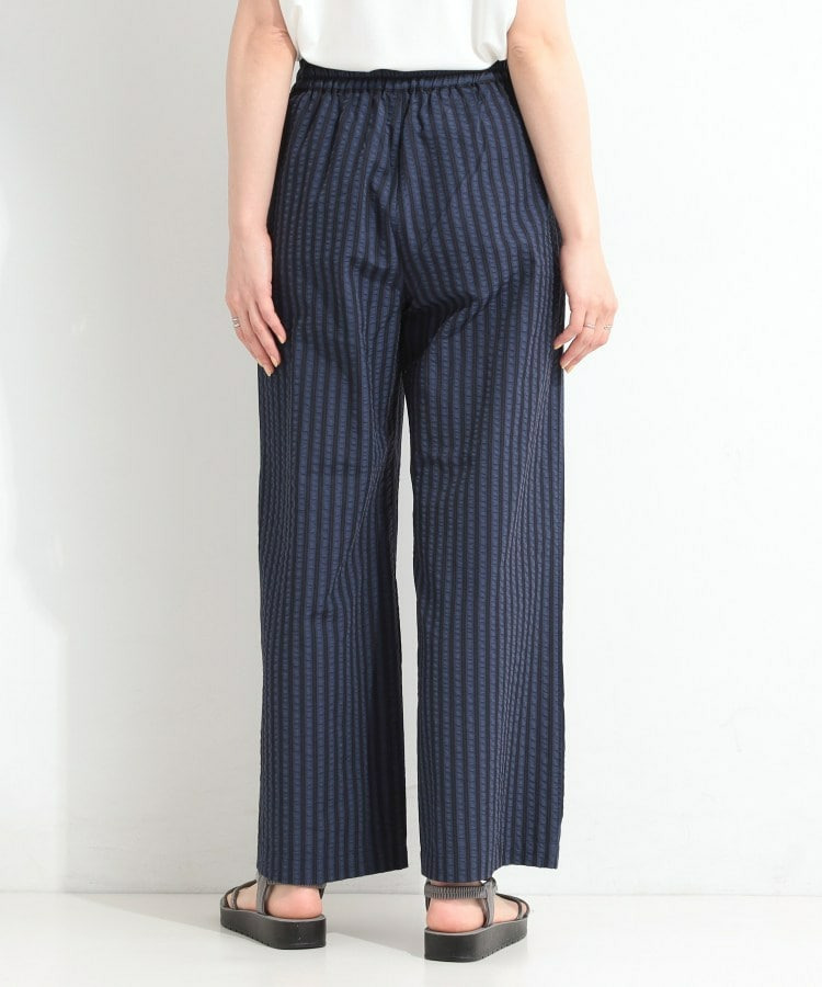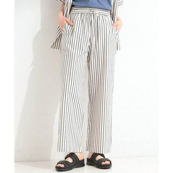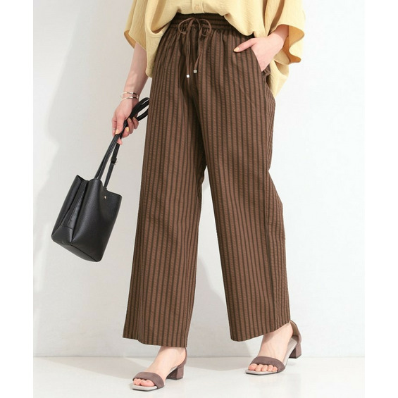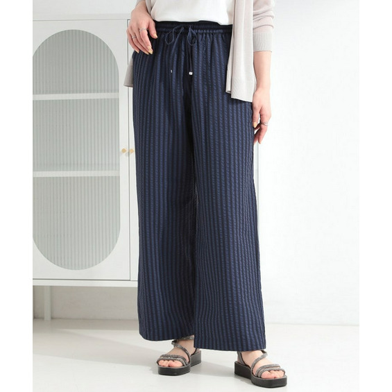 清涼感のあるサッカーストライプのイージーパンツ。