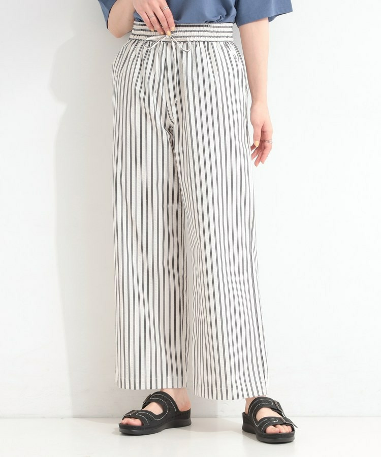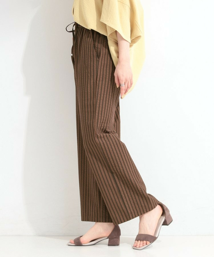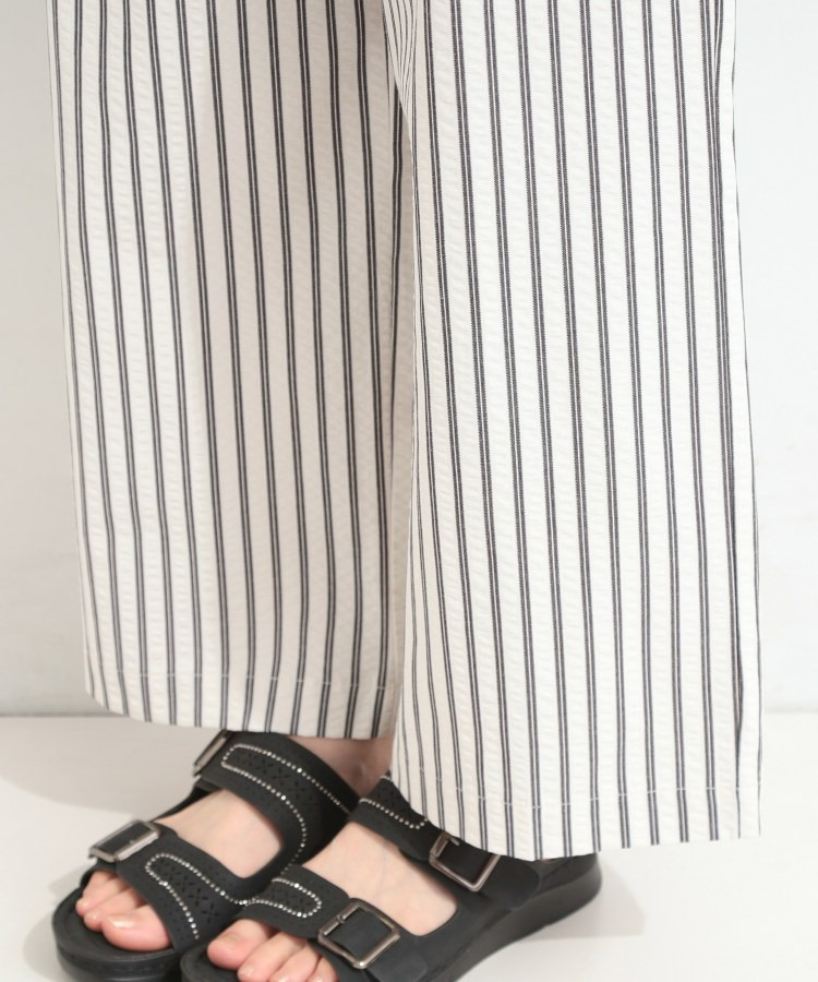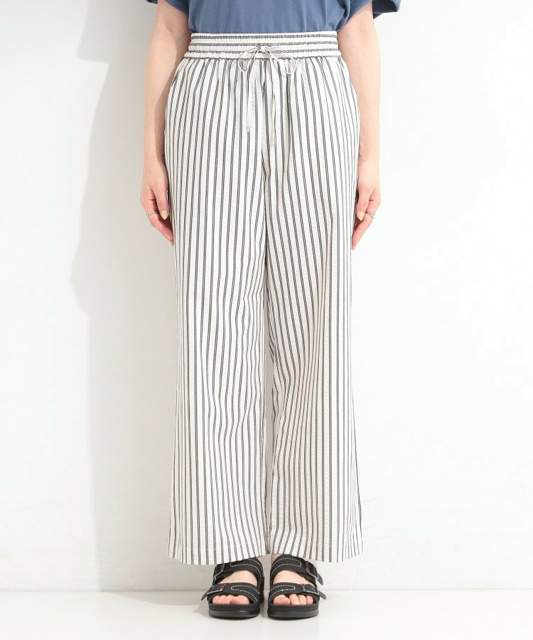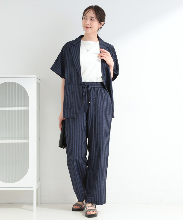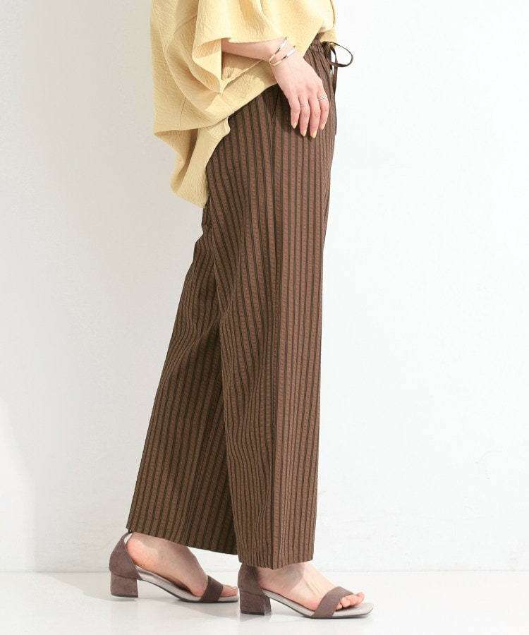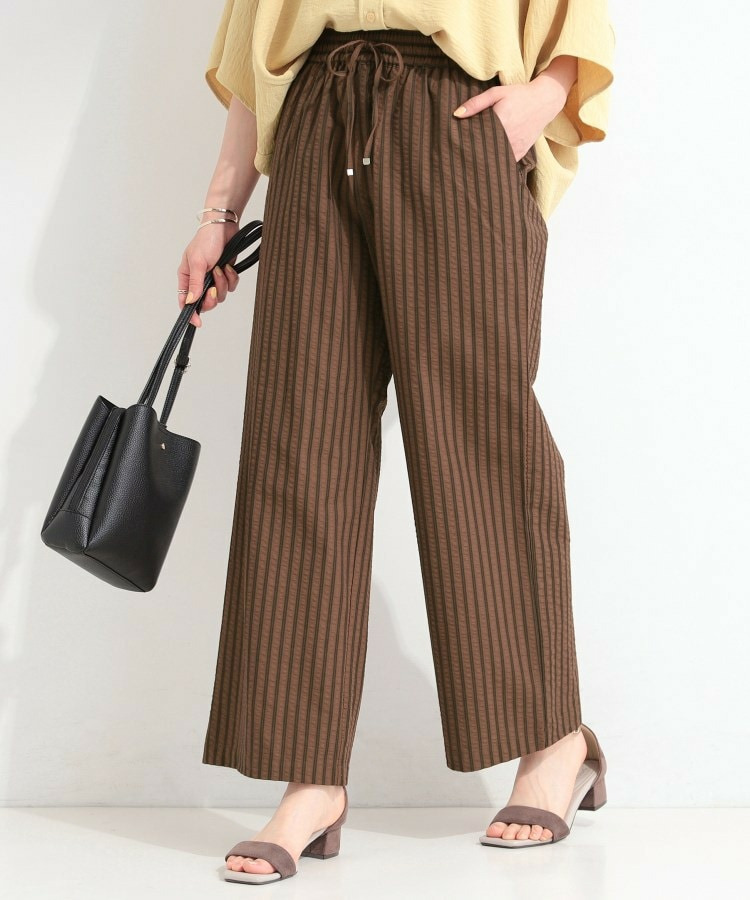 清涼感のあるサッカーストライプのイージーパンツ。