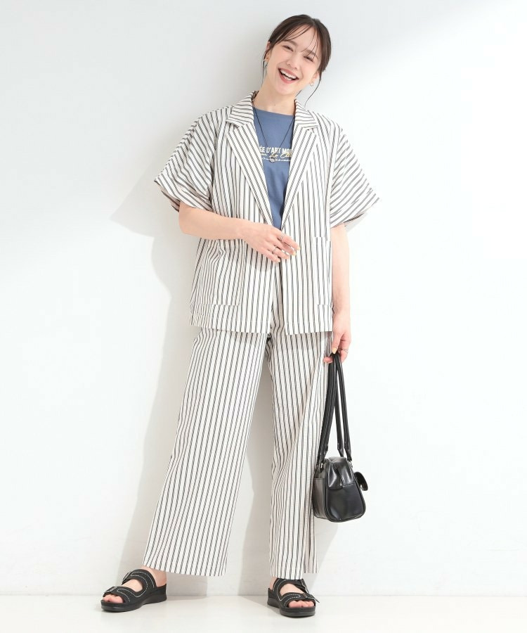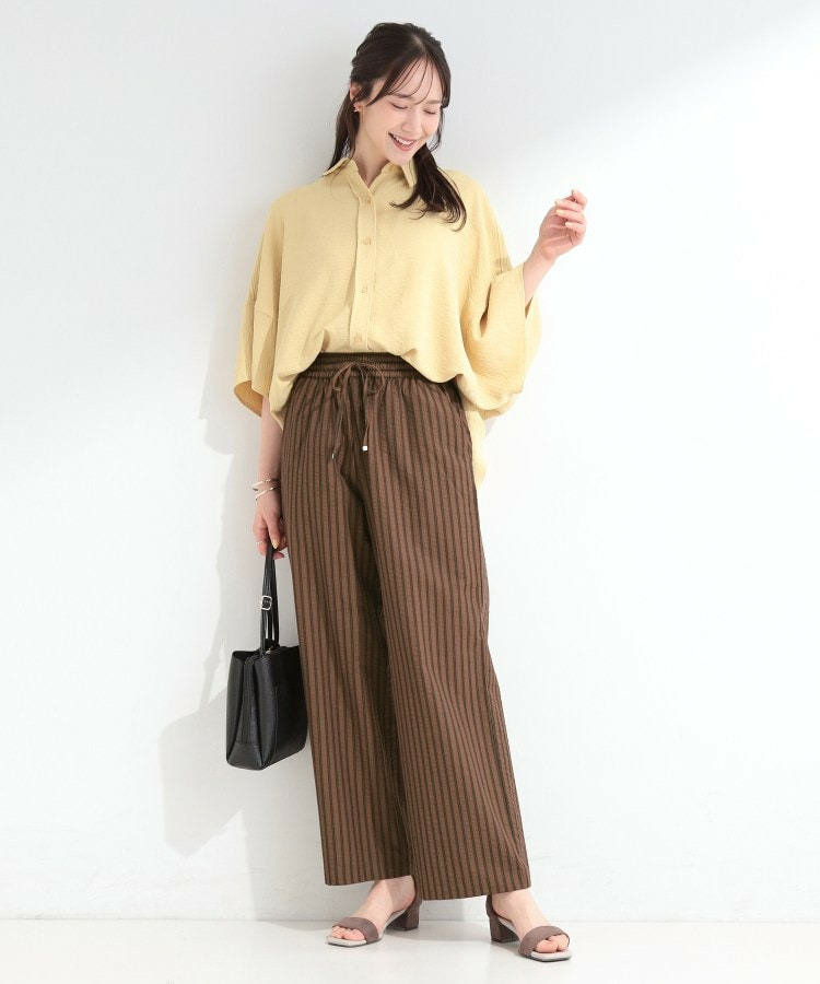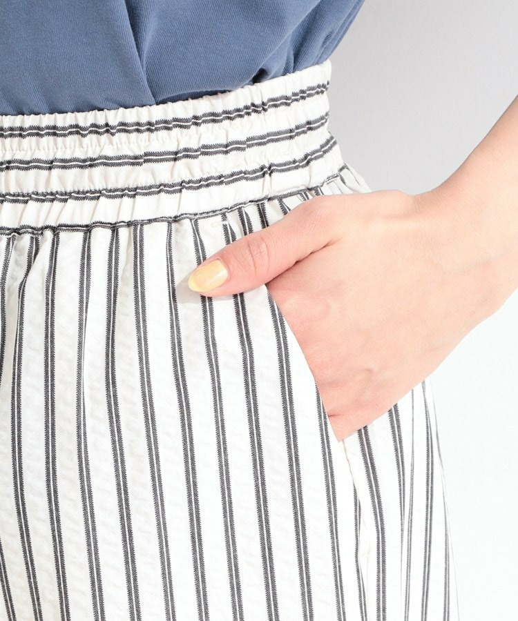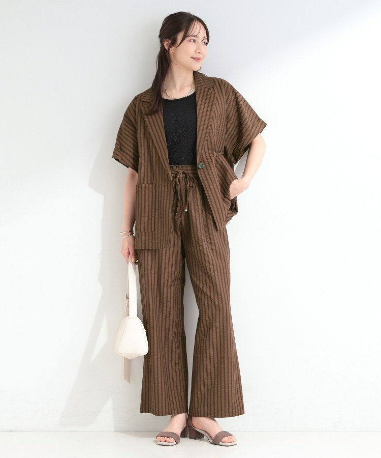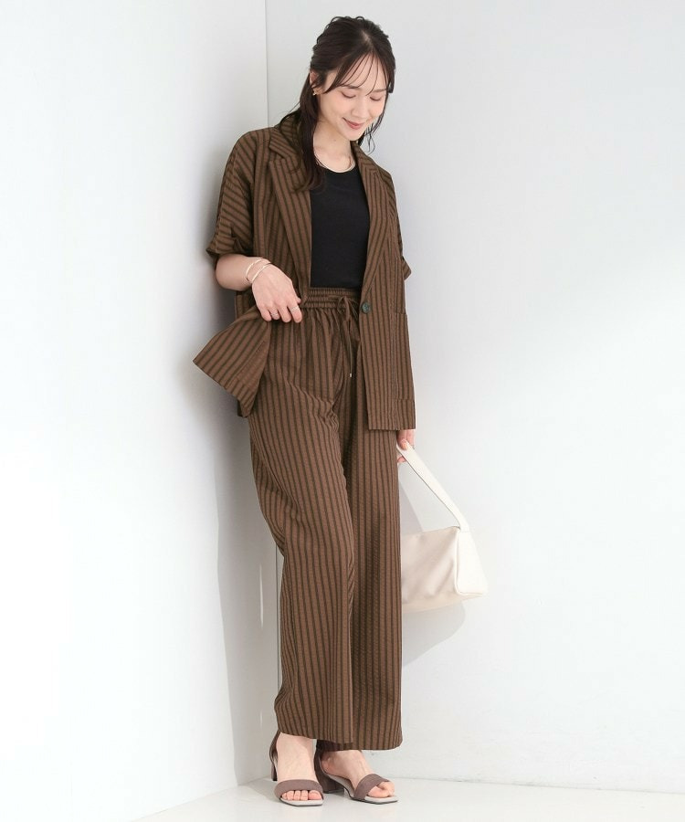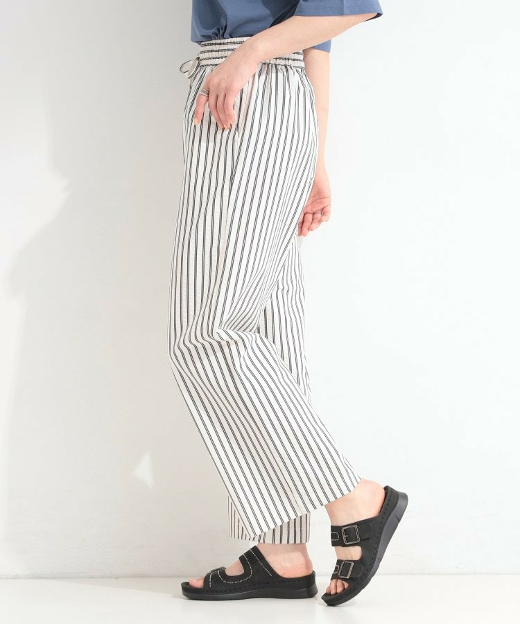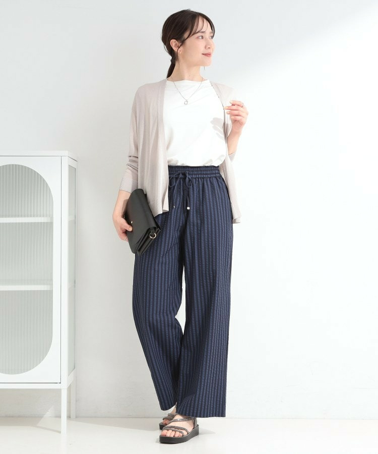 清涼感のあるサッカーストライプのイージーパンツ。