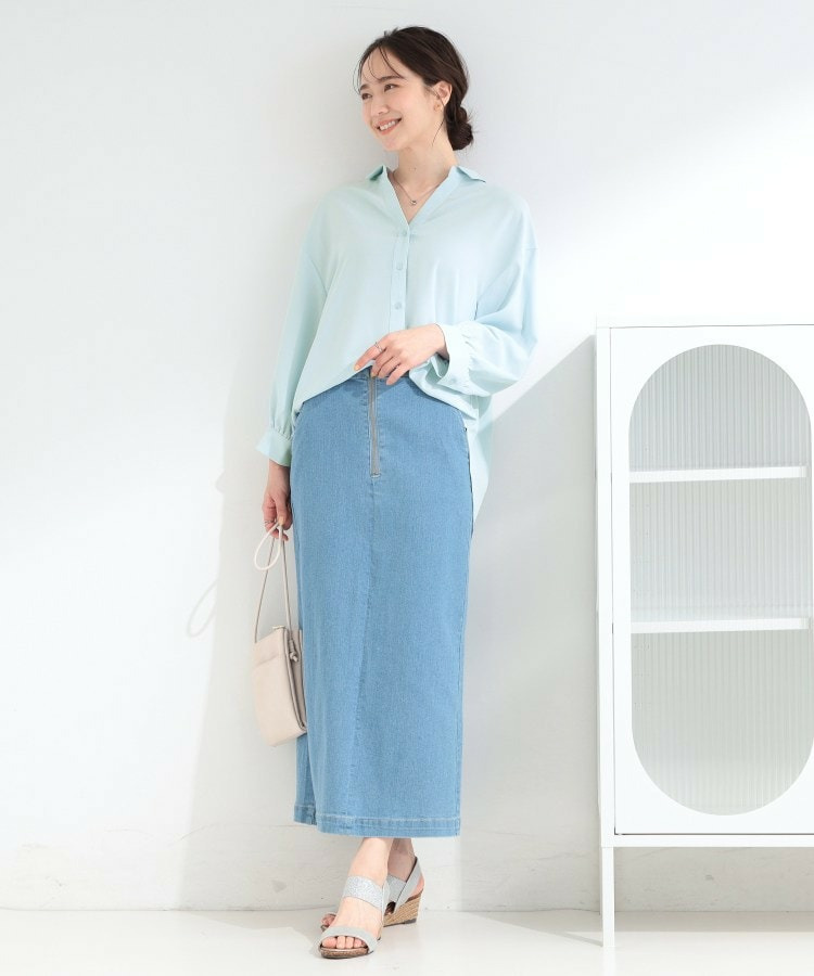 一枚でサマになるデザインなので、シンプルなボトム合わせがおすすめです。