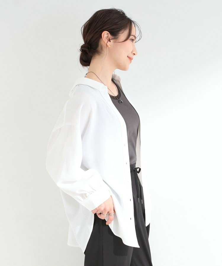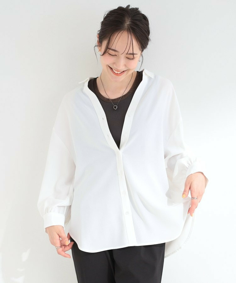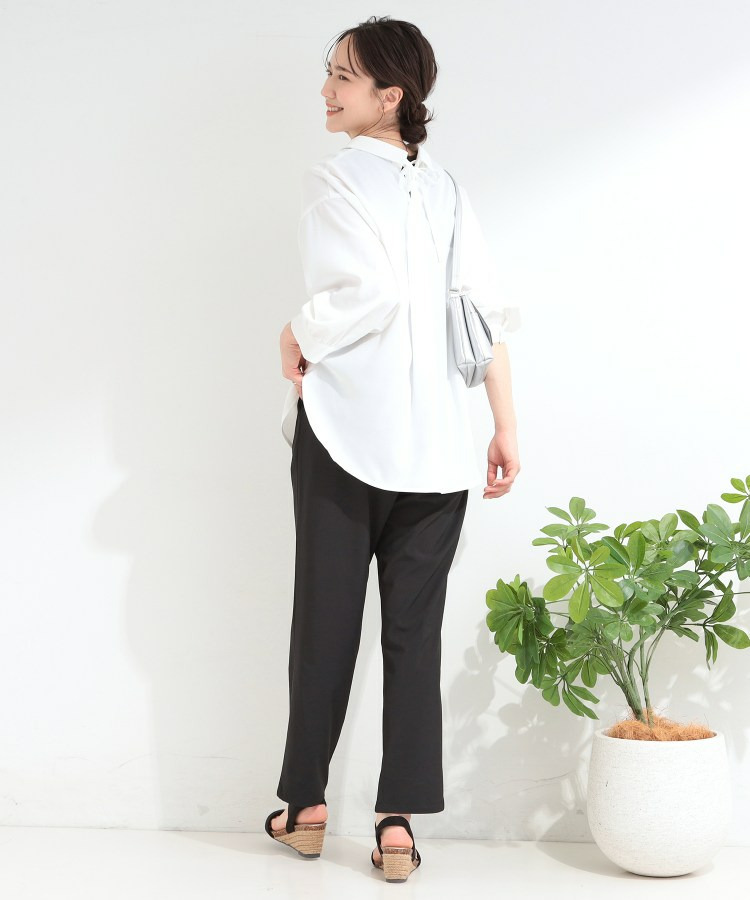 落ち感のある素材と程よいゆとりで、体のラインを拾いにくいのも嬉しいポイントです。