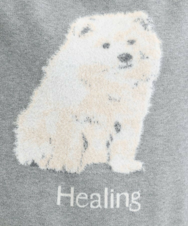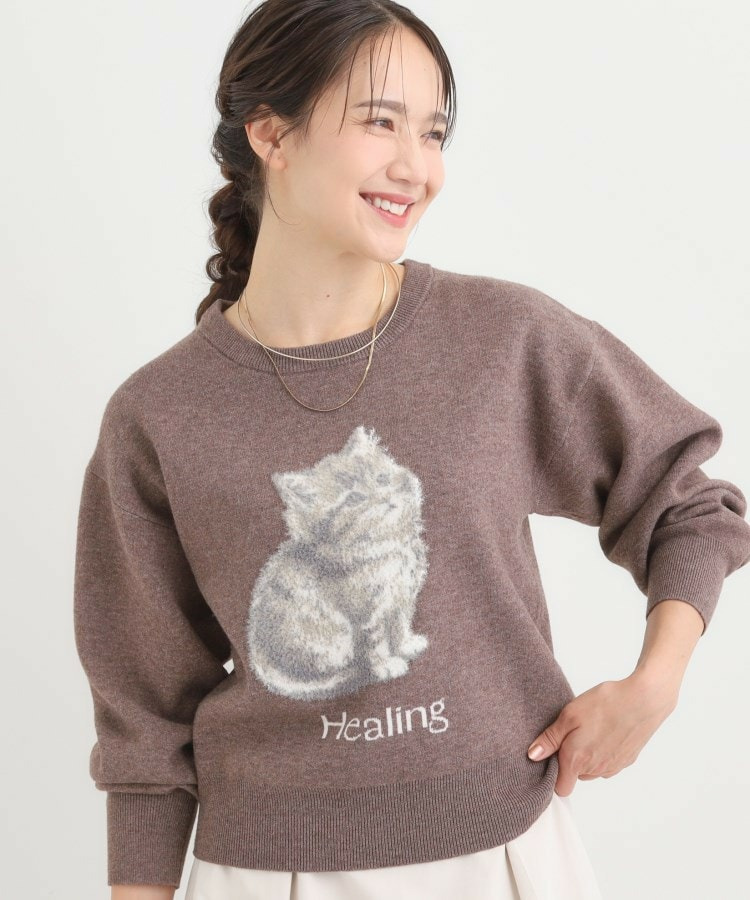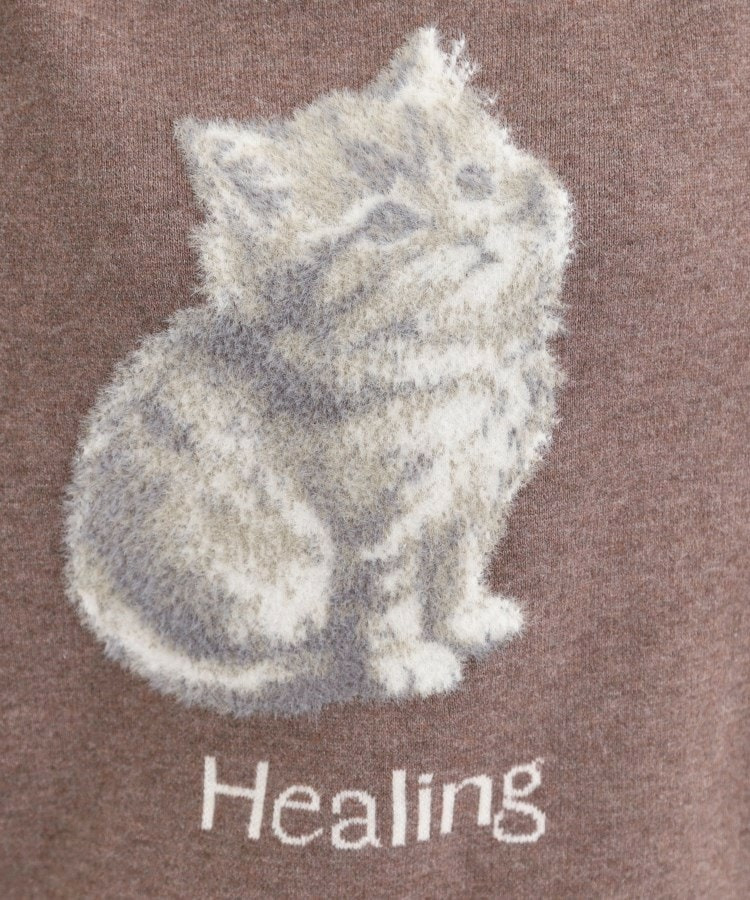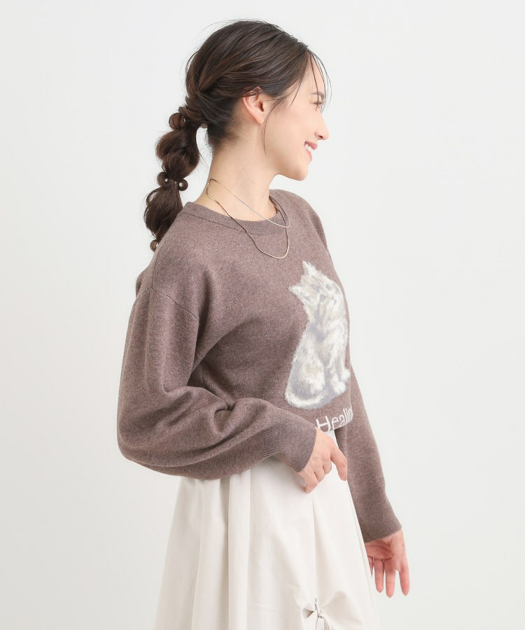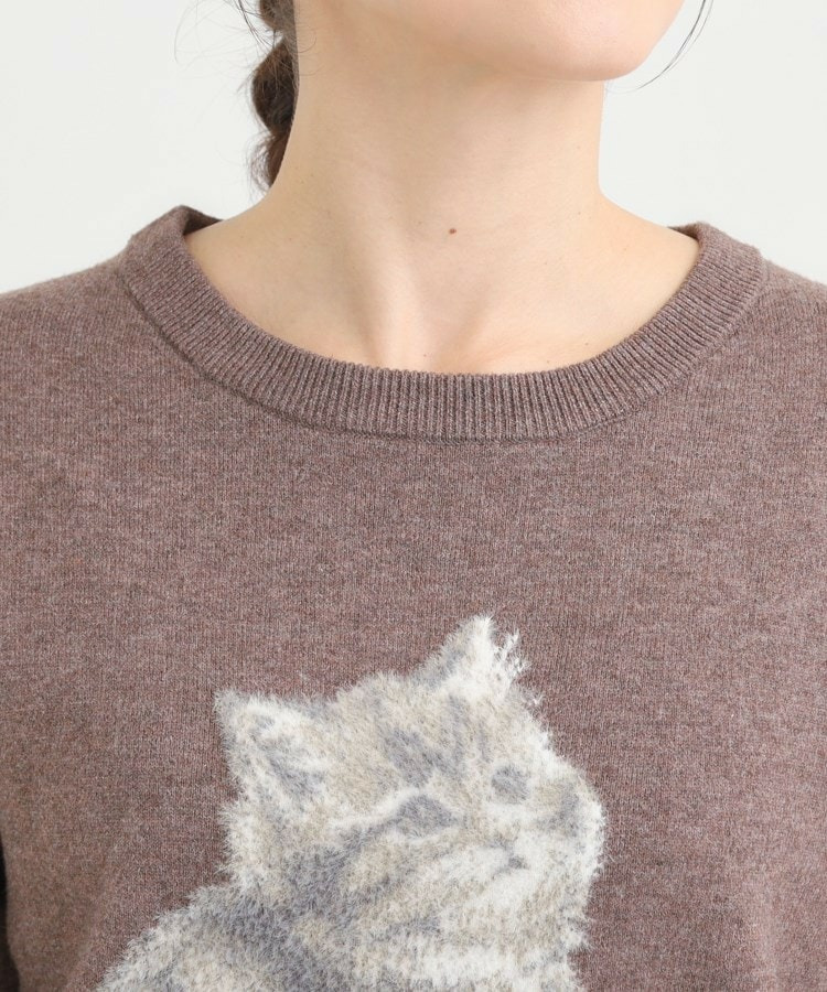 ふわふわとしたフェザーの糸なので、リアルなわんちゃん・ねこちゃんのような手触りが新感覚のニット。