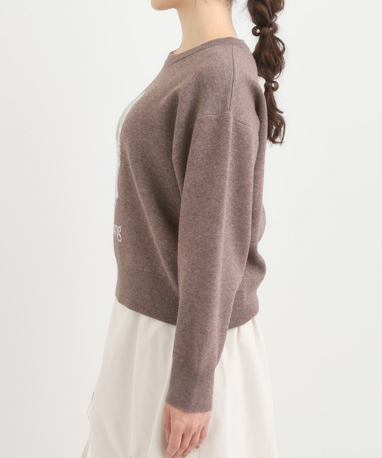 もちもちタッチのスウェットライクニットのボディにふわふわのフェザーで柄を表現したニットです。