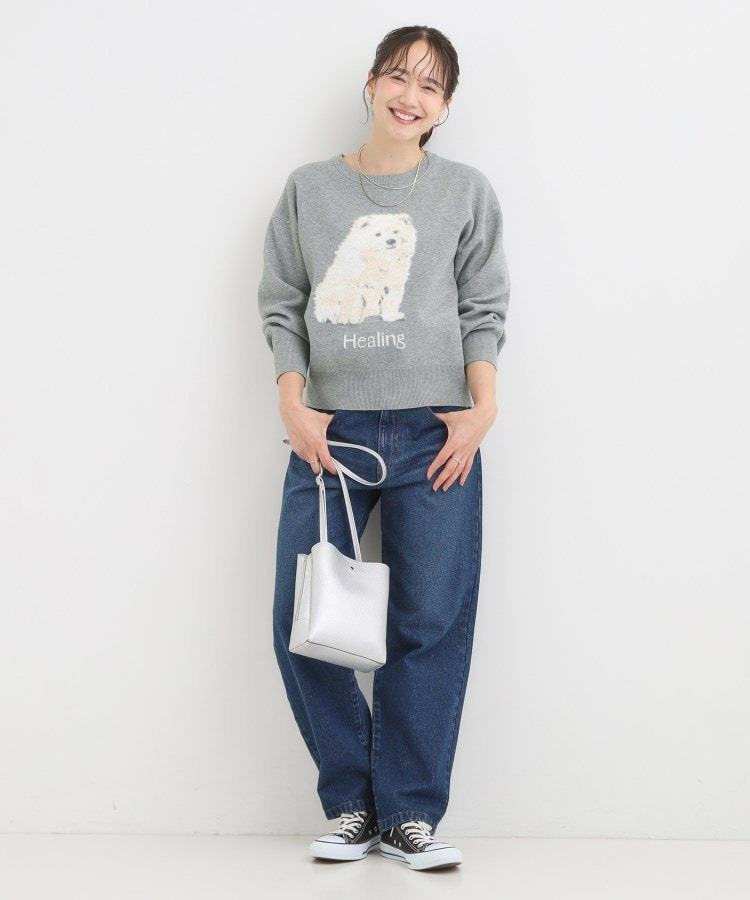 トレンドのデニムパンツや、バルーンスカートなどに合わせたカジュアルスタイルがおすすめです。
