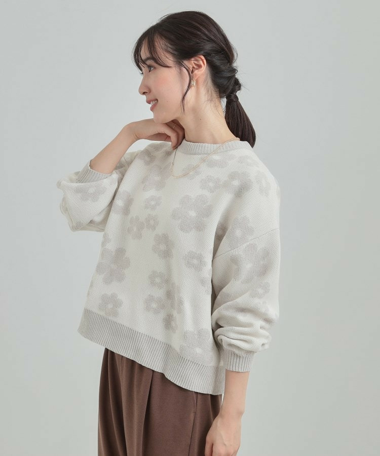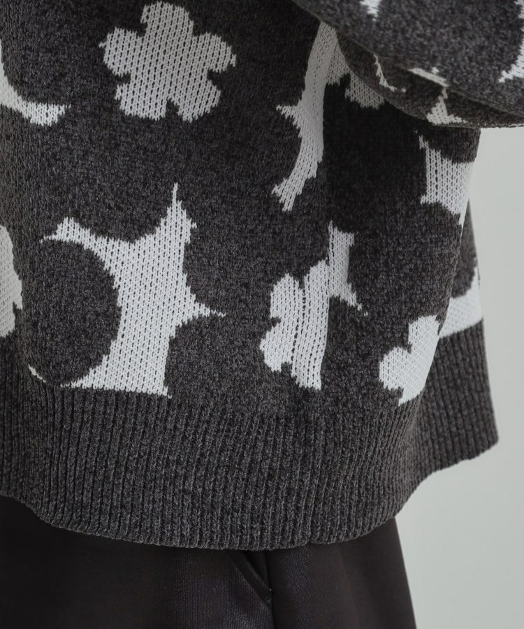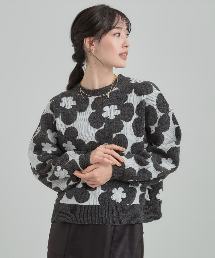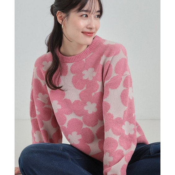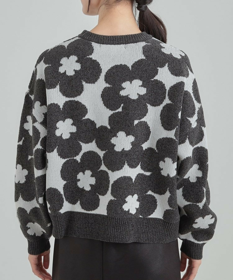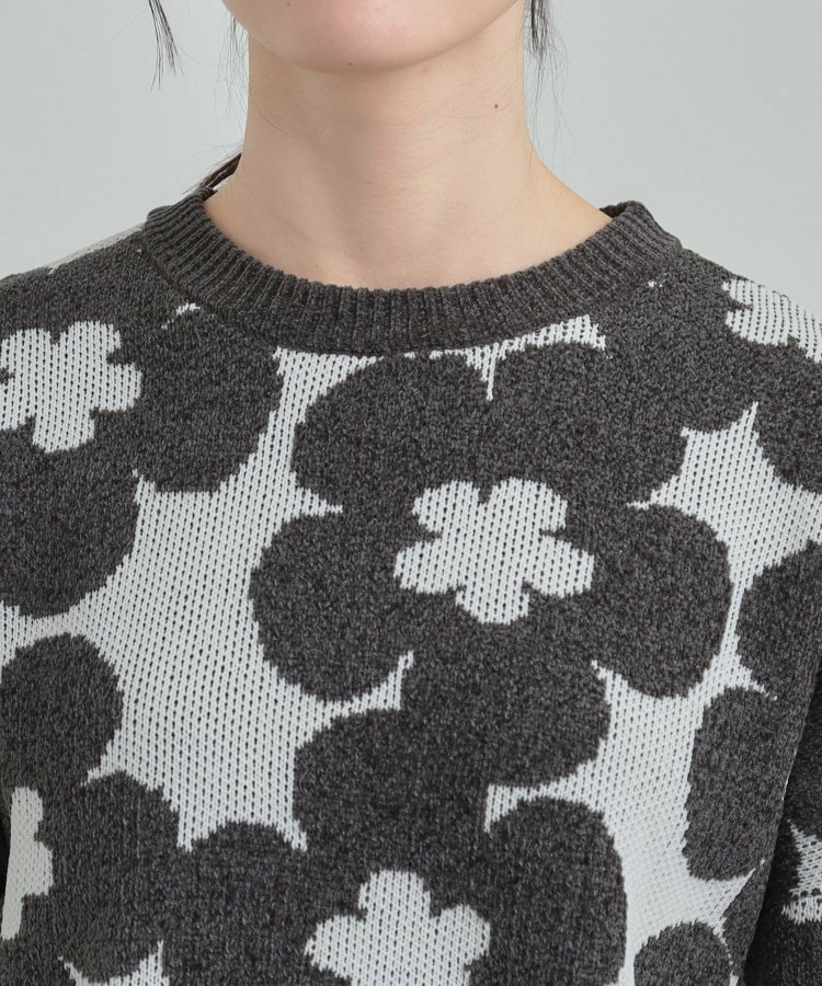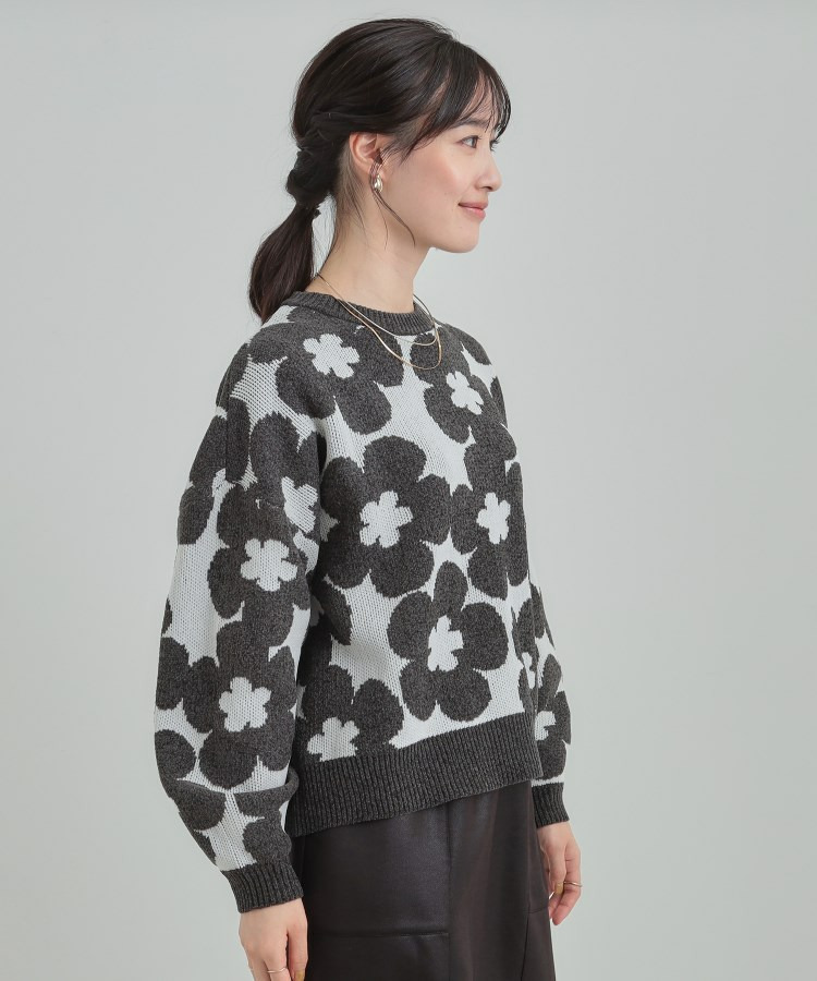 大き目と小さ目の2種類の花柄の総柄ニットです。