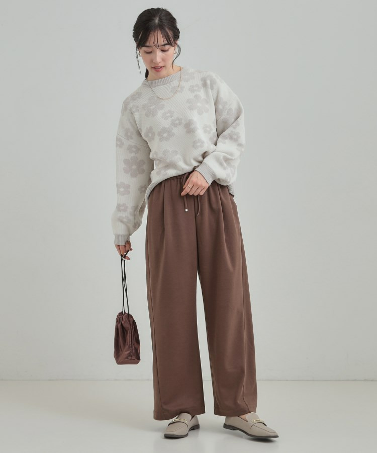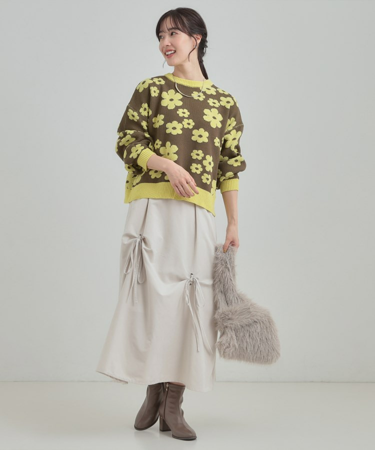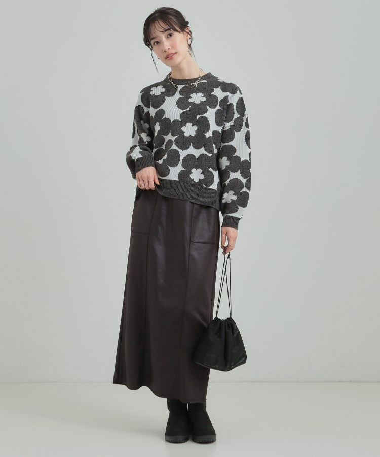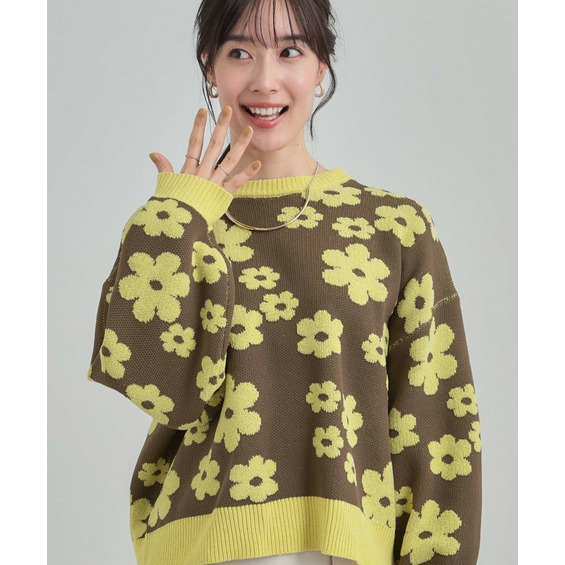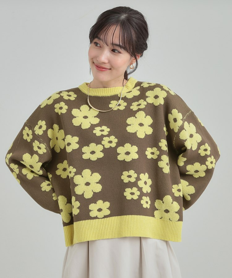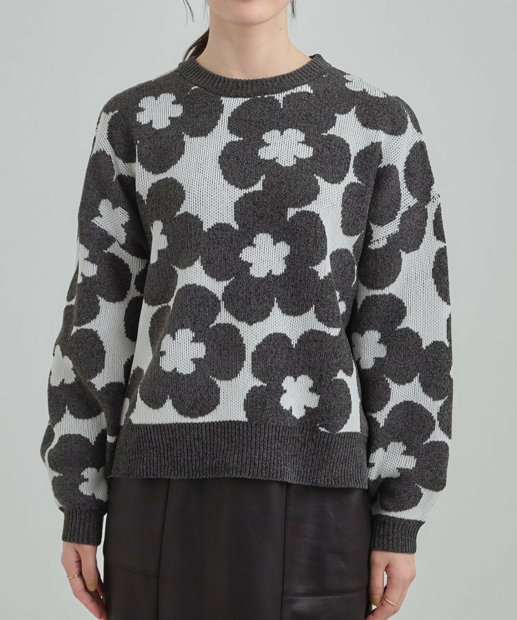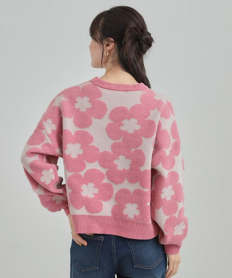 大き目と小さ目の2種類の花柄の総柄ニットです。