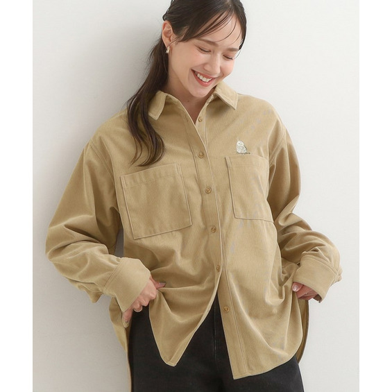 旭山動物園のエゾフクロウとレッサーパンダをモチーフに、胸元にワンポイントの刺繍を施したコーデュロイシャツ。