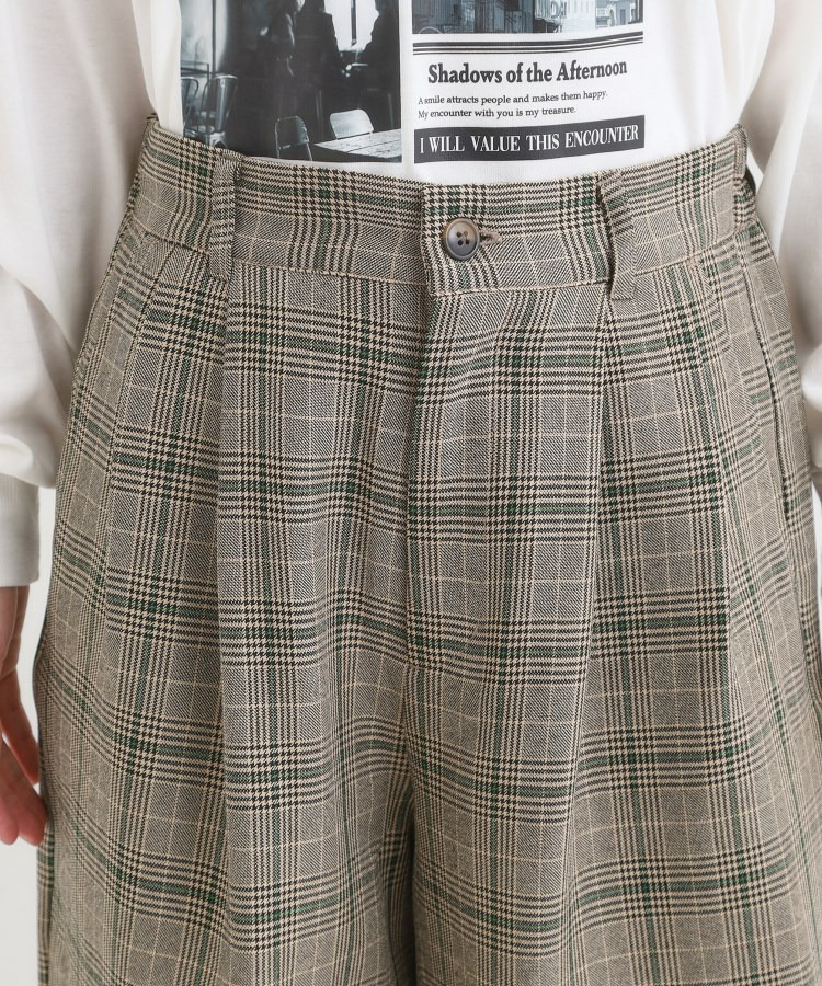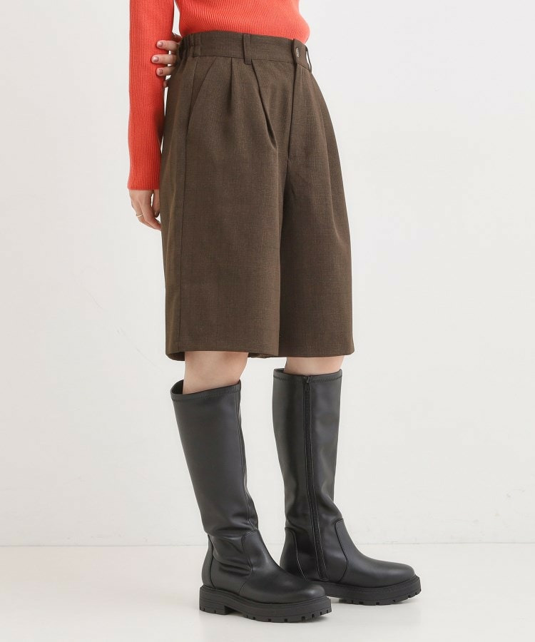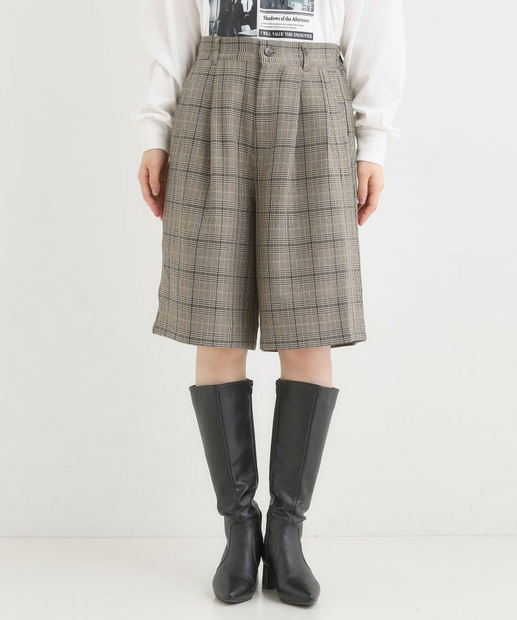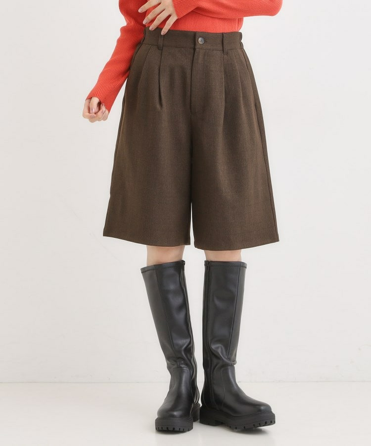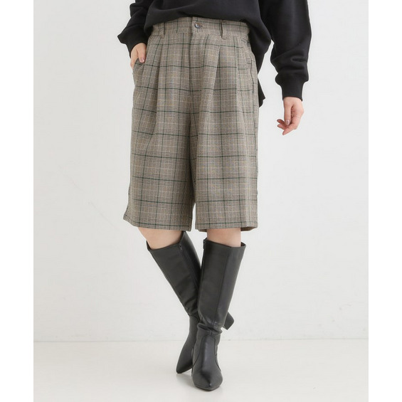 秋らしいチェック柄の2色のタックハーフパンツ。