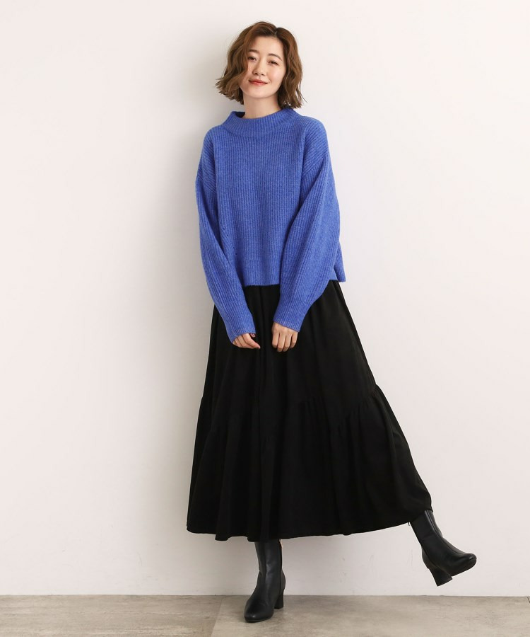 シャツや長め丈のTシャツをレイヤードしてパンツやナロースカートと合わせていただくのがおすすめです。