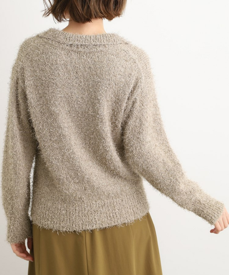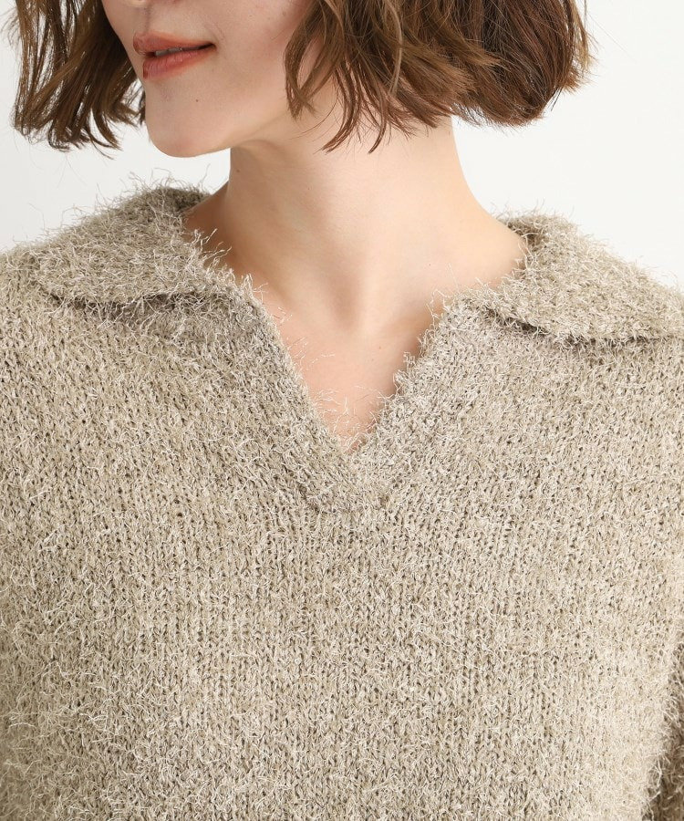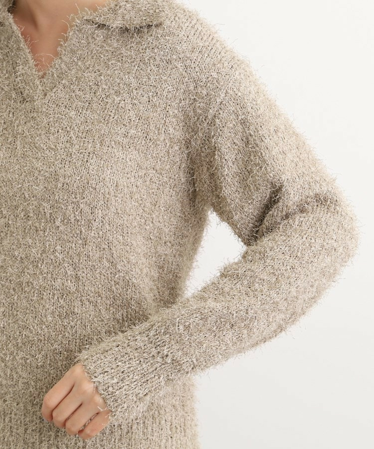 ラメフェザーヤーン オープンカラーニット