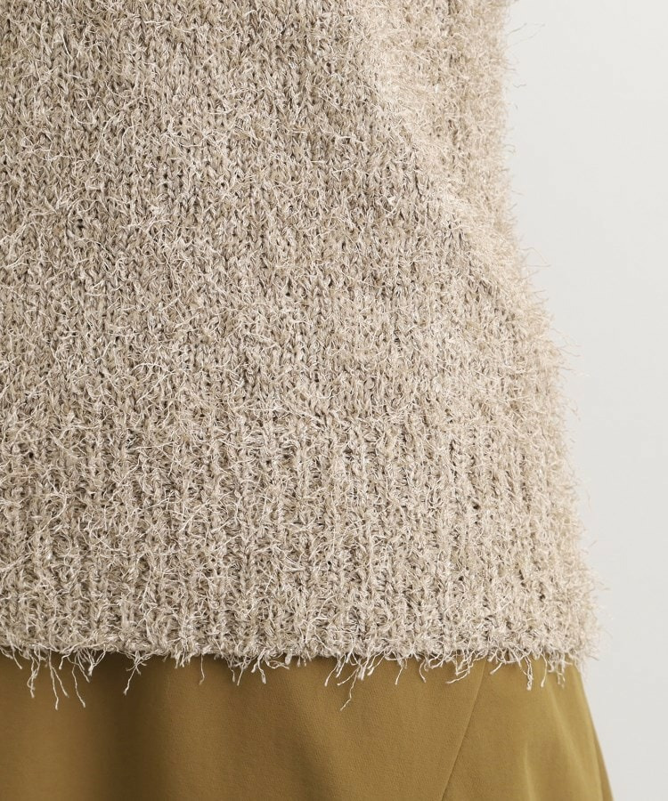 トレンドのオープンカラーデザインを取り入れたフェザーヤーンニット。