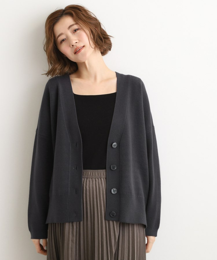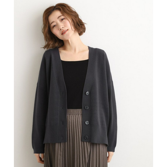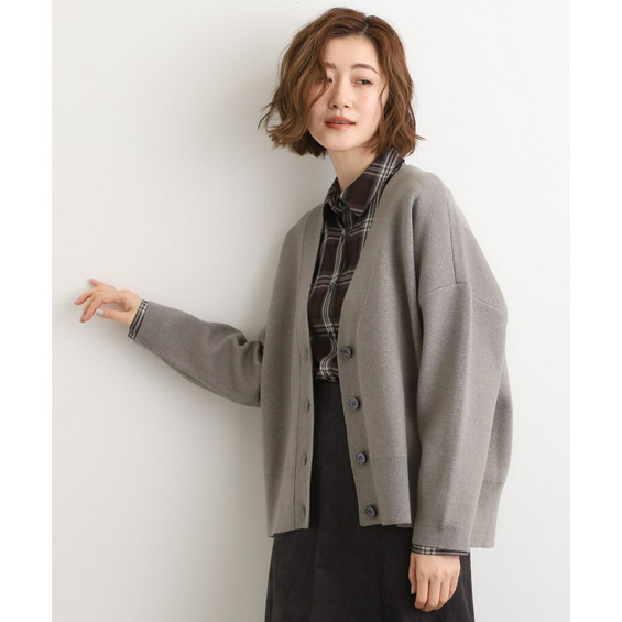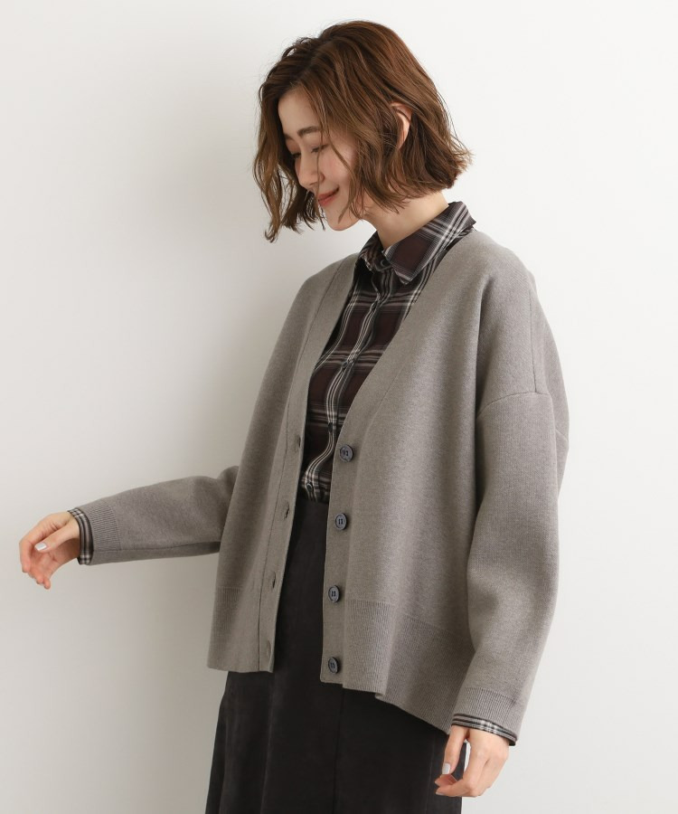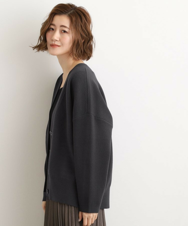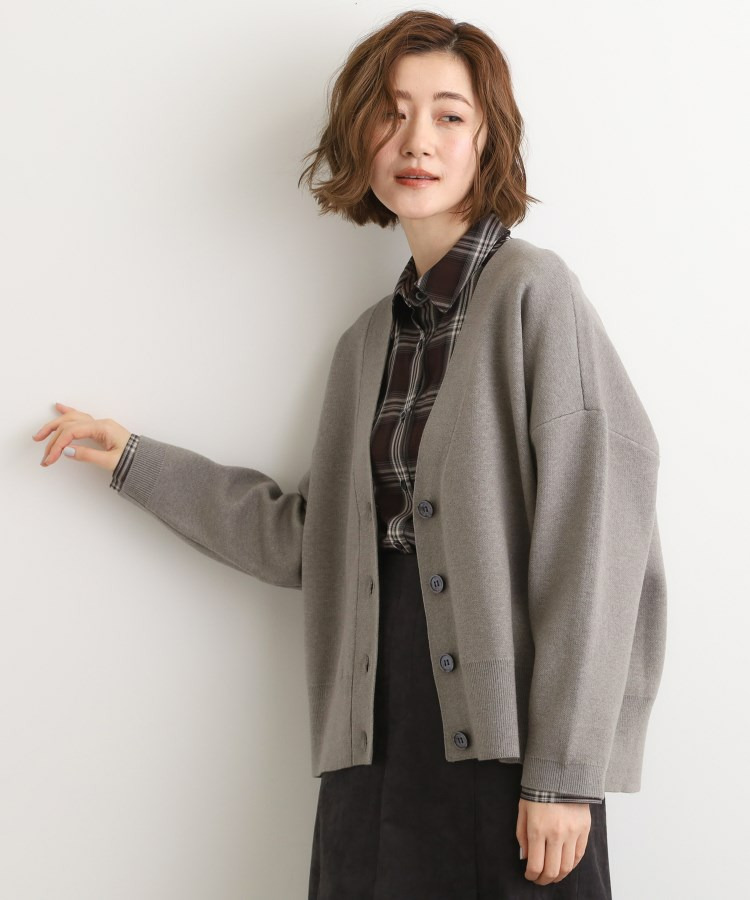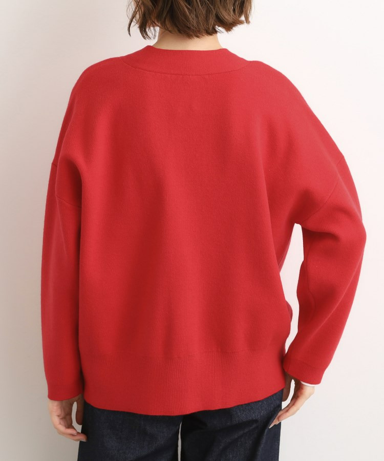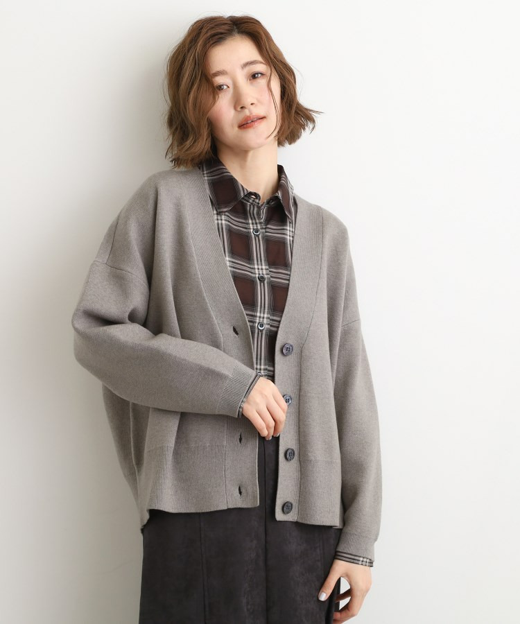 フロントは開閉できるボタン仕様で、羽織りとしてもプルオーバー感覚でも着られるカーディガン。