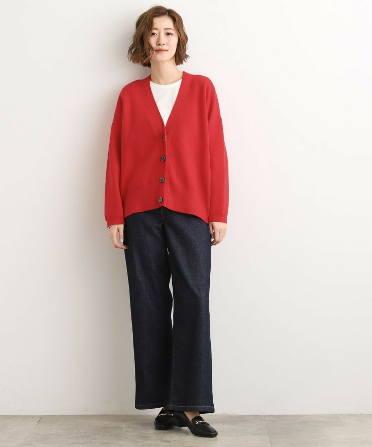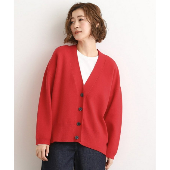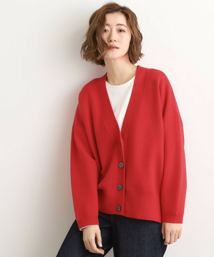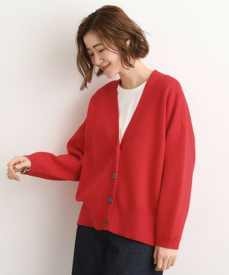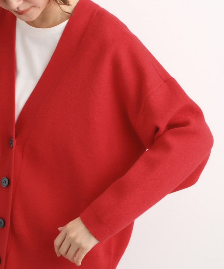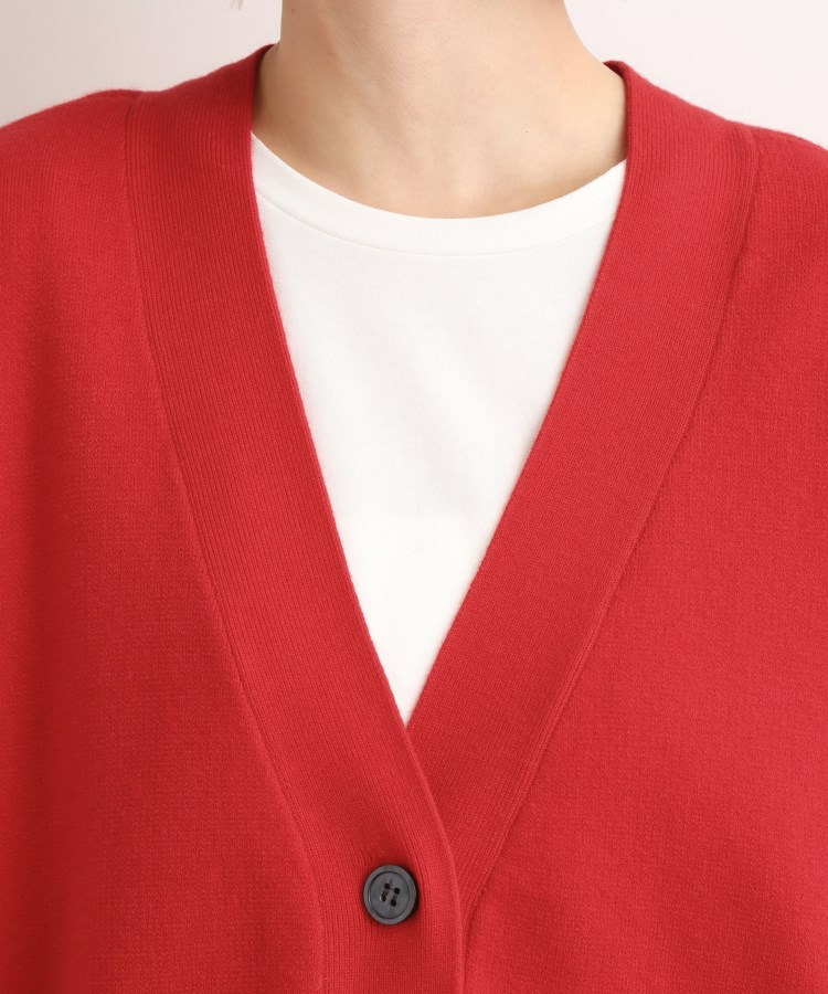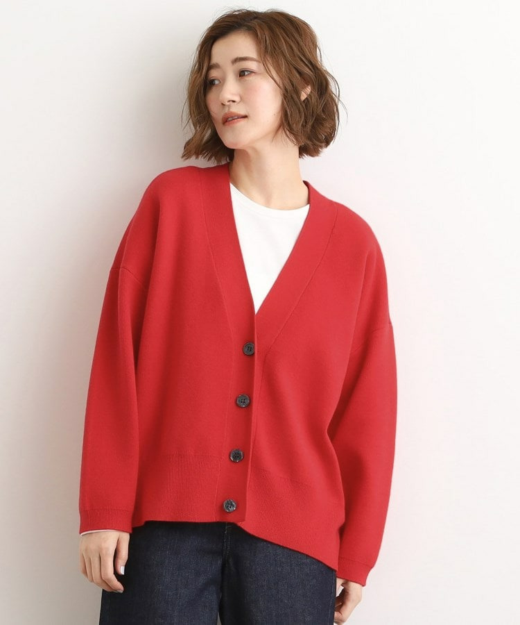 フロントは開閉できるボタン仕様で、羽織りとしてもプルオーバー感覚でも着られるカーディガン。
