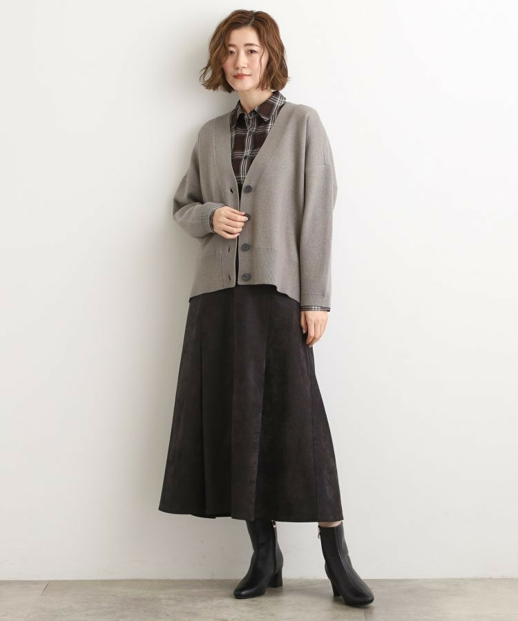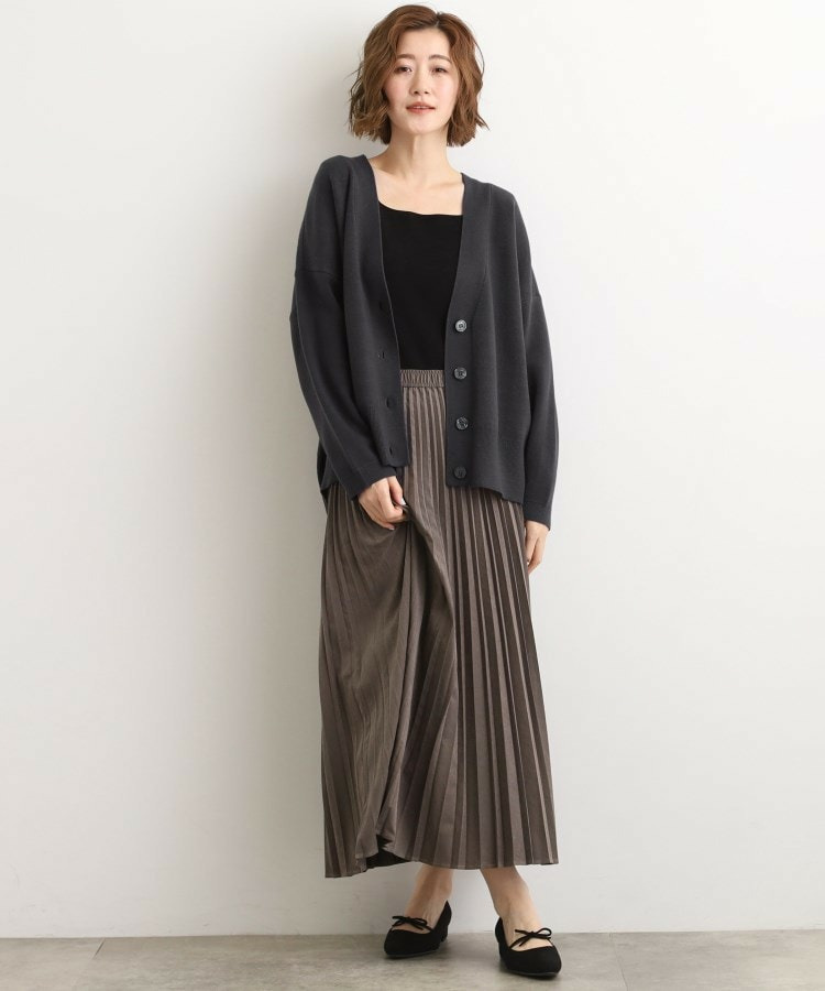 ワイドパンツやロングスカートと合わせると、程よく力の抜けた大人のリラックス感を演出できます。