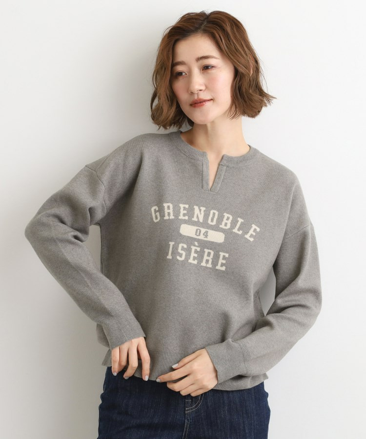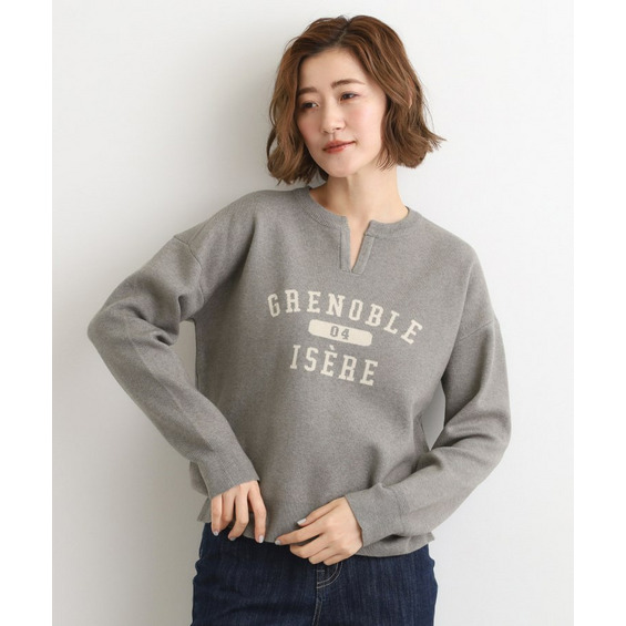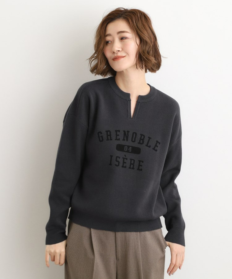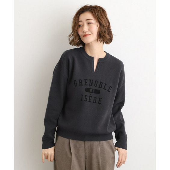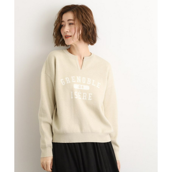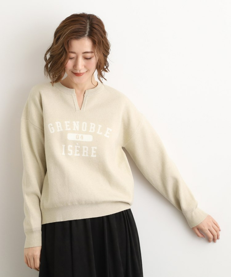 胸元に施したカレッジロゴが目を惹くデザインニット。