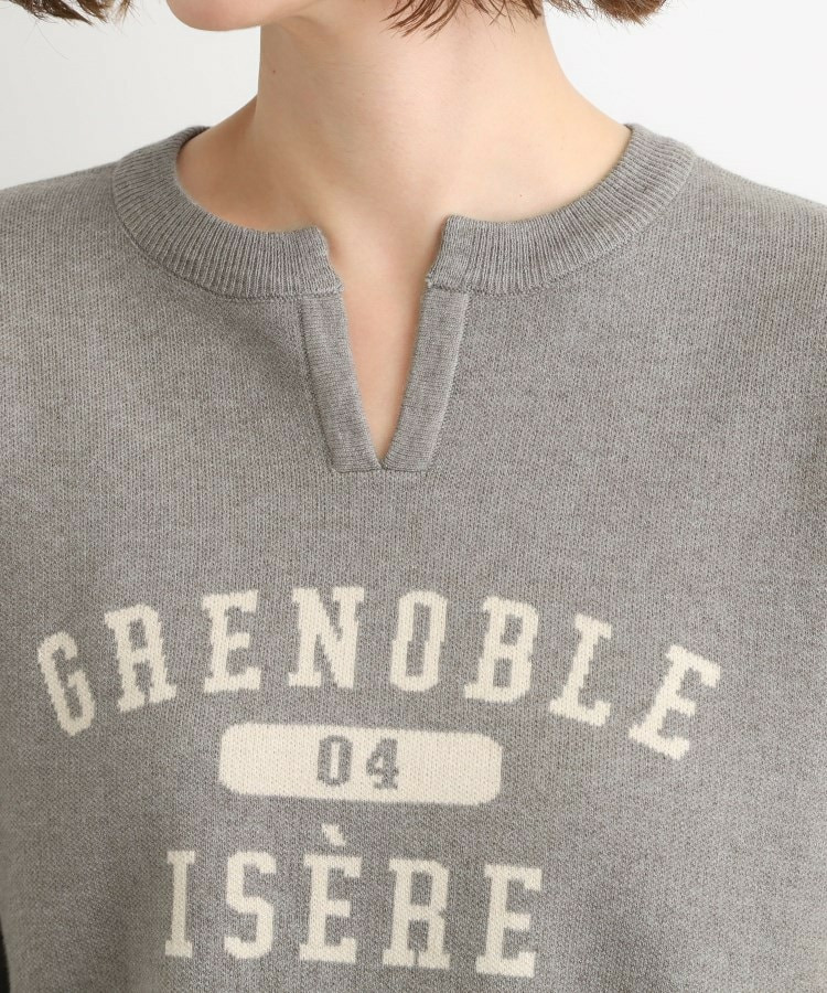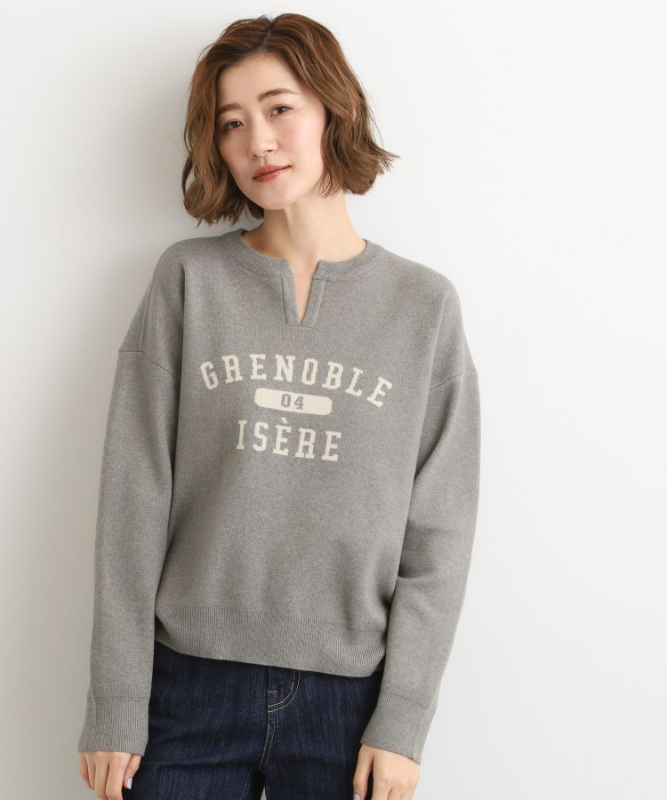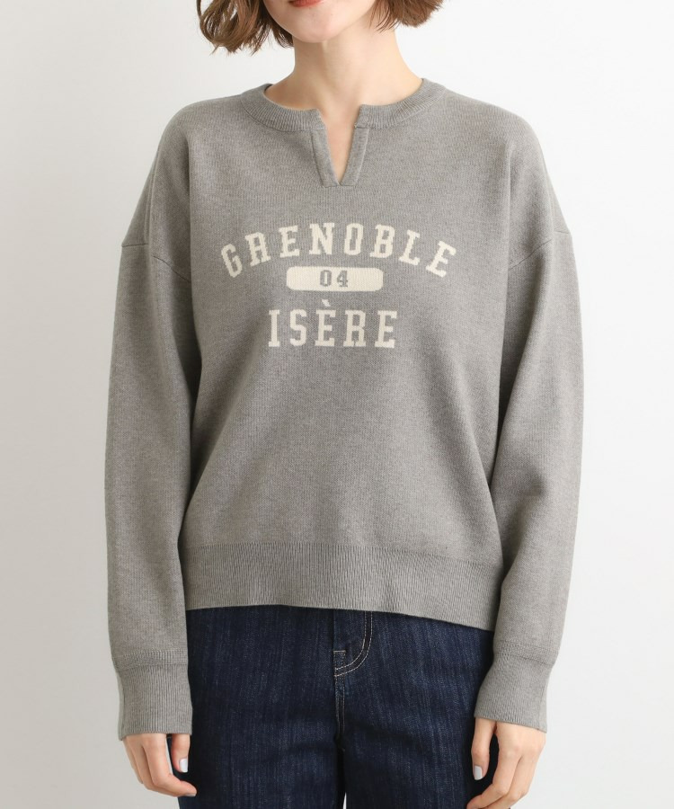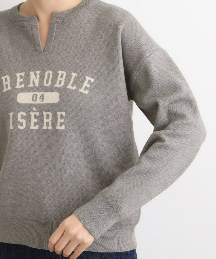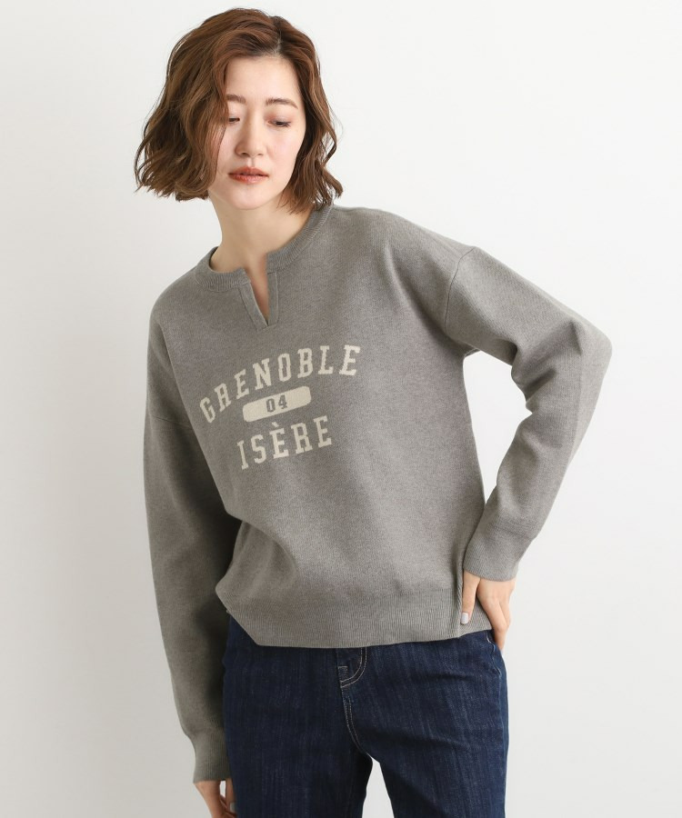 胸元に施したカレッジロゴが目を惹くデザインニット。