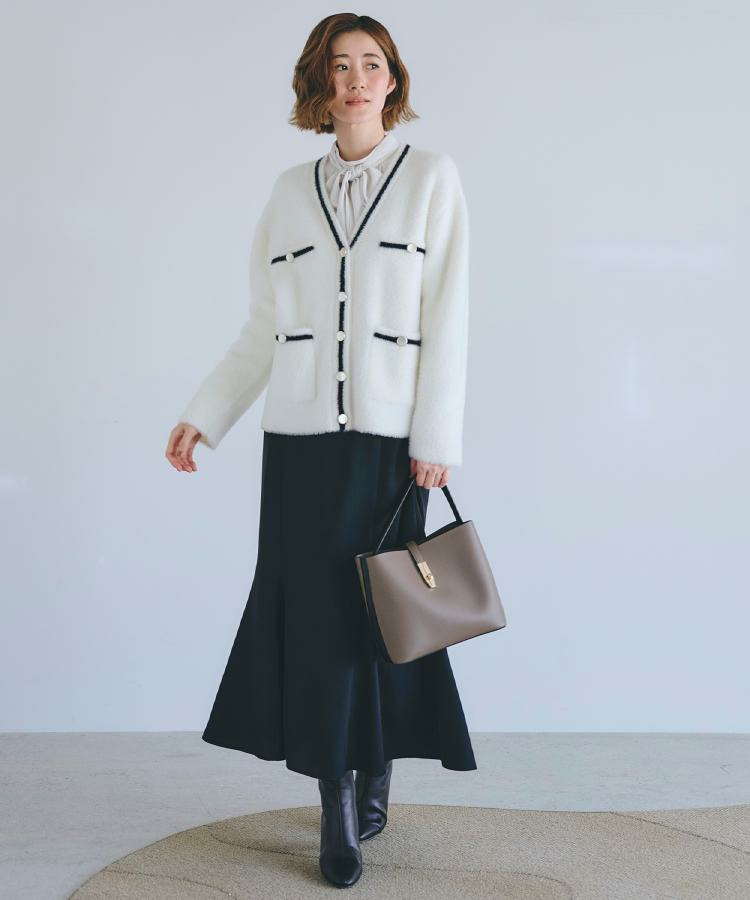 軽やかフェザーで魅せる、クラシカルな主役カーディガン