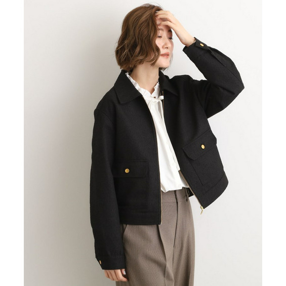 カジュアルなデザインをベースにしながら、ゴールドの釦やファスナーを効かせて上品なアクセントをプラス。