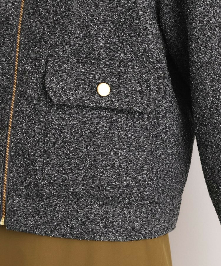 ゴールドの金具がツイードの風合いを引き立て、華やかな印象に。