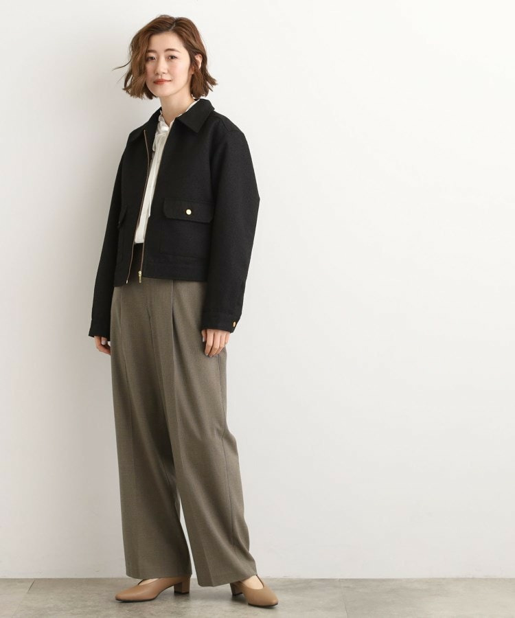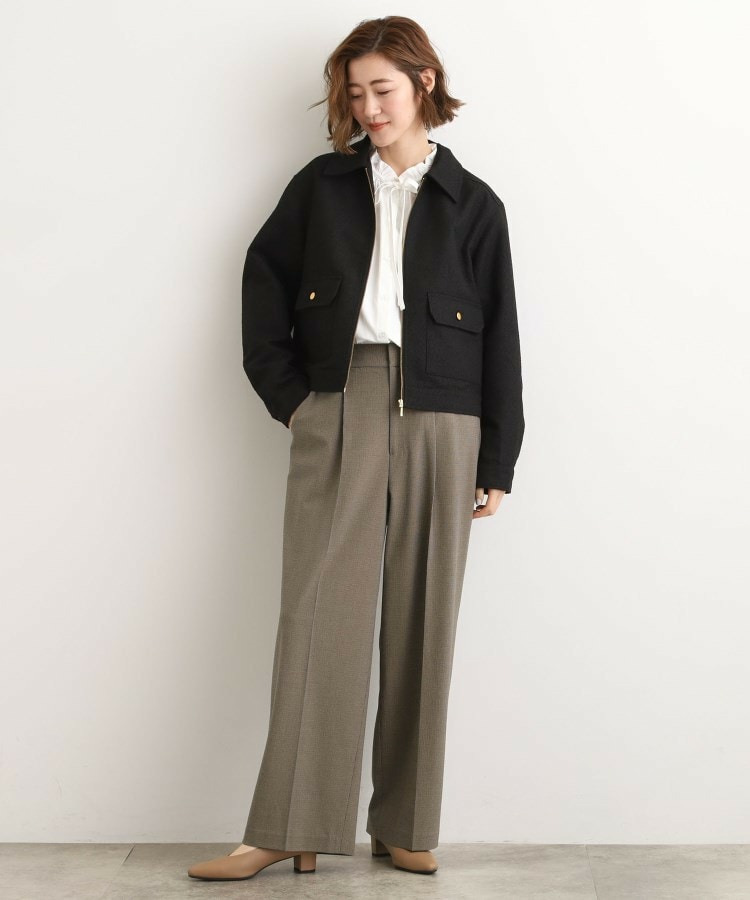 きれいめなスラックスやスカートと組み合わせればモードな雰囲気に。