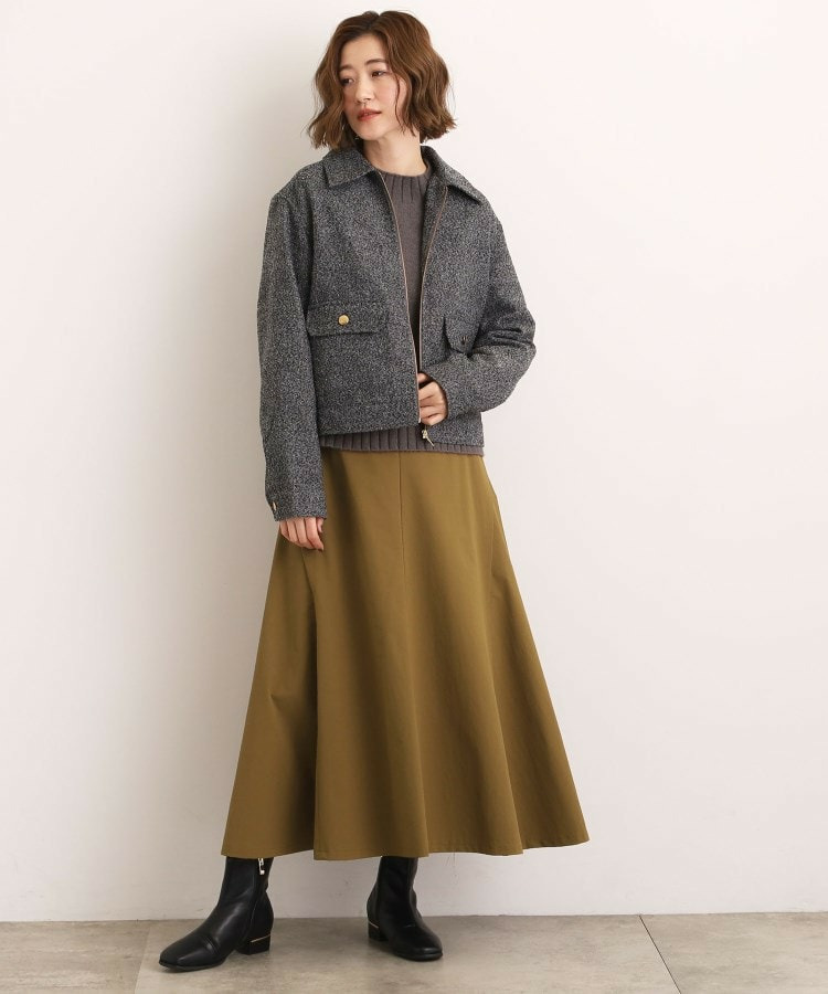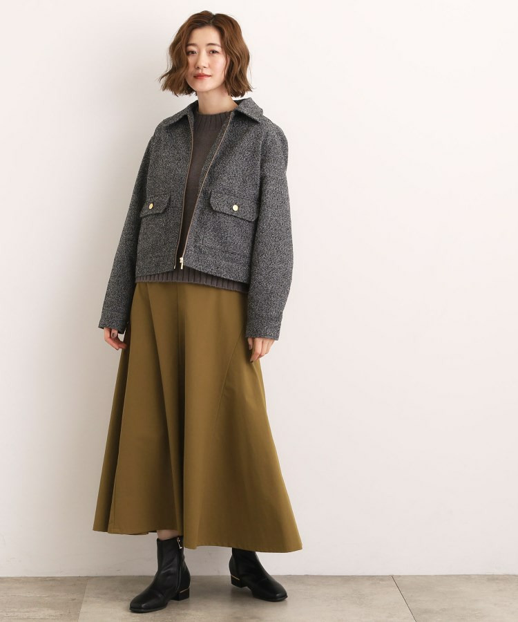 コンパクトな丈感を活かして、ワンピースやマキシスカートとのレイヤードにもおすすめです。