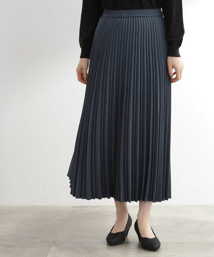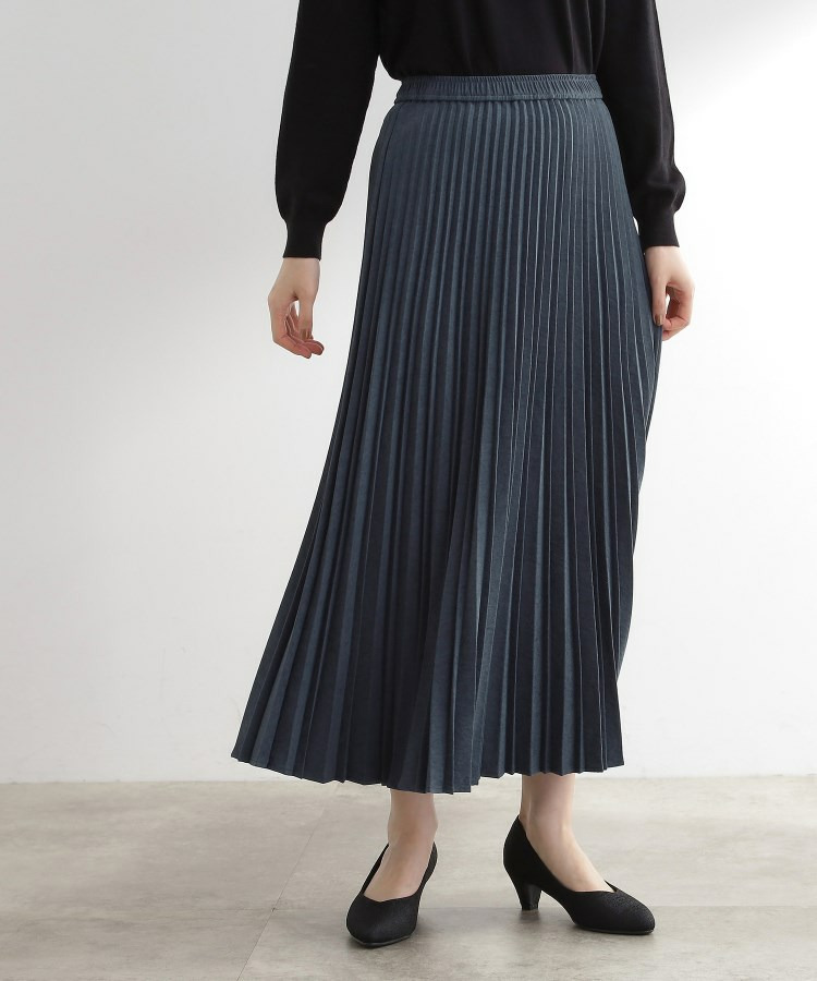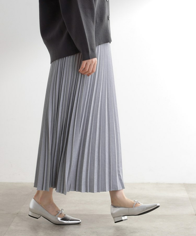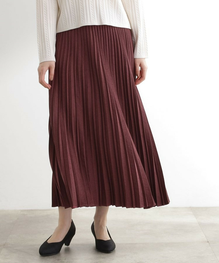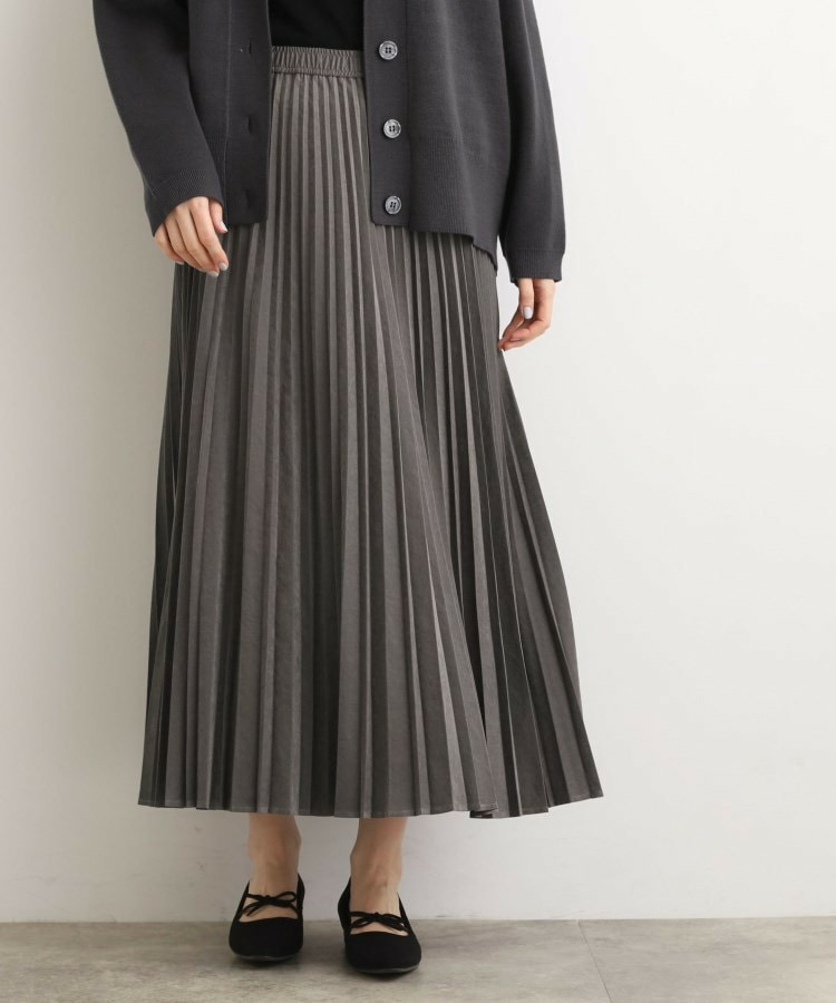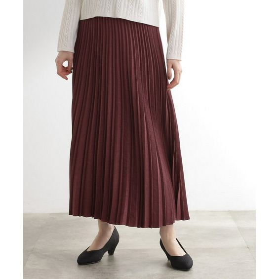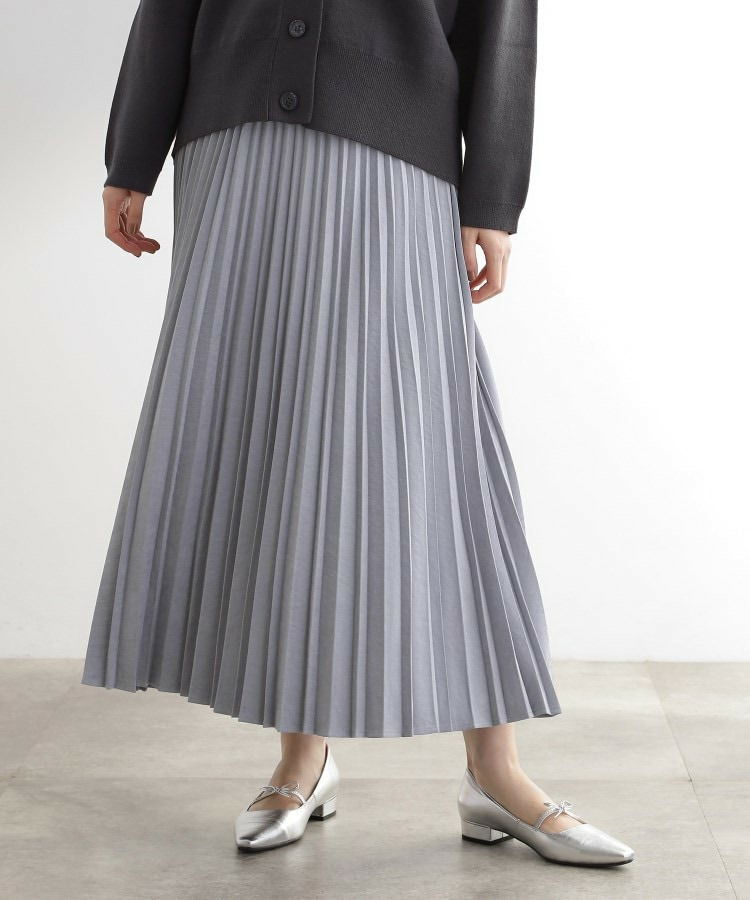 腰まわりをすっきり見せるアコーディオンプリーツスカート。