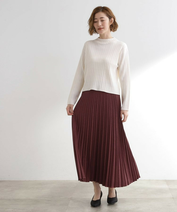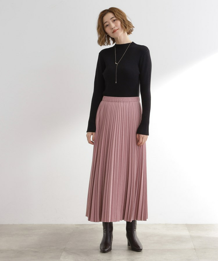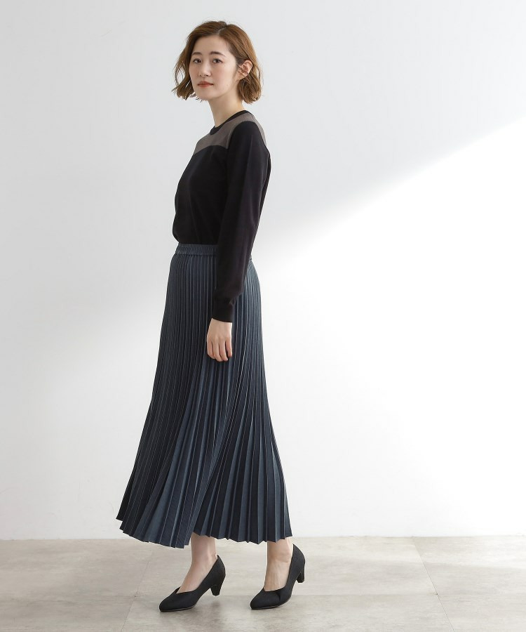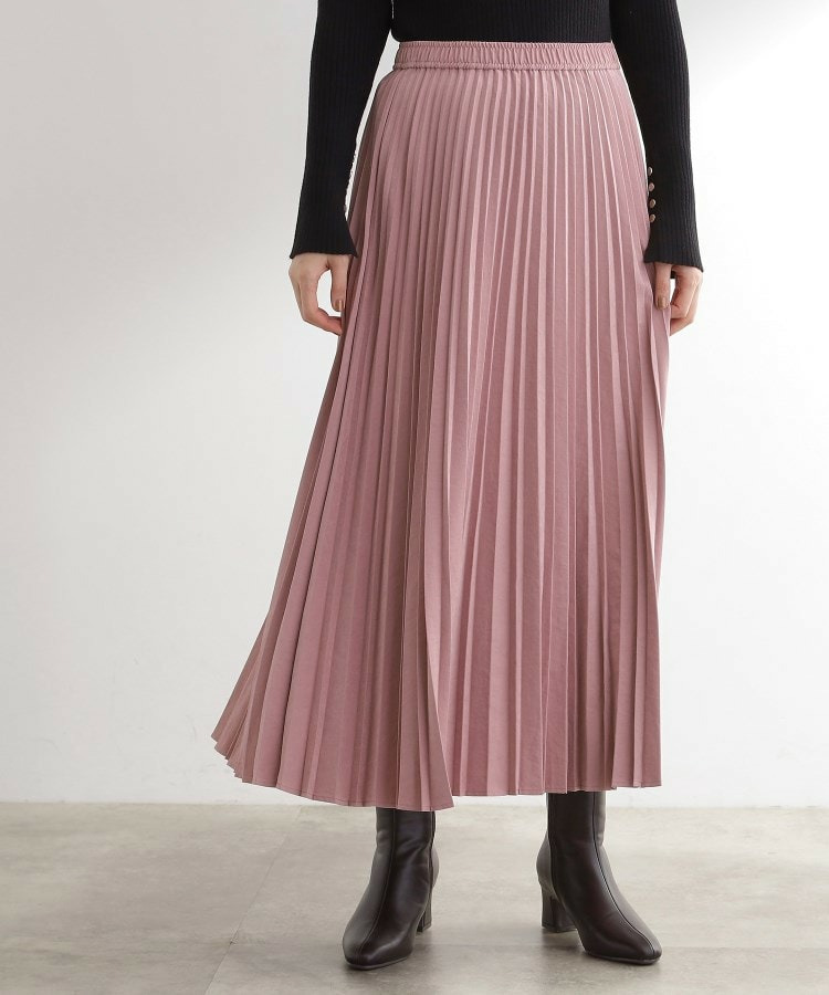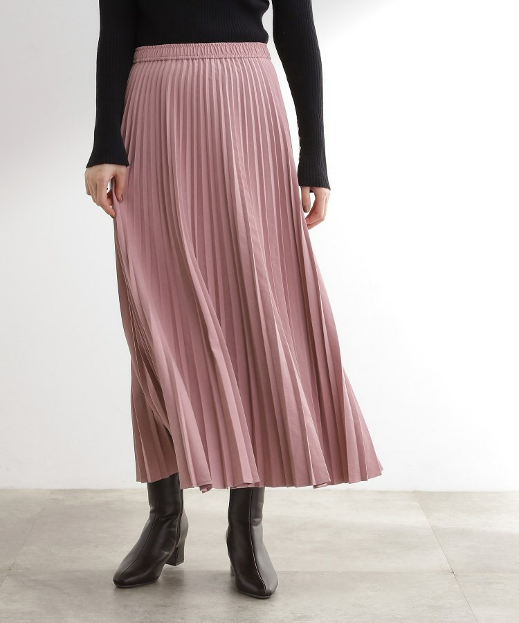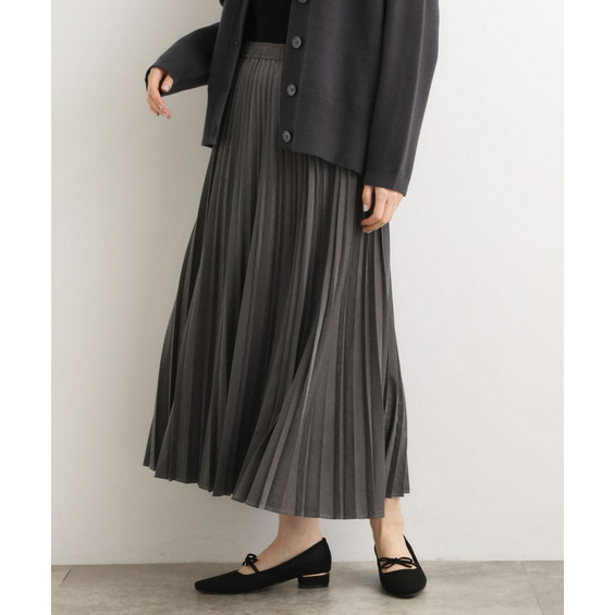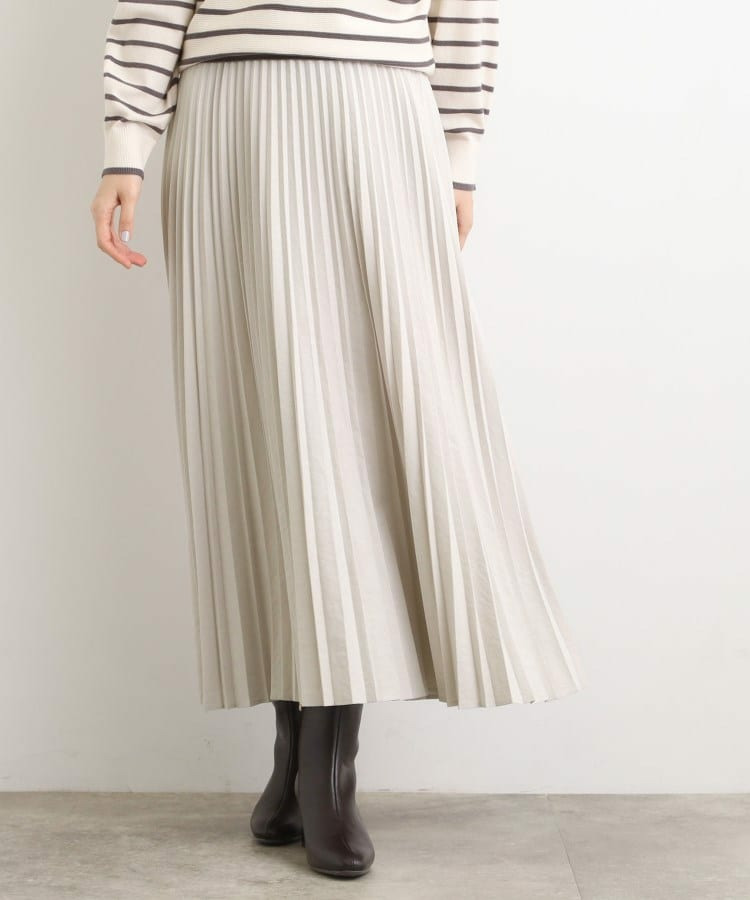 腰まわりをすっきり見せるアコーディオンプリーツスカート。