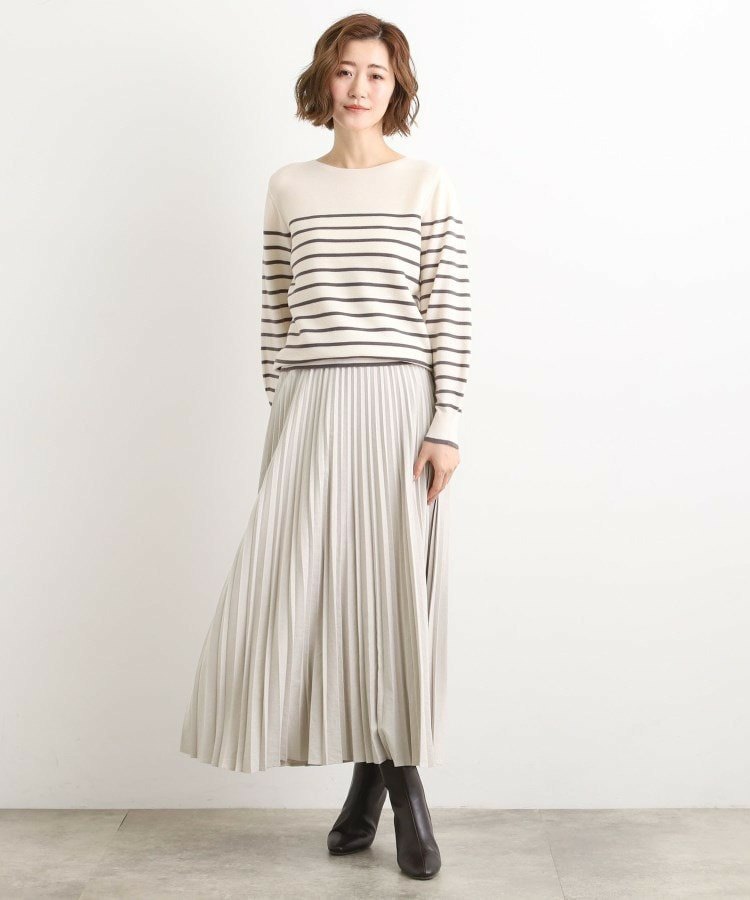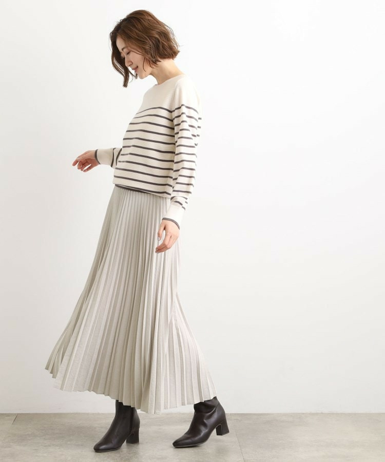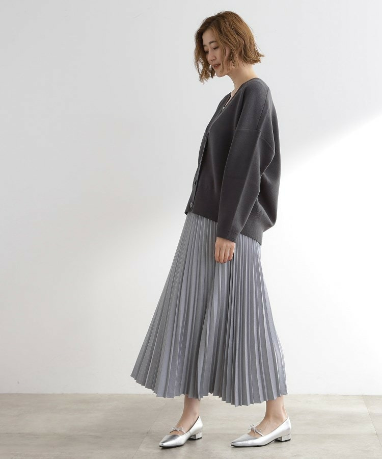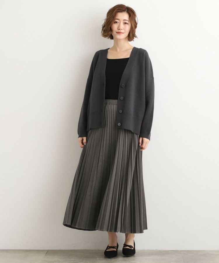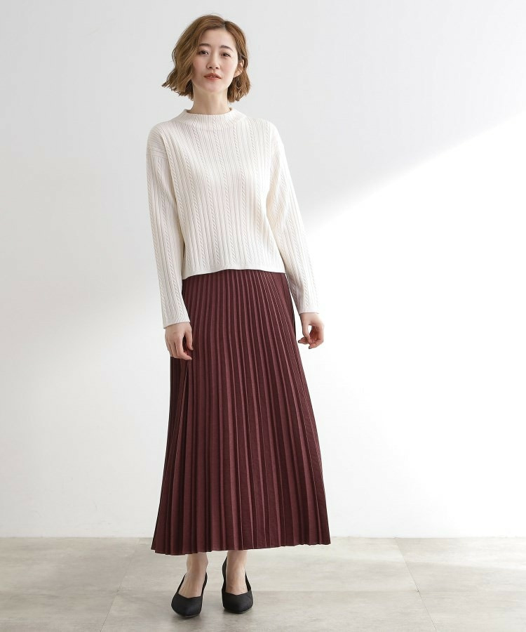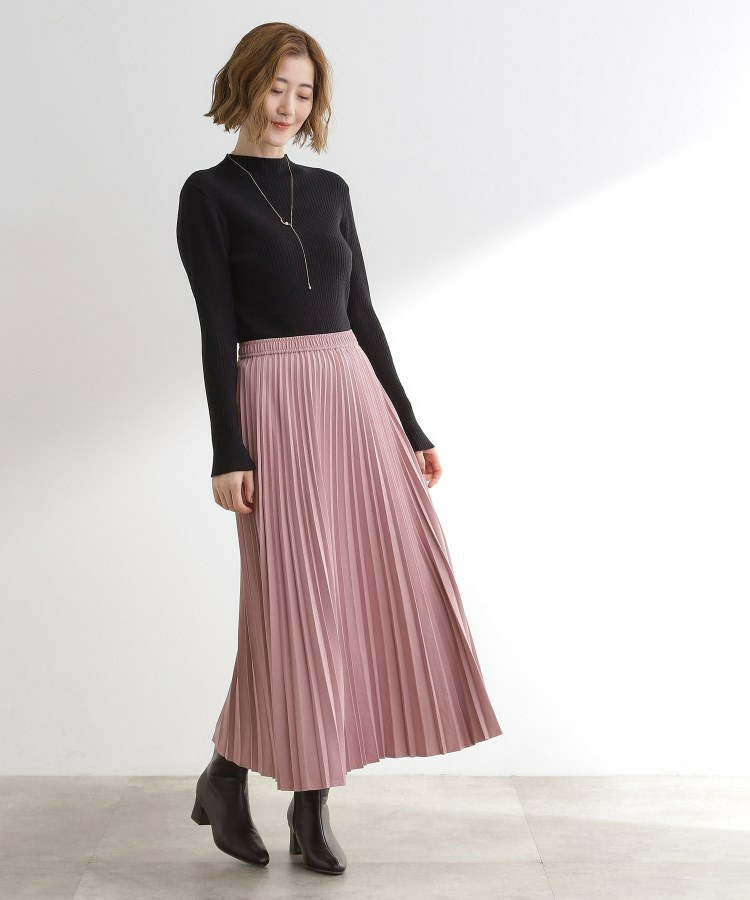腰まわりをすっきり見せるアコーディオンプリーツスカート。