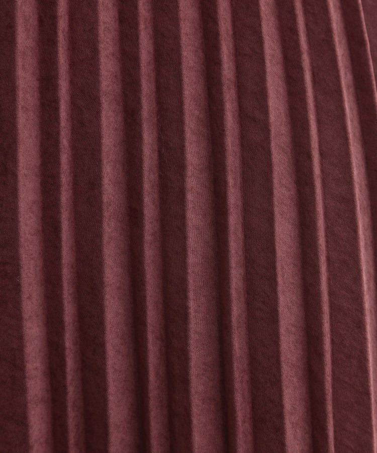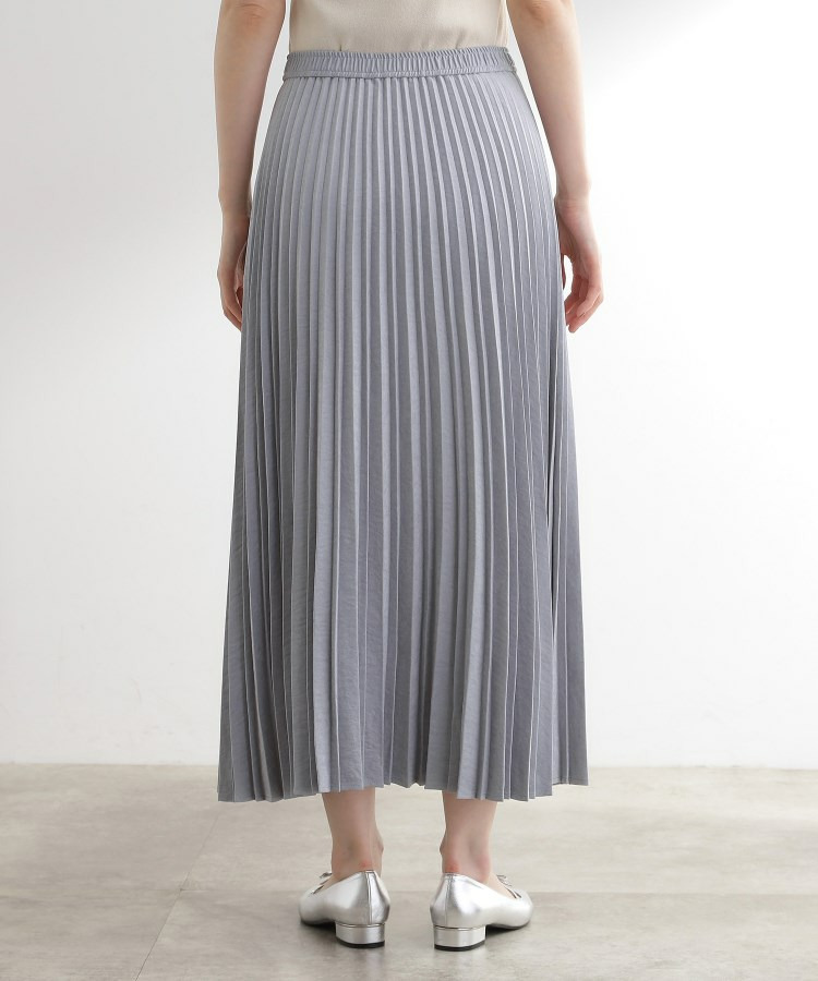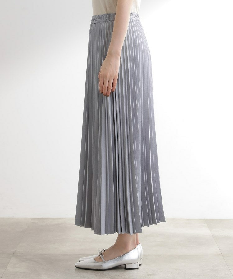 ヒップラインに沿うように設計された繊細なプリーツが、美しい落ち感と縦ラインを強調。