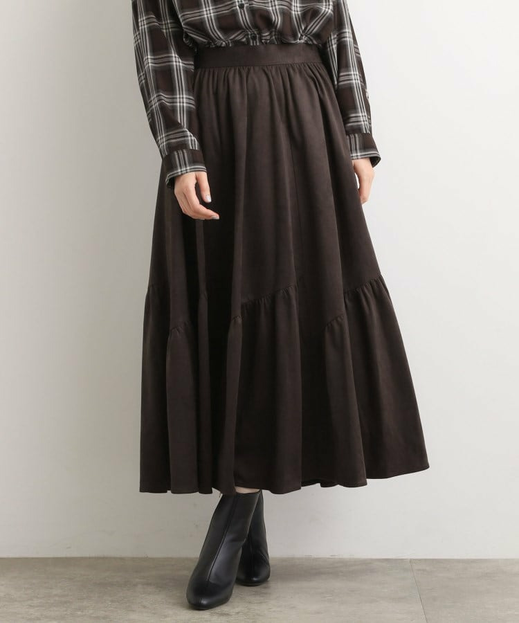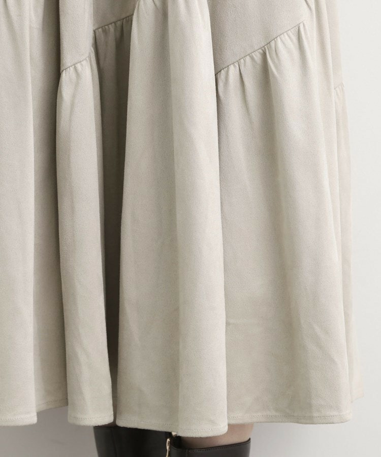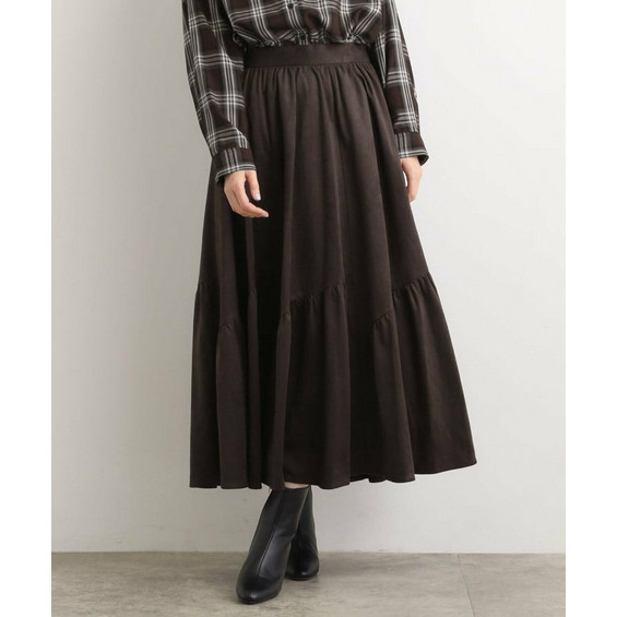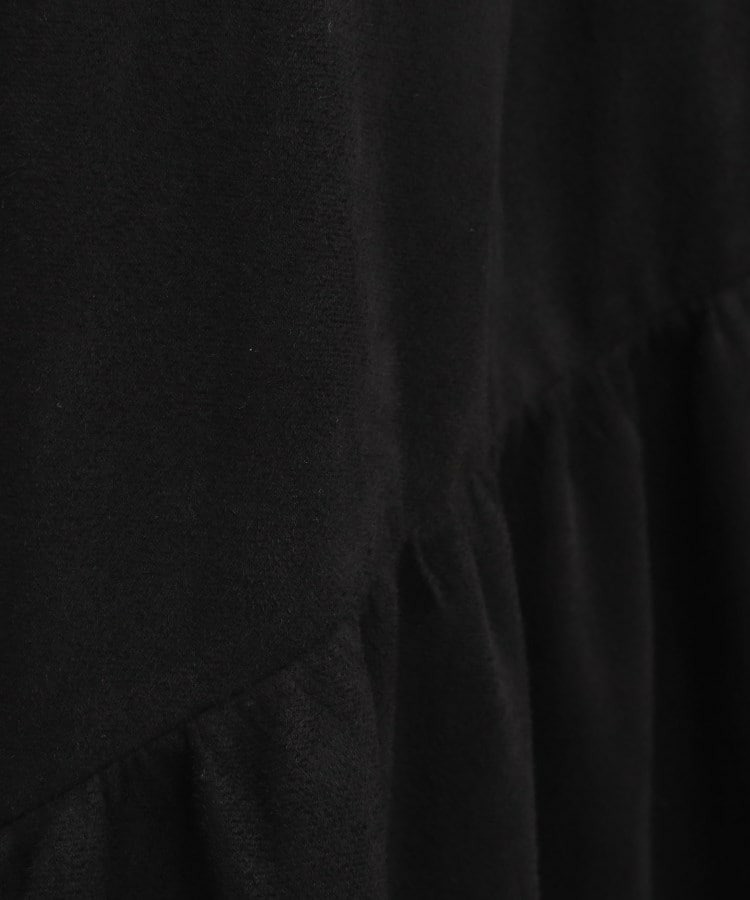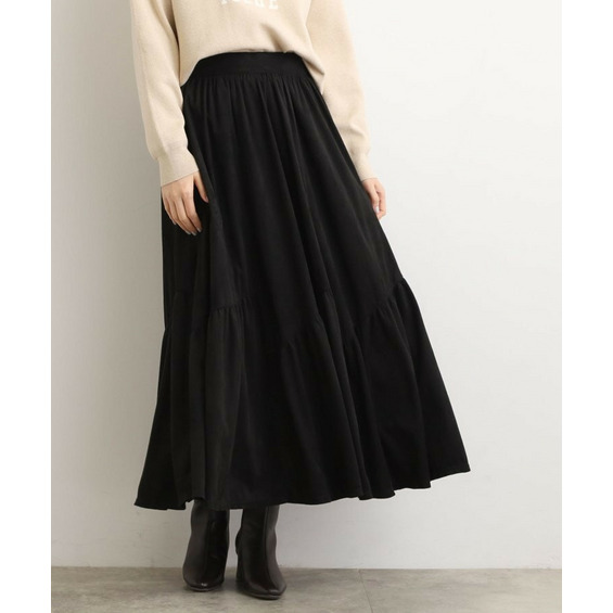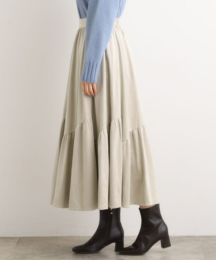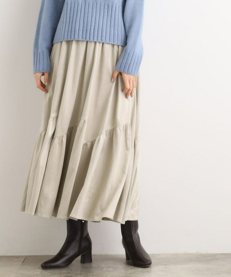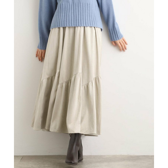 切替を入れることで、エスカルゴラインのように変化をつけたティアードスカート。