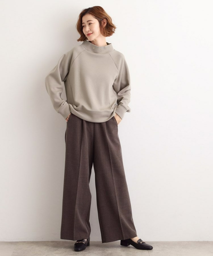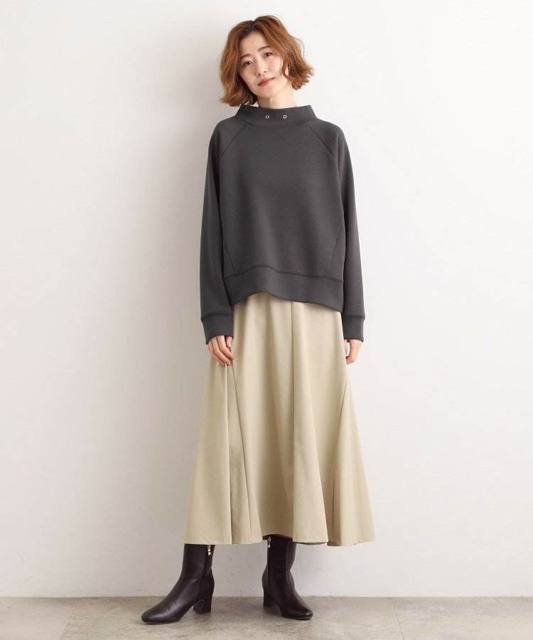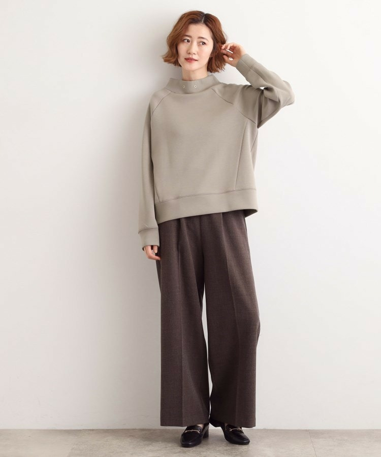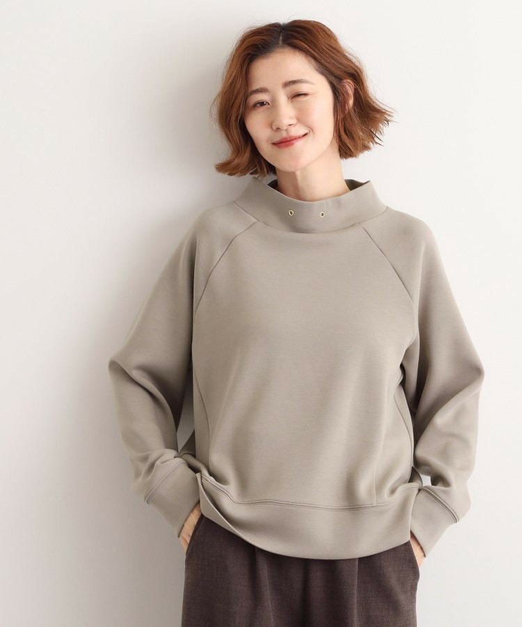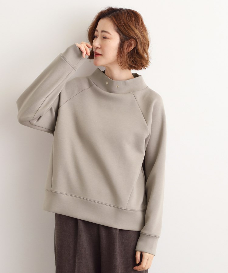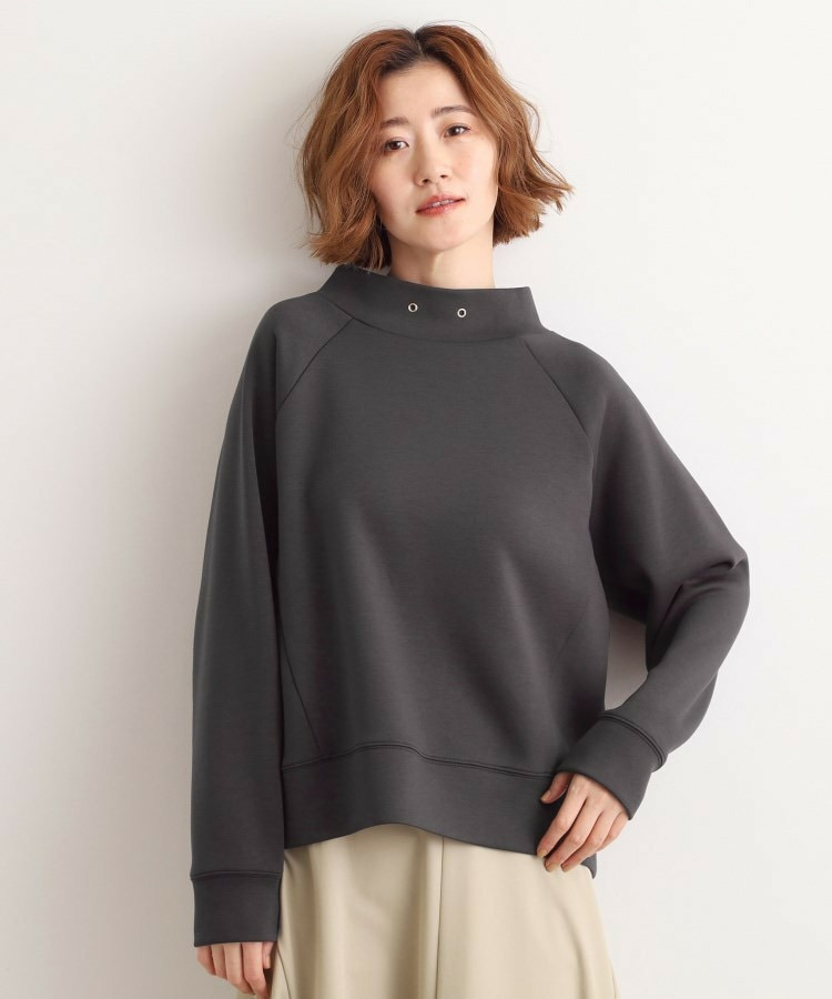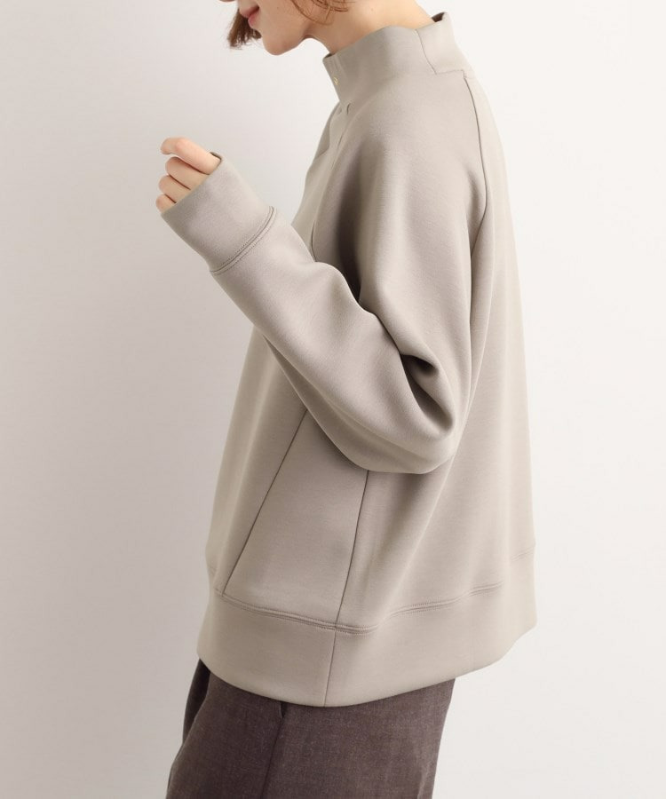モックネックがポイントのダンボールスウェットプルオーバー。