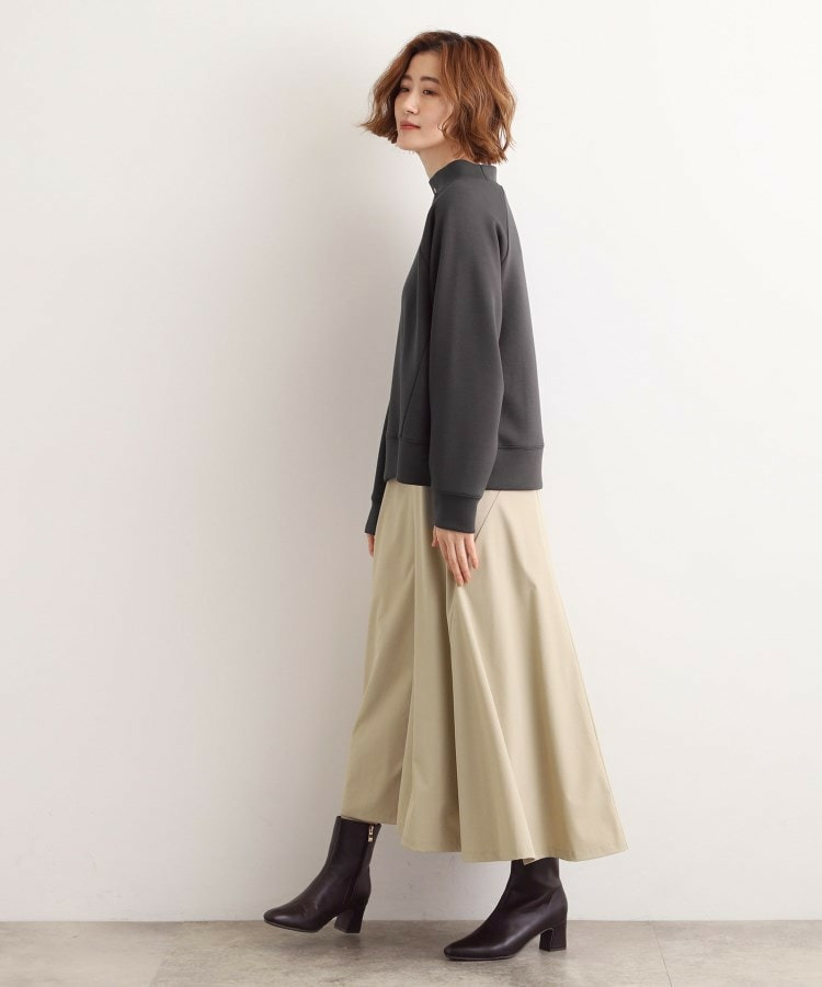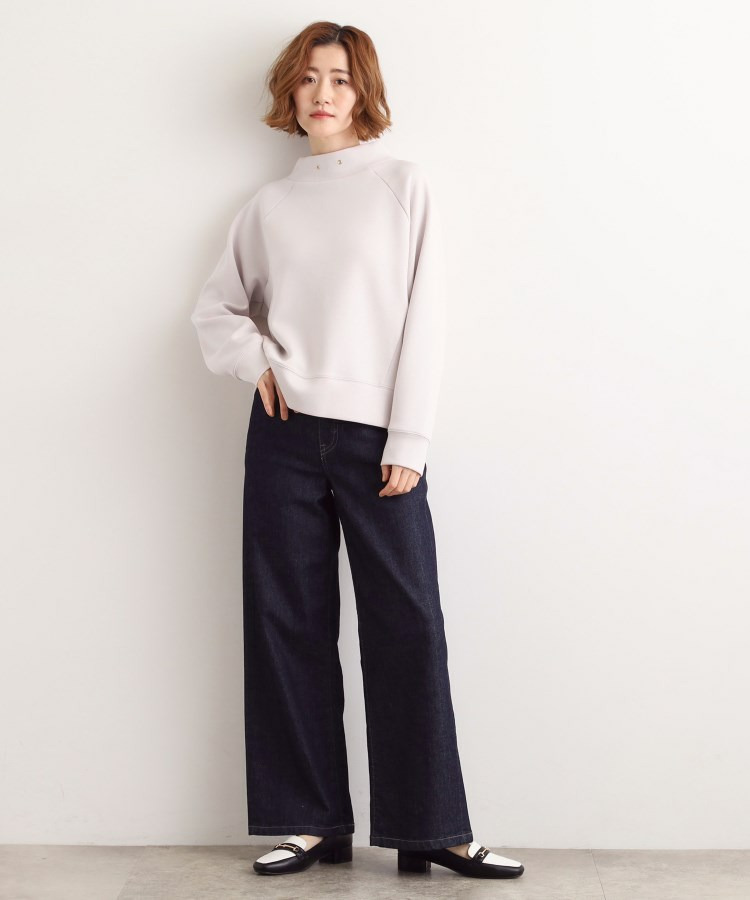 程よい張り感がシルエットをきれいに保ち、カジュアルながらもきれいめに着られるデザインです。