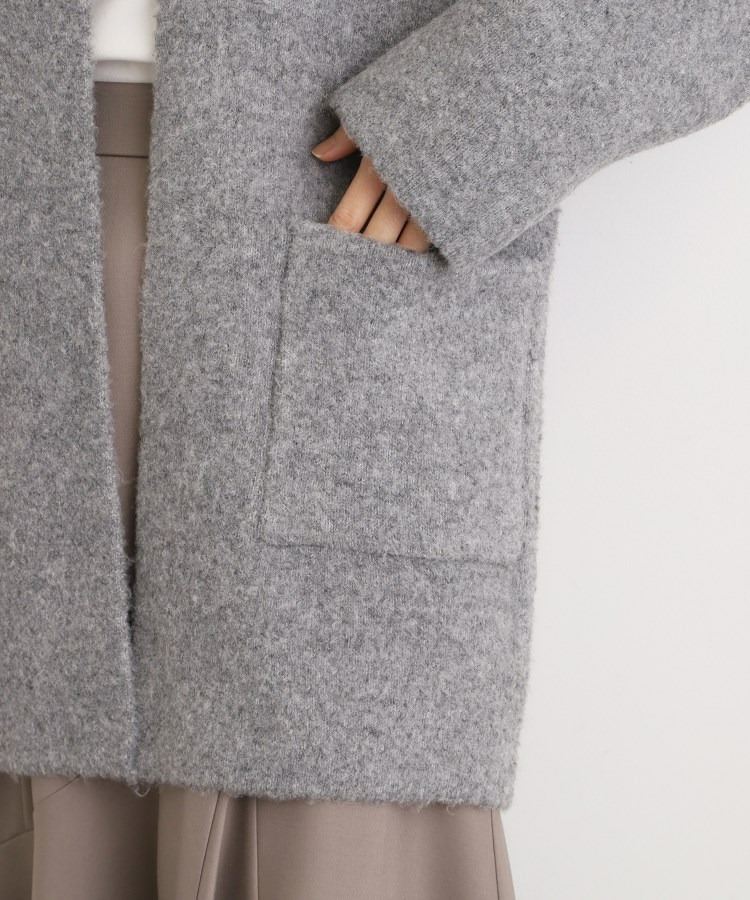 コートとカーディガンの中間的な立ち位置で仕立てた着流しタイプのニットコーディガンです。