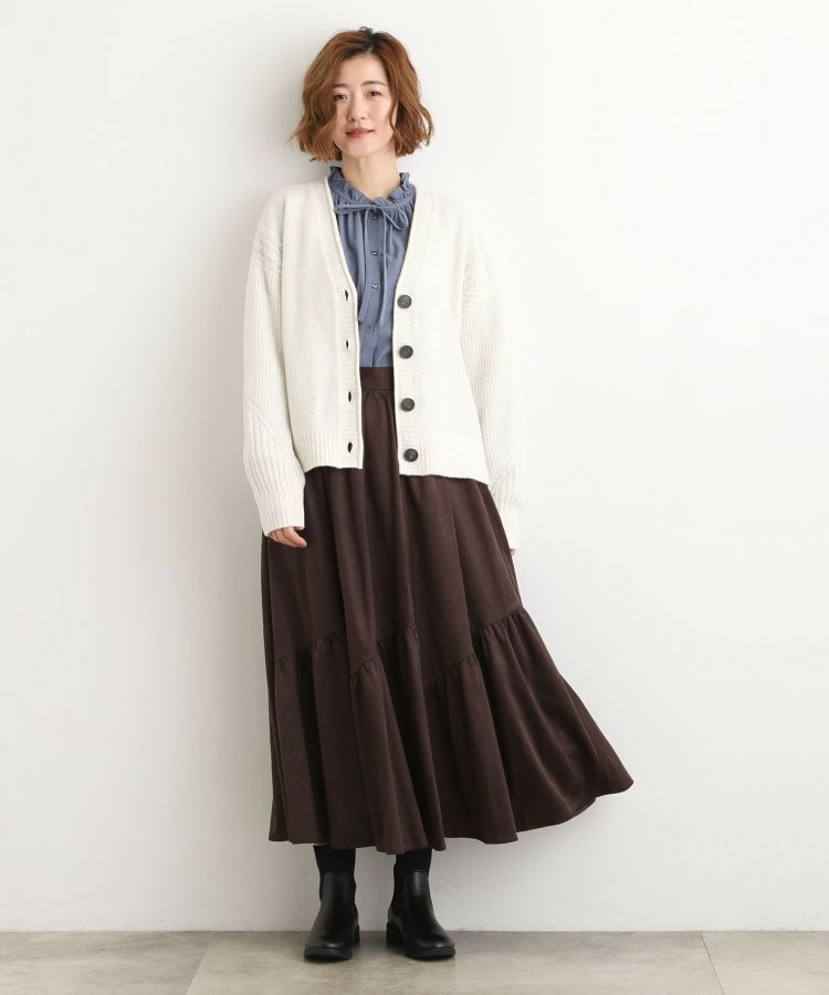 スカートと合わせればフェミニンに、パンツスタイルならトラッドな雰囲気にも。