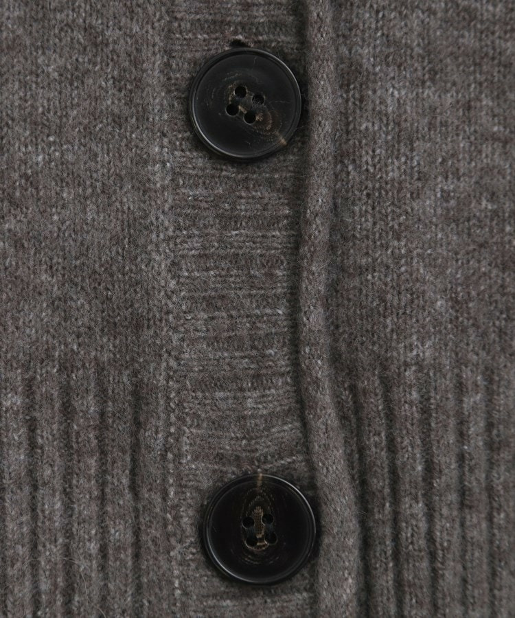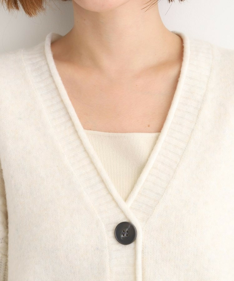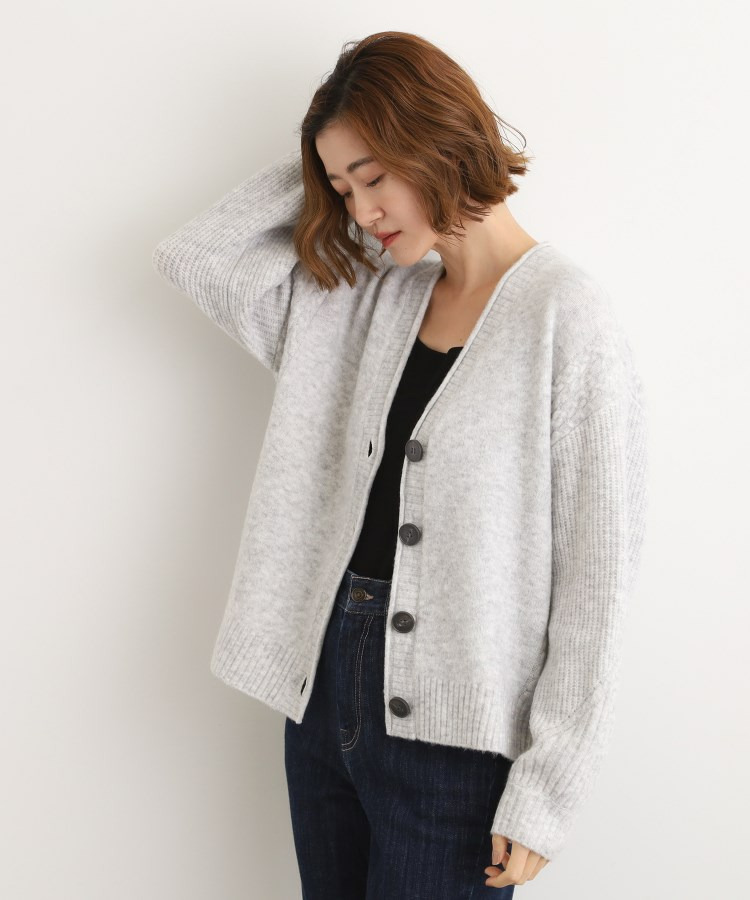 シンプルなVネックデザインで、インナーを選ばず着回しやすい一枚です。