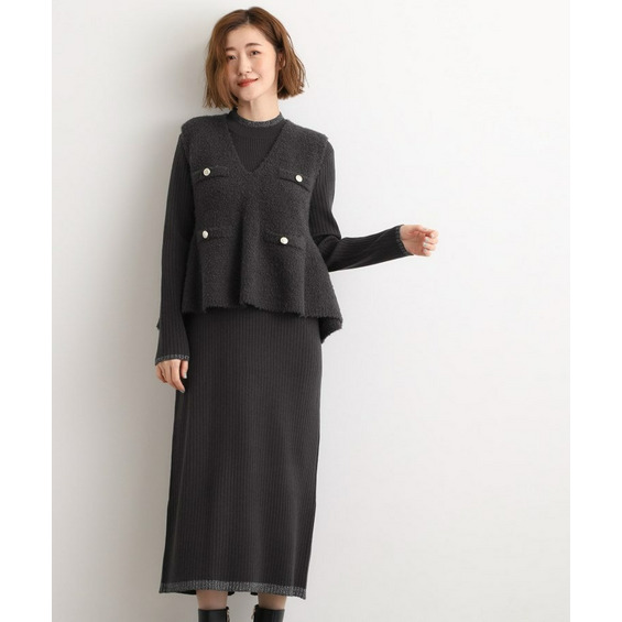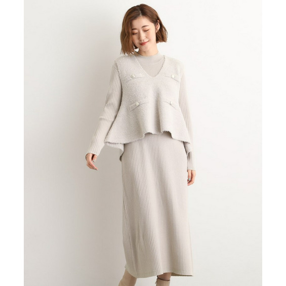 【2点SET/体型カバー】一枚で決まる、ペプラムベスト×ニットワンピース
