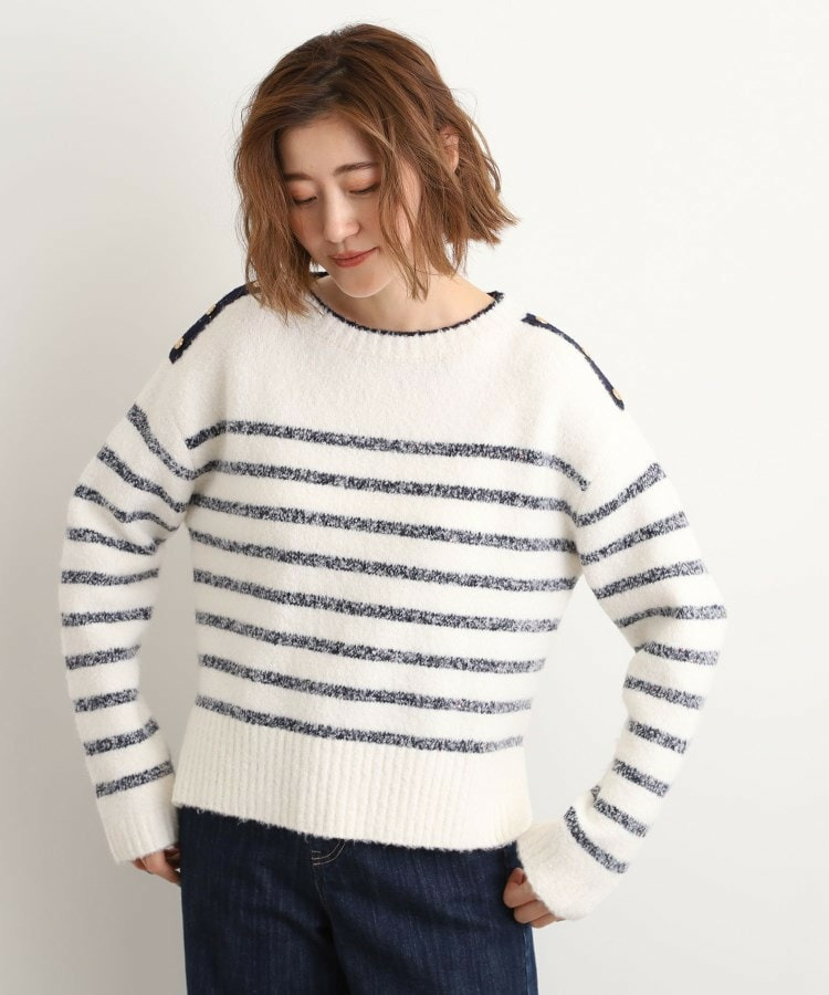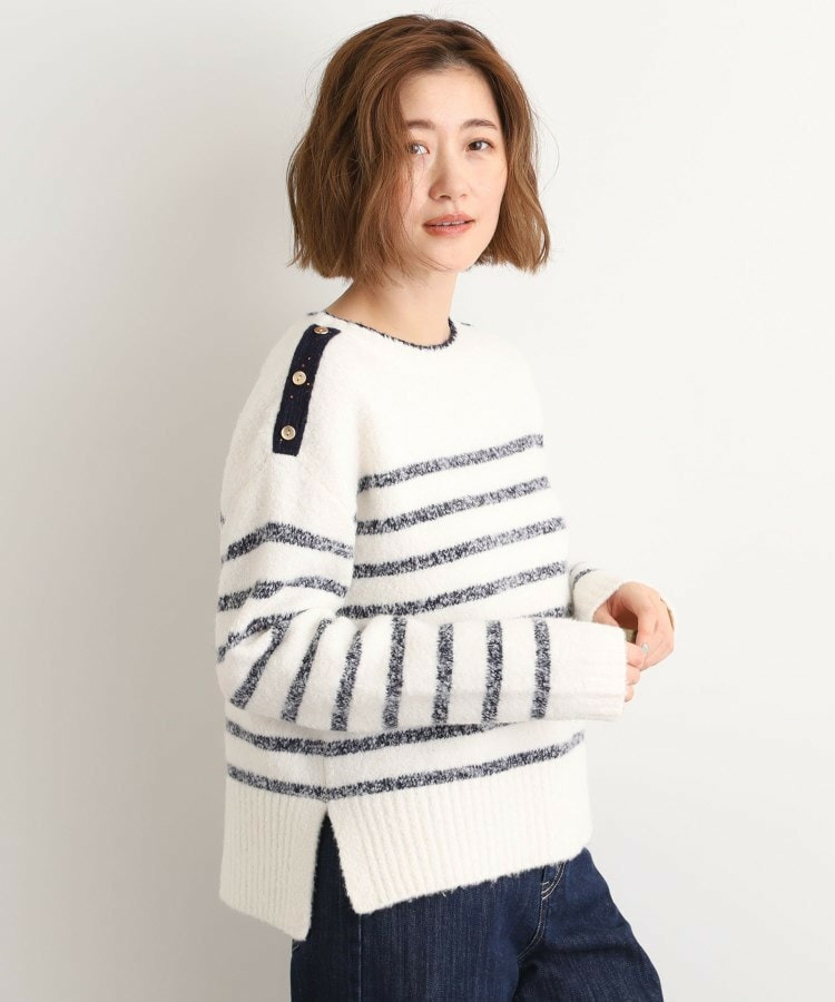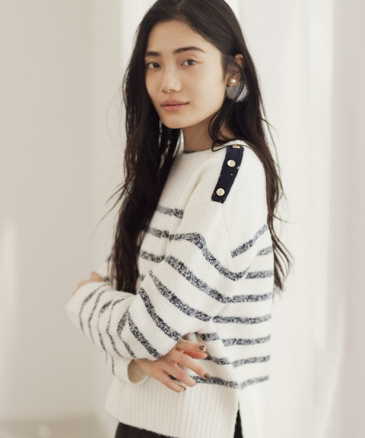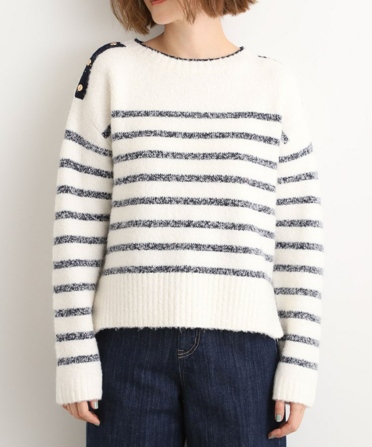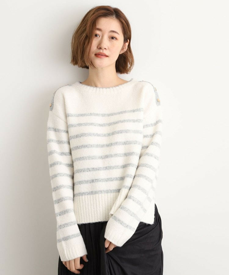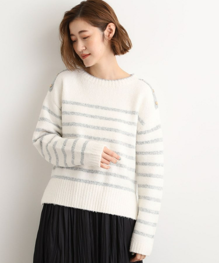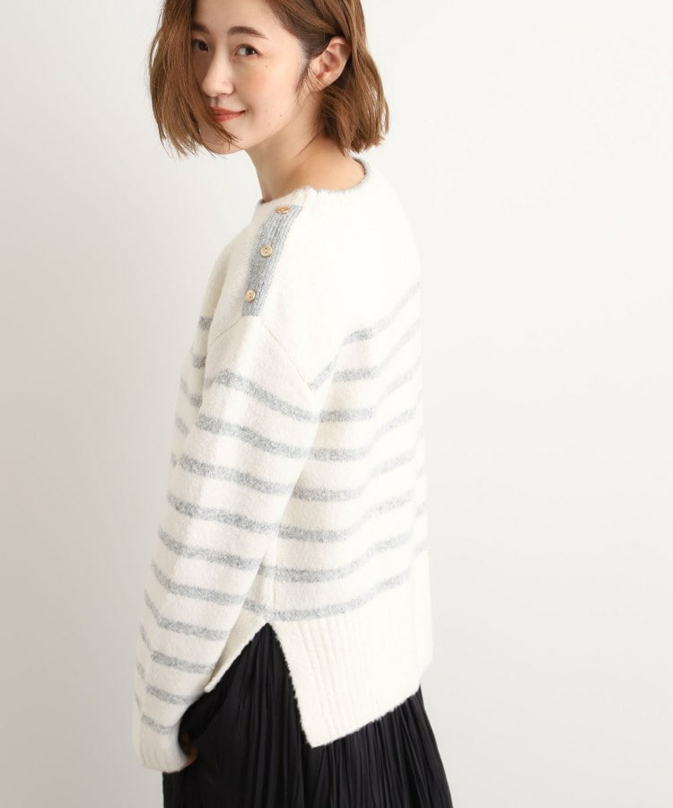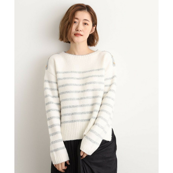 オーバーサイズシルエットで仕立てたボーダーニットです。