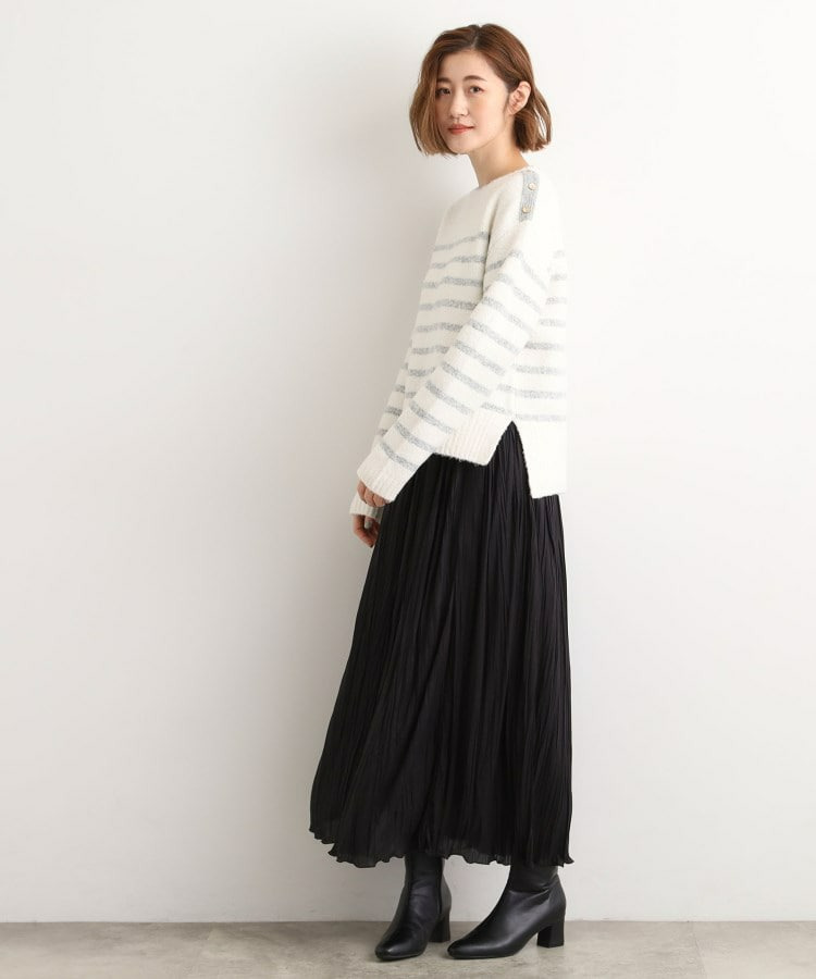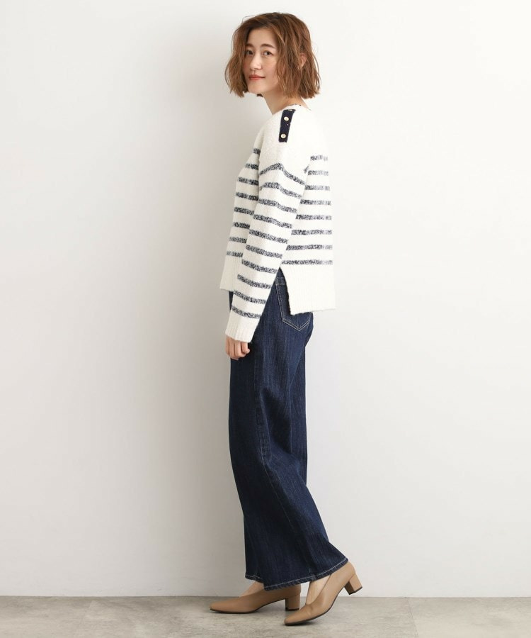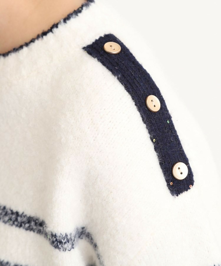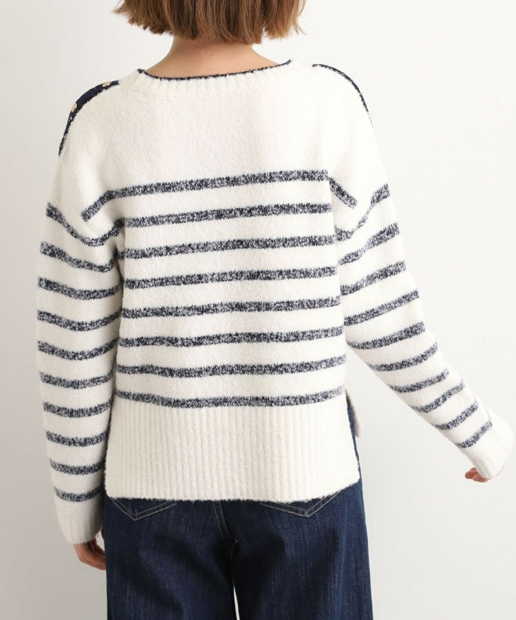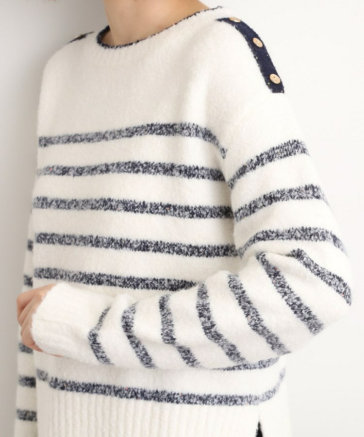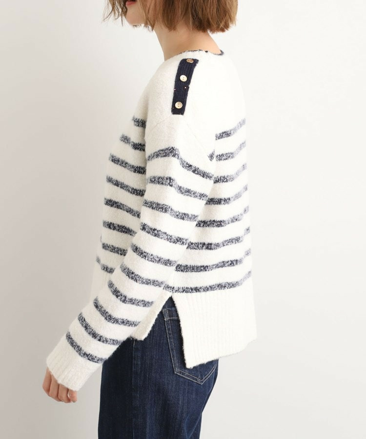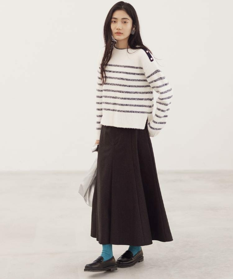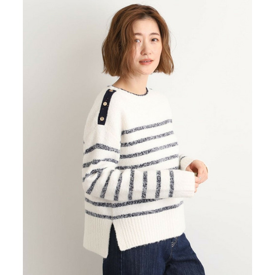 オーバーサイズシルエットで仕立てたボーダーニットです。