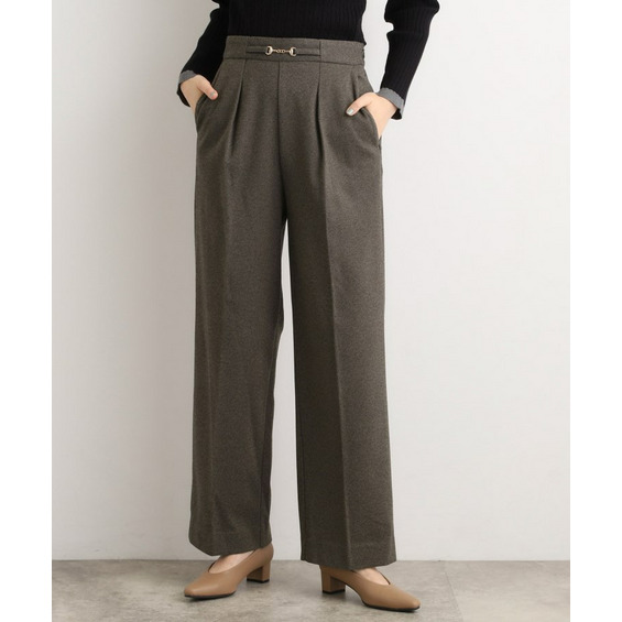 フロントに上品なゴールドのビットパーツを施したクラシックなワイドパンツ。