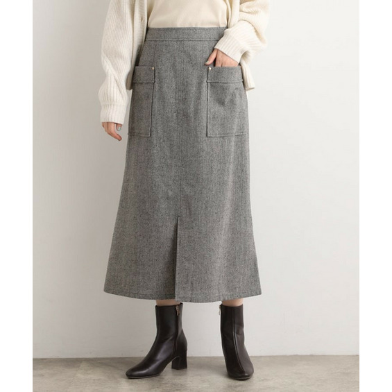クラシカルなツイード素材で仕立てたAラインスカート。